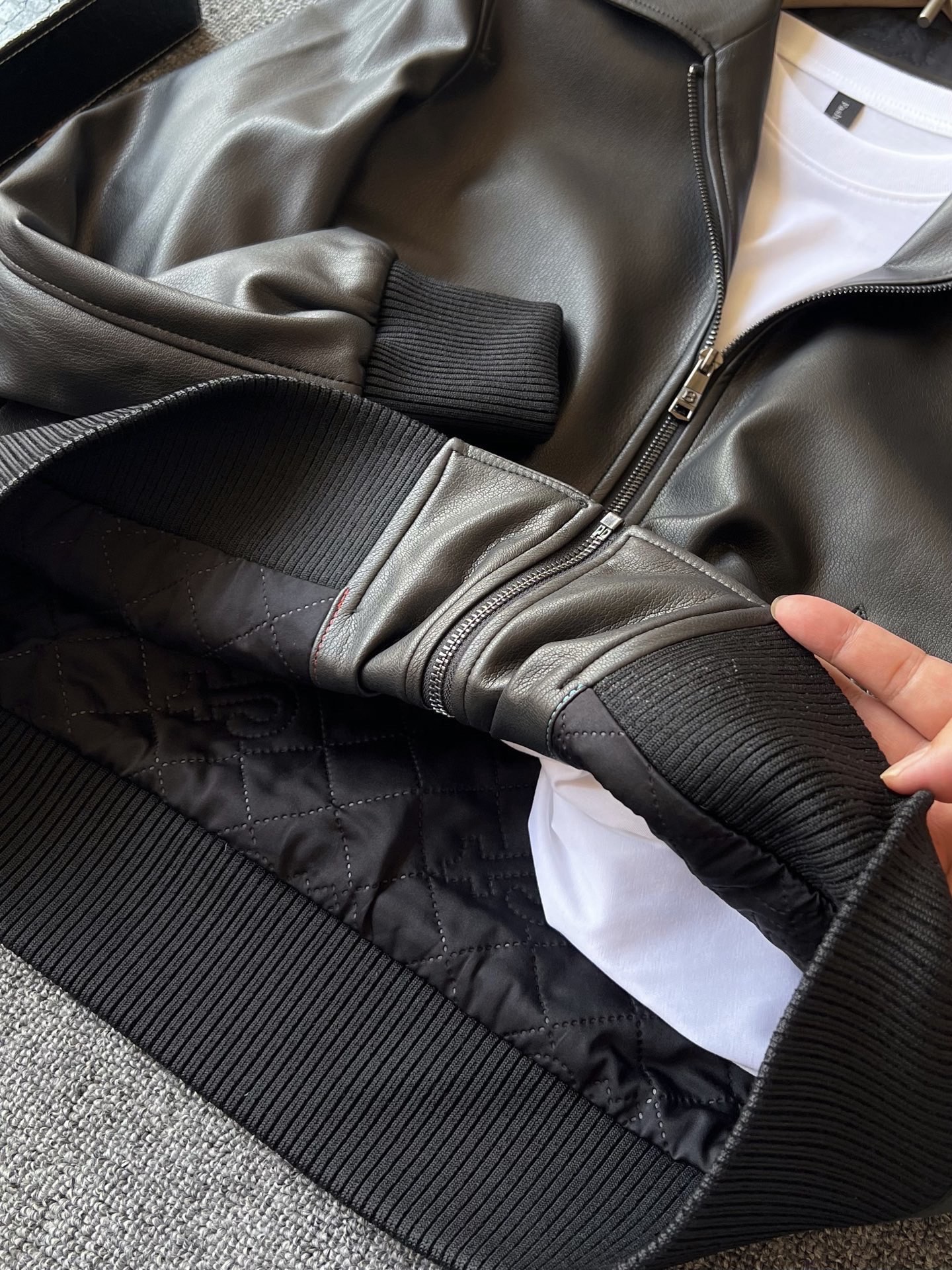 杰尼亚家今年最新开发绵羊皮混纺皮料 纯正意大利进口 色泽饱满度特别好 一眼高级的质感 摸起来手感舒服 肉见可见的垂感 不是国产的皮料不好 而且意大利进口皮料做的更细腻一些
