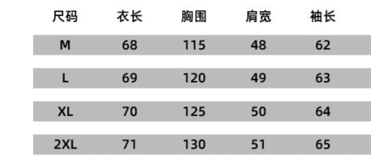 尺码 M 2XL