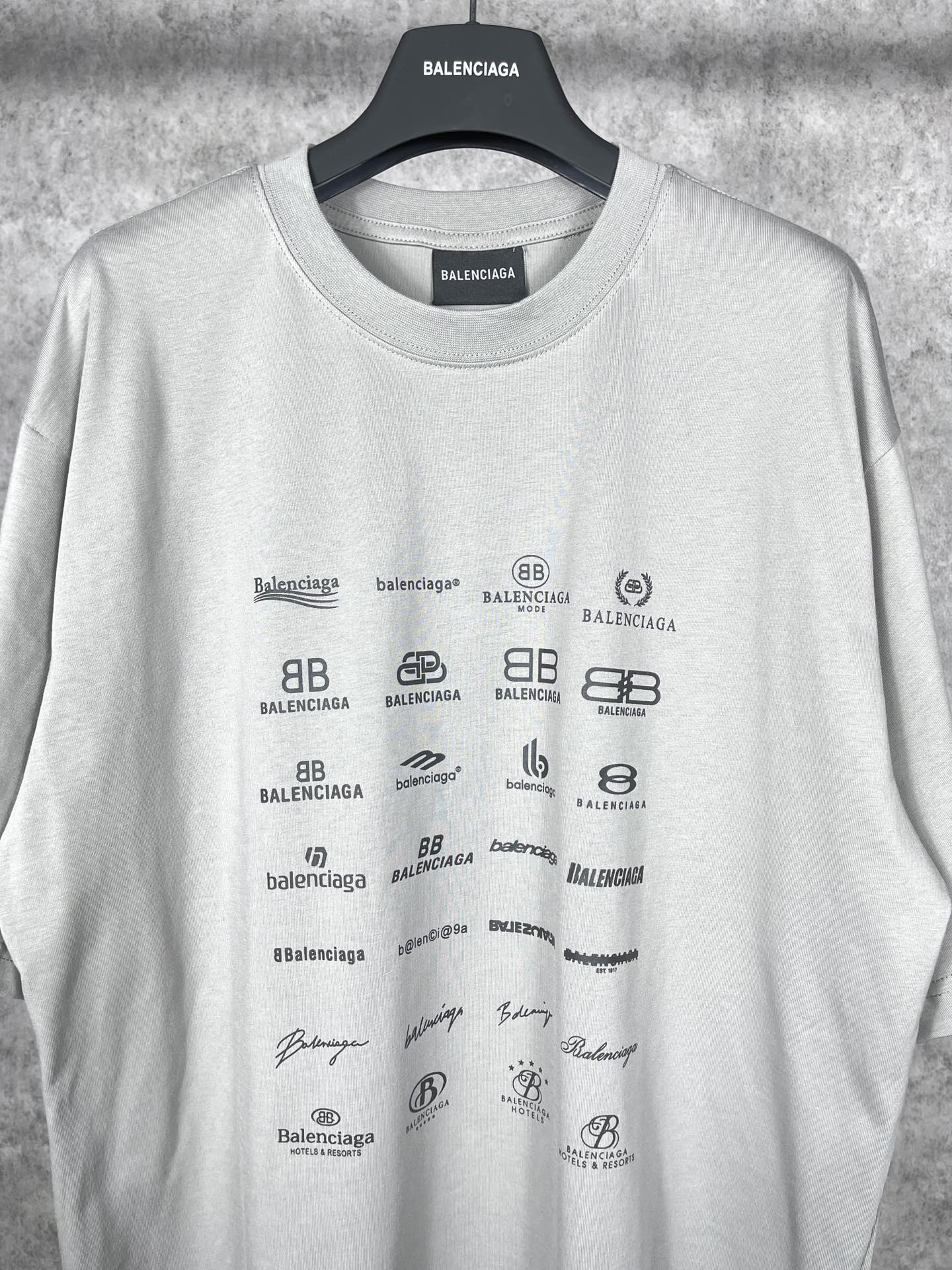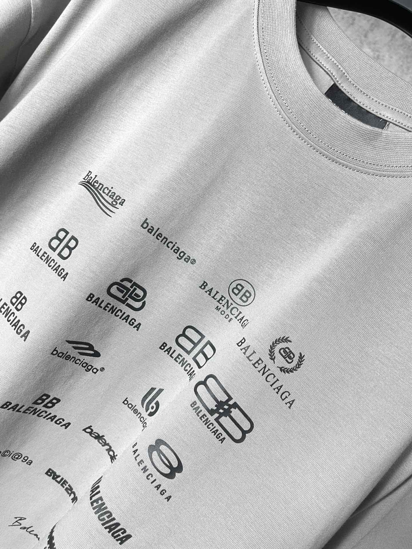 实拍图 顶级版本 官网品质 BALENCI GA 巴黎BALENCI GA 2023春夏季新款 印满经典LOGO集合短袖T恤 2023春夏新品 砖柜同步