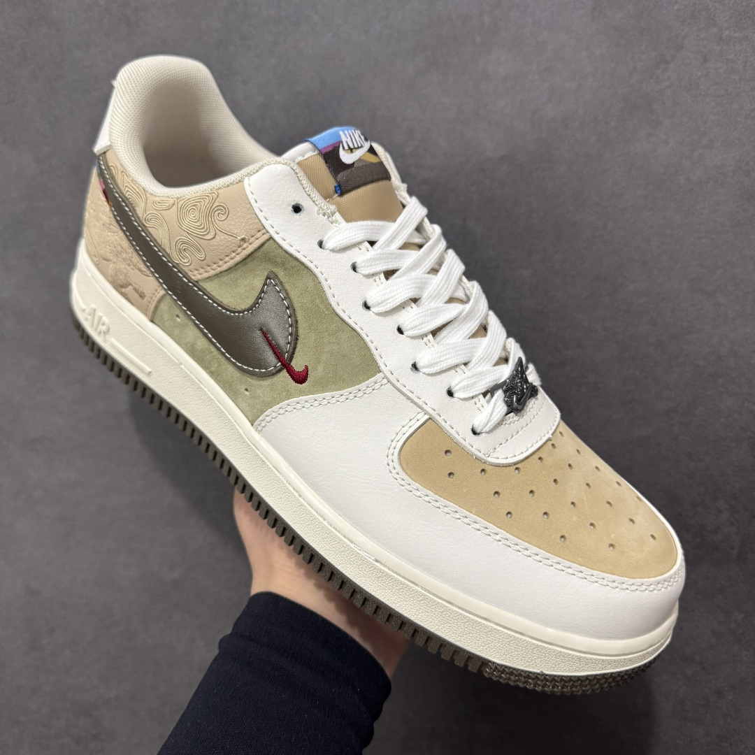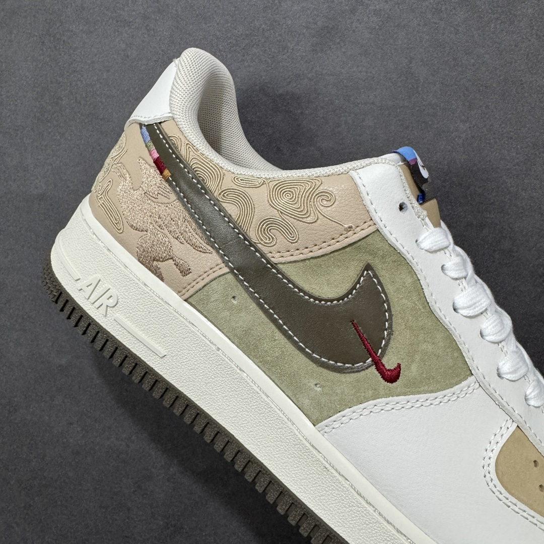 定制版 国风美学拉满的Nike AF1太绝了 米白主调搭卡其 军绿低饱和撞色 鞋身祥云纹浮雕肌理感十足 龙马金属挂坠更是把东方韵味焊在鞋上 头层皮拼接麂皮的材质组合 摸得到的高级质感 经典Air气垫加持踩出软弹脚感 不管搭休闲装还是工装风 出街都能稳站C位