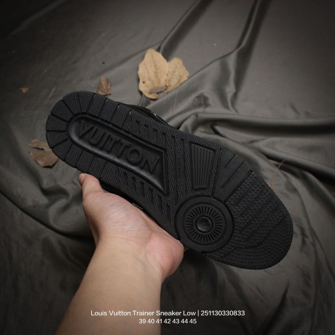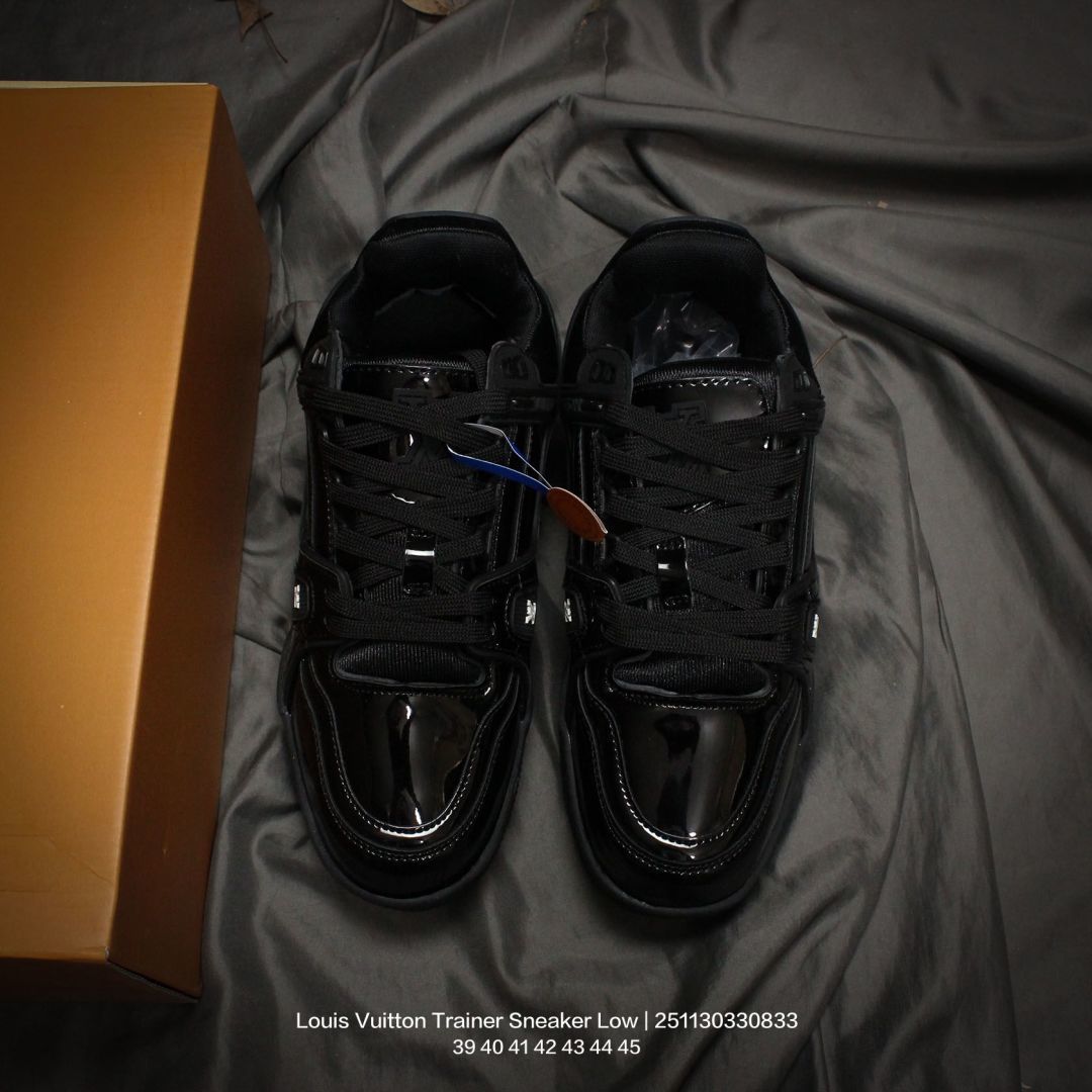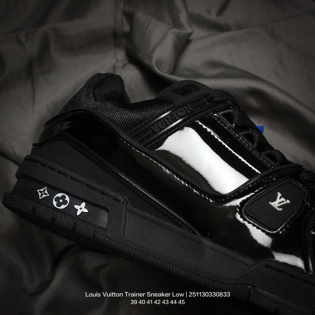 Louis Vuitton 路易威登 男鞋配置厚实抽屉礼品鞋盒 采用荔枝纹纤维革组合粒面牛剖革鞋面材质 鞋垫嵌入软脚感EVA物料 外置TPR光泽隔色鞋底法国巴黎百年奢侈品牌LV路易威登Louis Vuitton Trainer Sneaker Low 运动系列低帮复古百搭休闲运动文化篮球板鞋