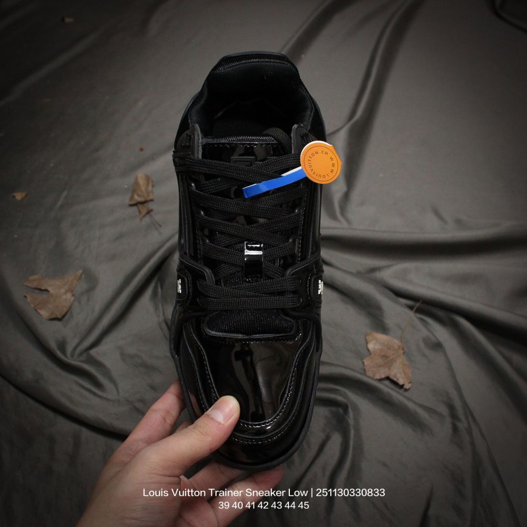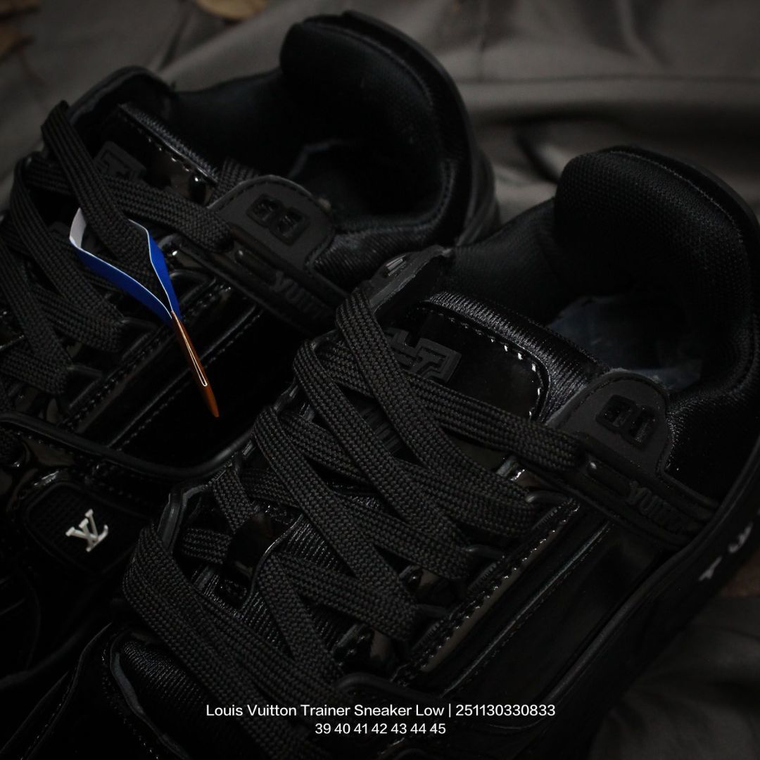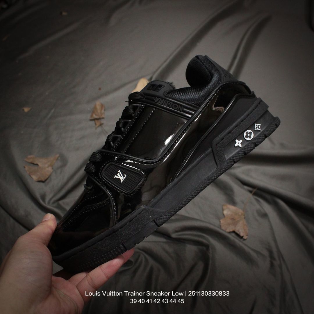 Louis Vuitton 路易威登 男鞋配置厚实抽屉礼品鞋盒 采用荔枝纹纤维革组合粒面牛剖革鞋面材质 鞋垫嵌入软脚感EVA物料 外置TPR光泽隔色鞋底法国巴黎百年奢侈品牌LV路易威登Louis Vuitton Trainer Sneaker Low 运动系列低帮复古百搭休闲运动文化篮球板鞋