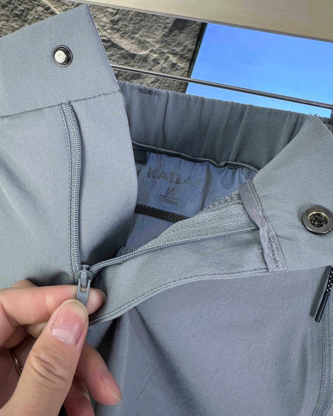 修身款式 搭配拼接剪裁 腰部5公分 松紧裤带设计 腰盘扣全是风热压胶处理 简约立体上档次 口袋拉链3处都是压胶无缝 大厂成熟工艺 久洗不开胶 裤裆处插角布设计 不卡裆 运动自如 舒适性高