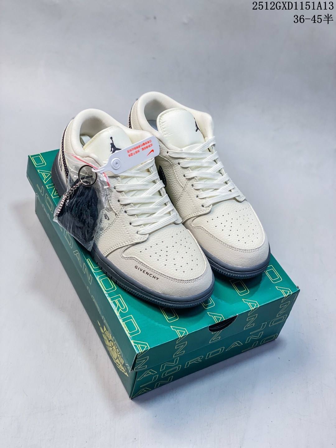 海外爆款限量发售 Nike Jordan Air Jordan 1 纪梵希联名 米灰NIKE印花 高端定制 低帮 复古 减震 防滑 耐磨 篮球鞋 定制鞋盒 大厂纯原品质出货 超高清洁度 皮料切割干净无任何毛边 细节完美