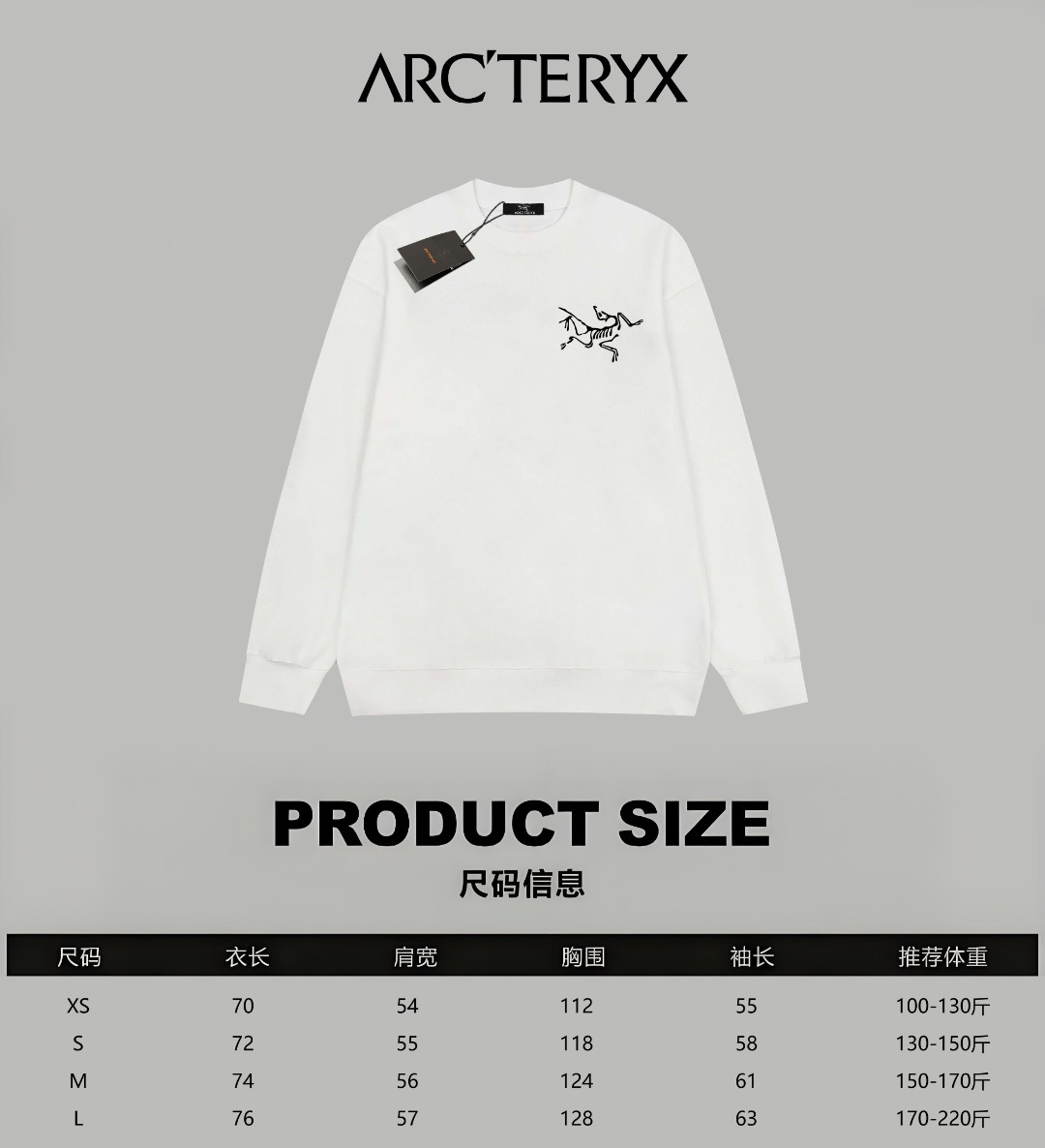 ARC TERYX 始祖鸟 官网同款 经典鸟家字母logo 印花毛圈长袖卫衣
