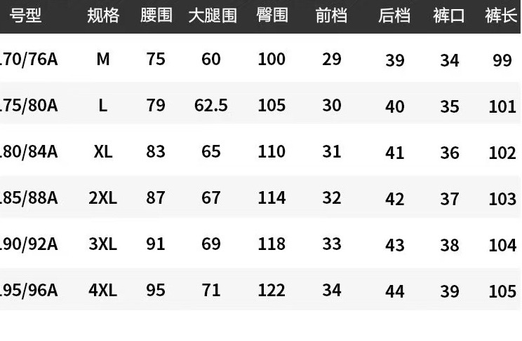 尺码 M 4XL