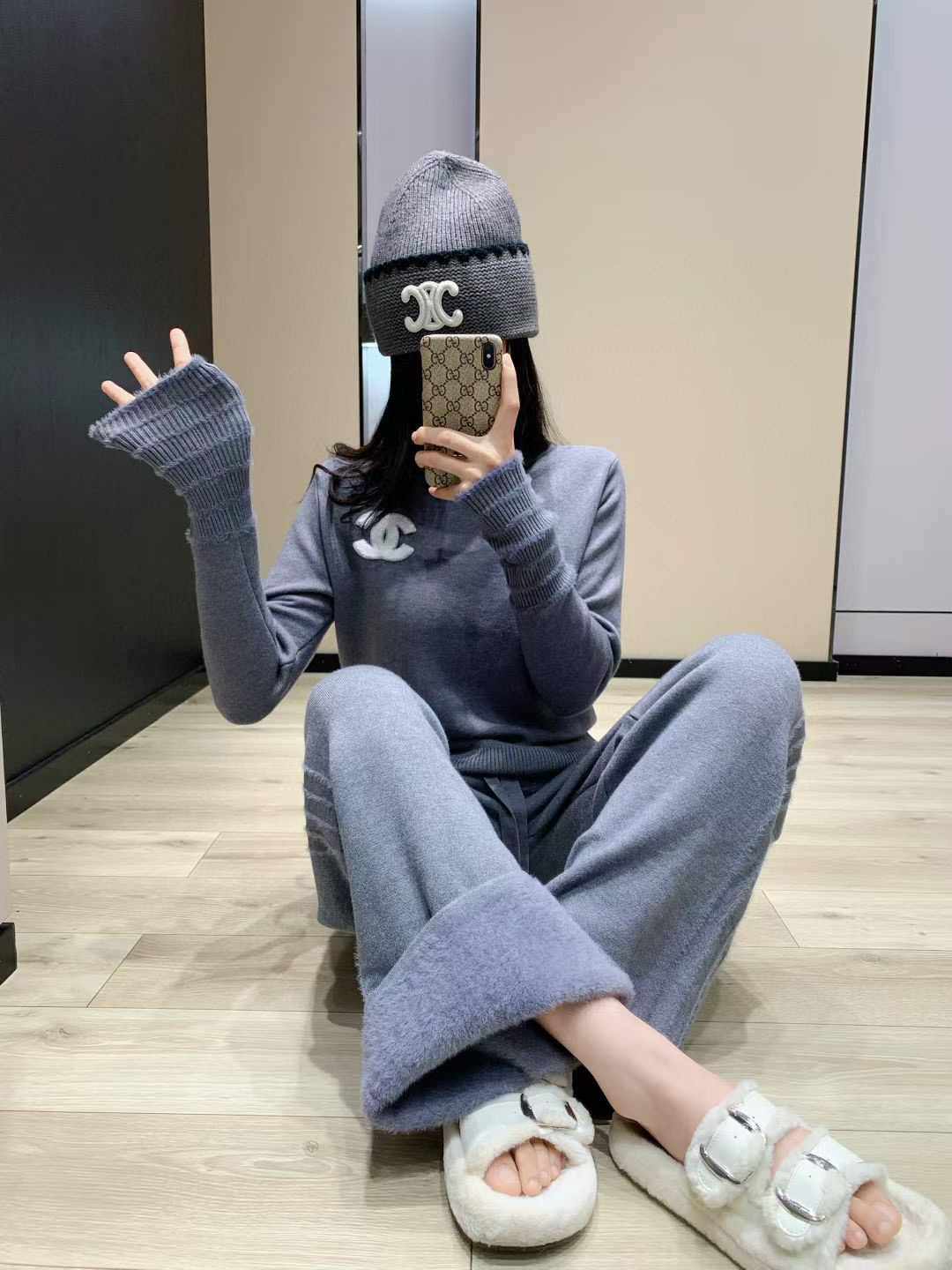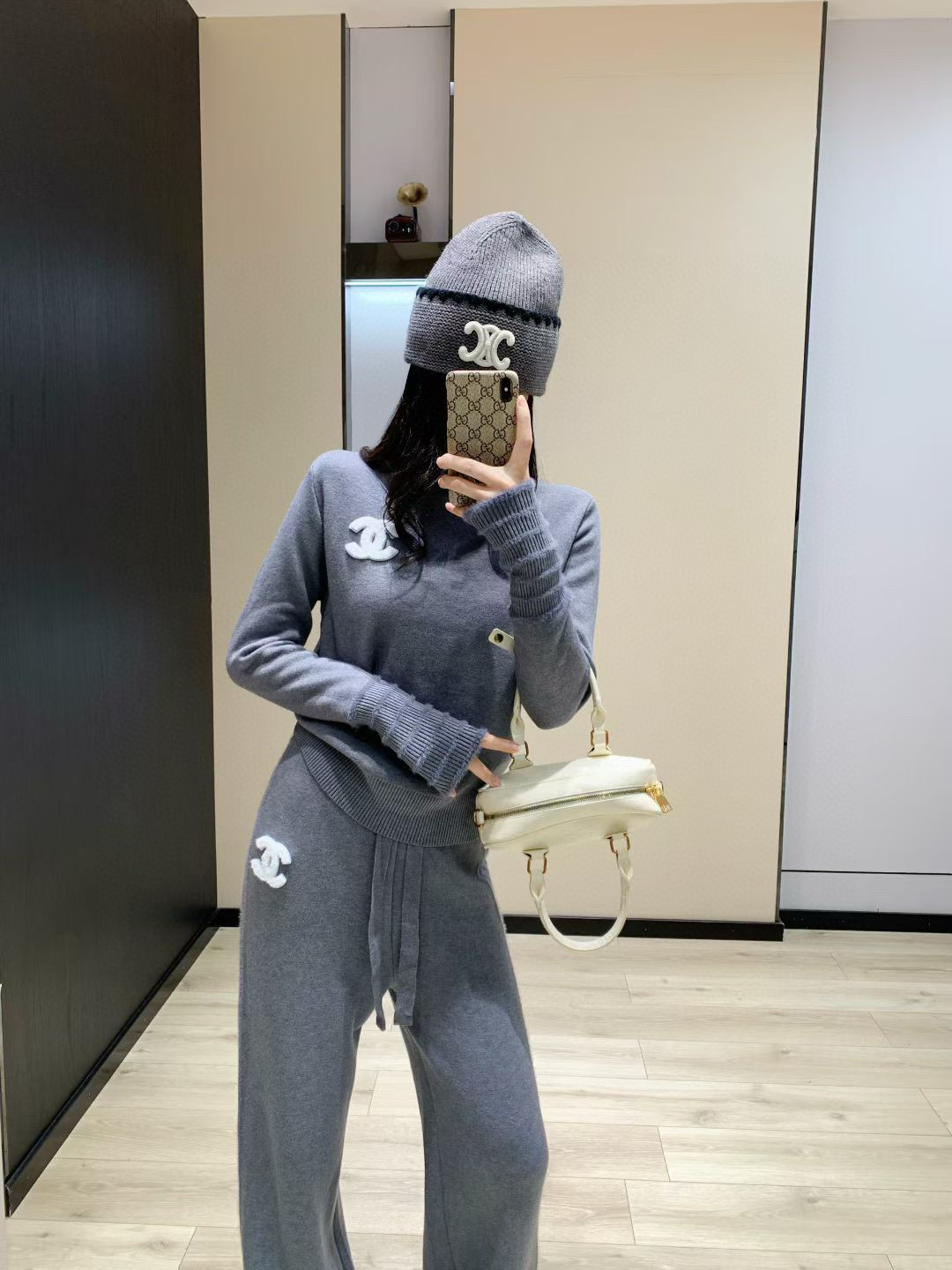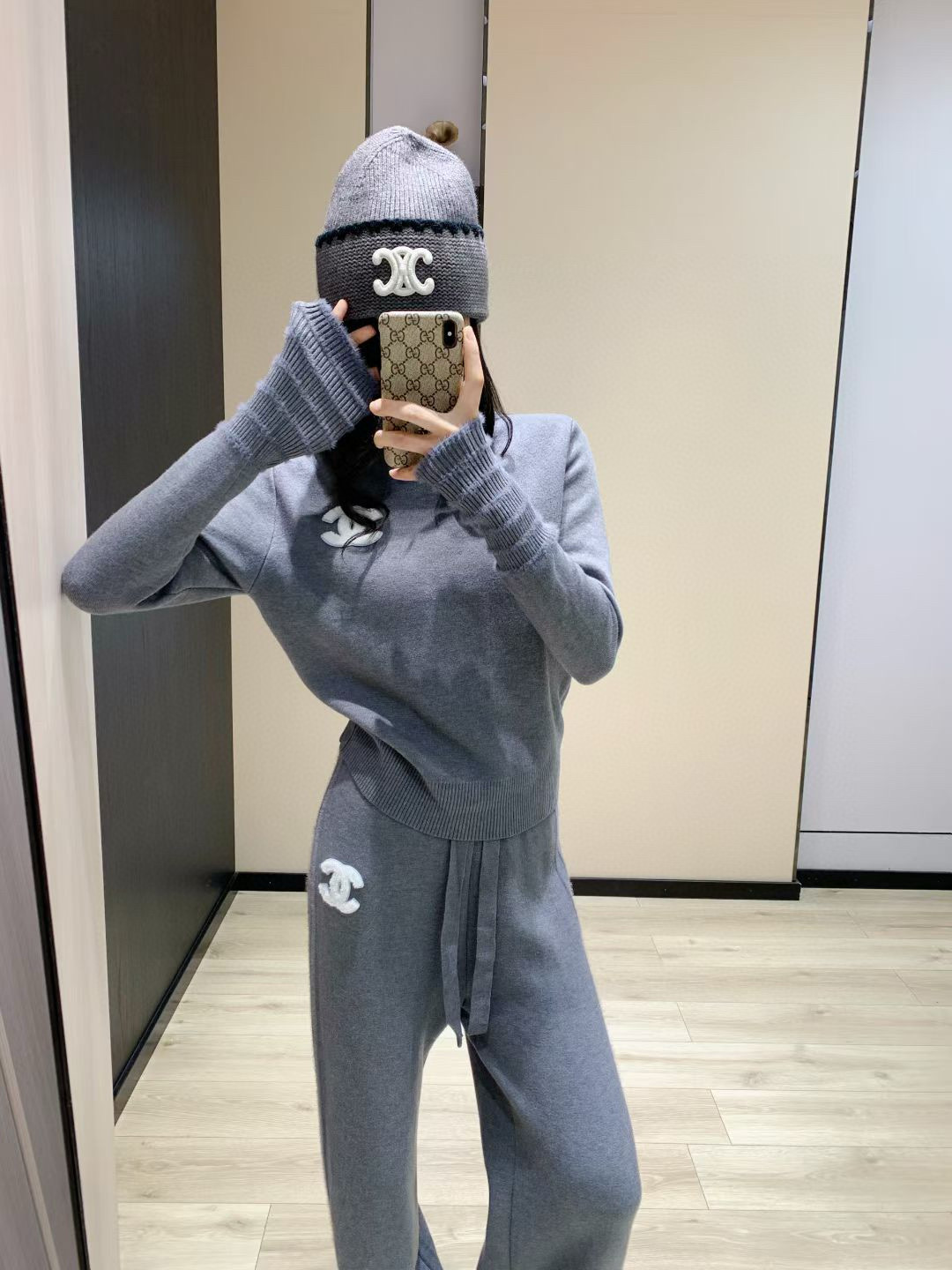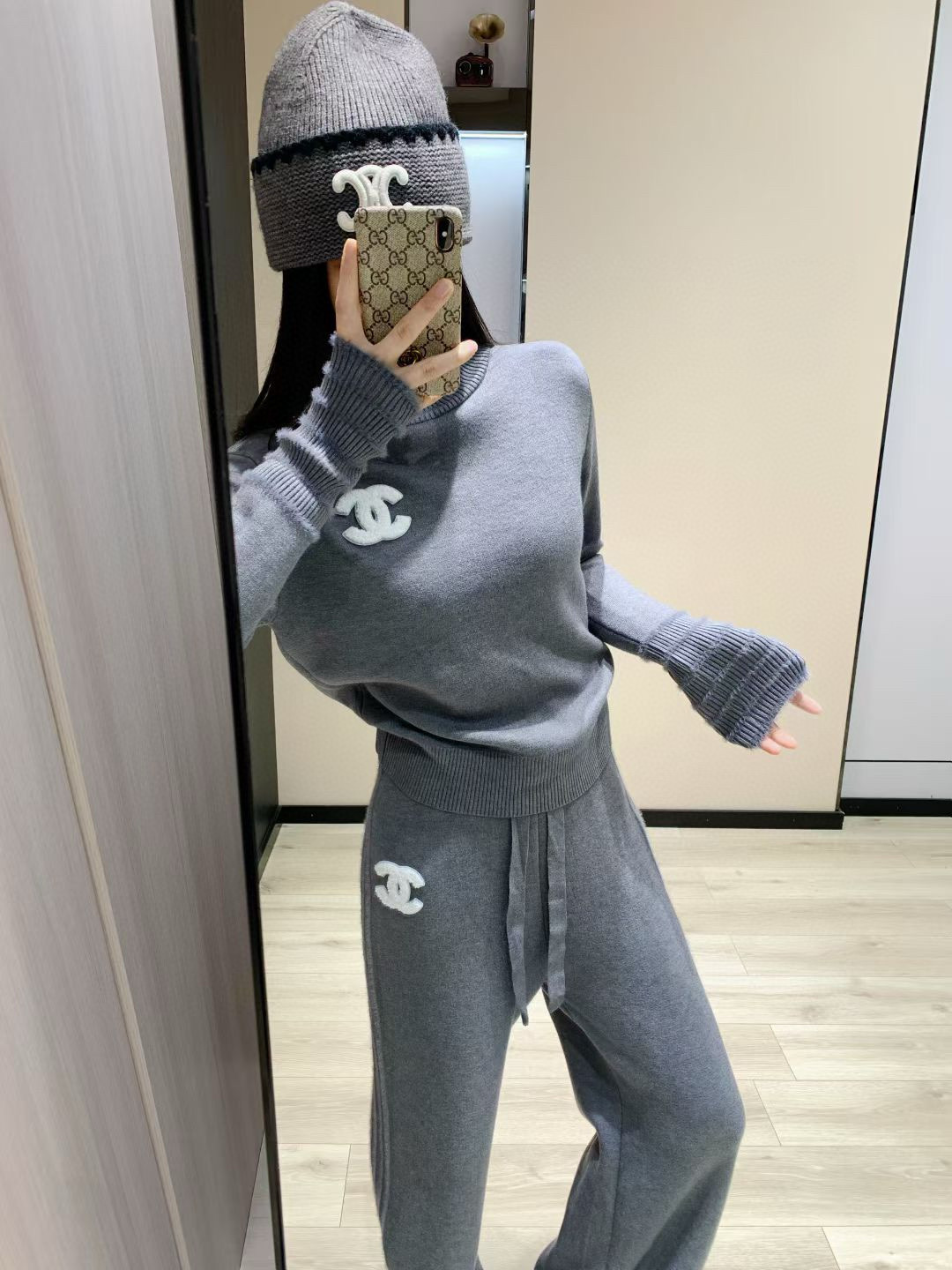 165126476 - Chanel香奈儿小香双C毛巾绣花加绒高领毛衣抽绳长裤针织套 355130