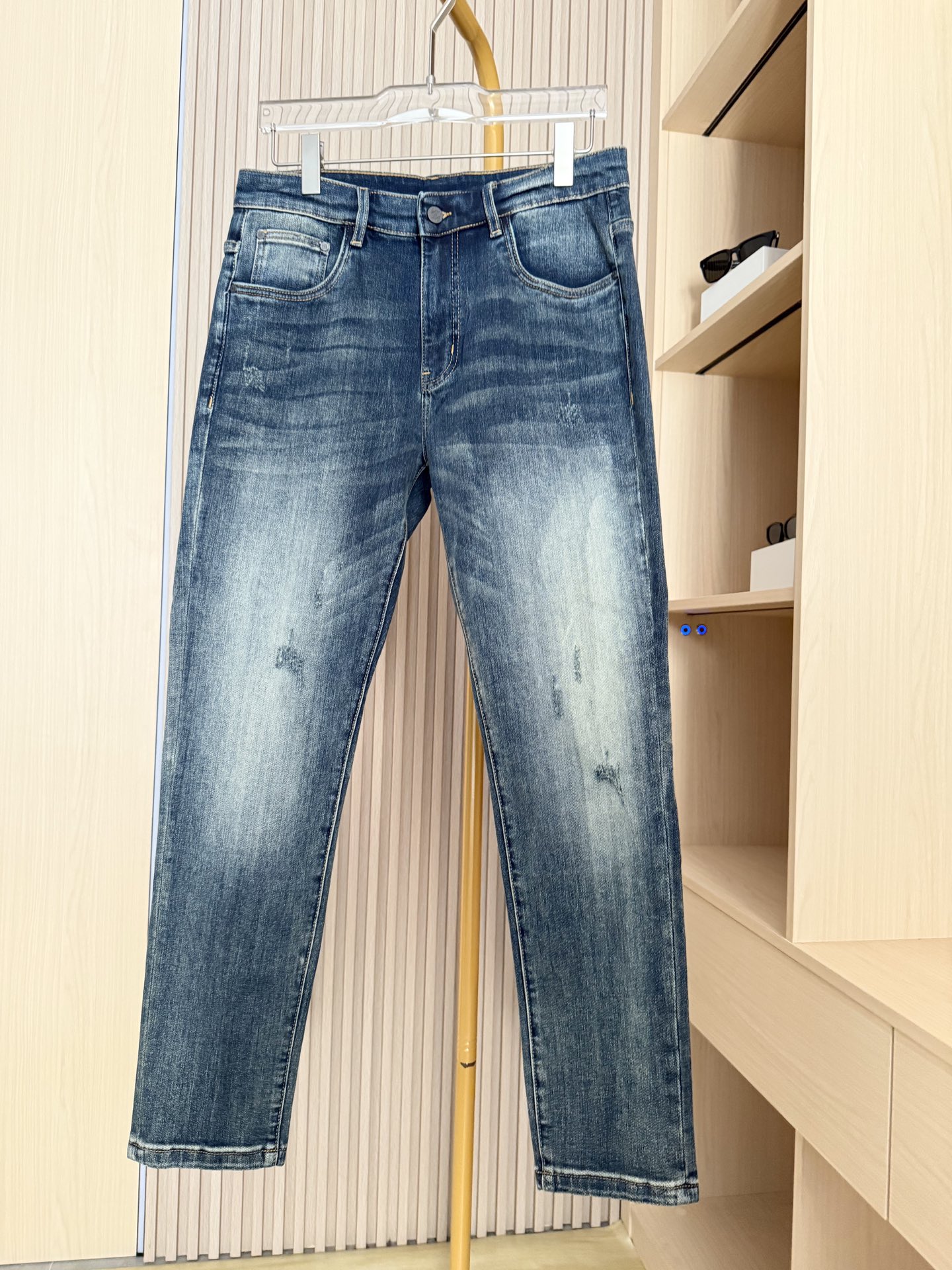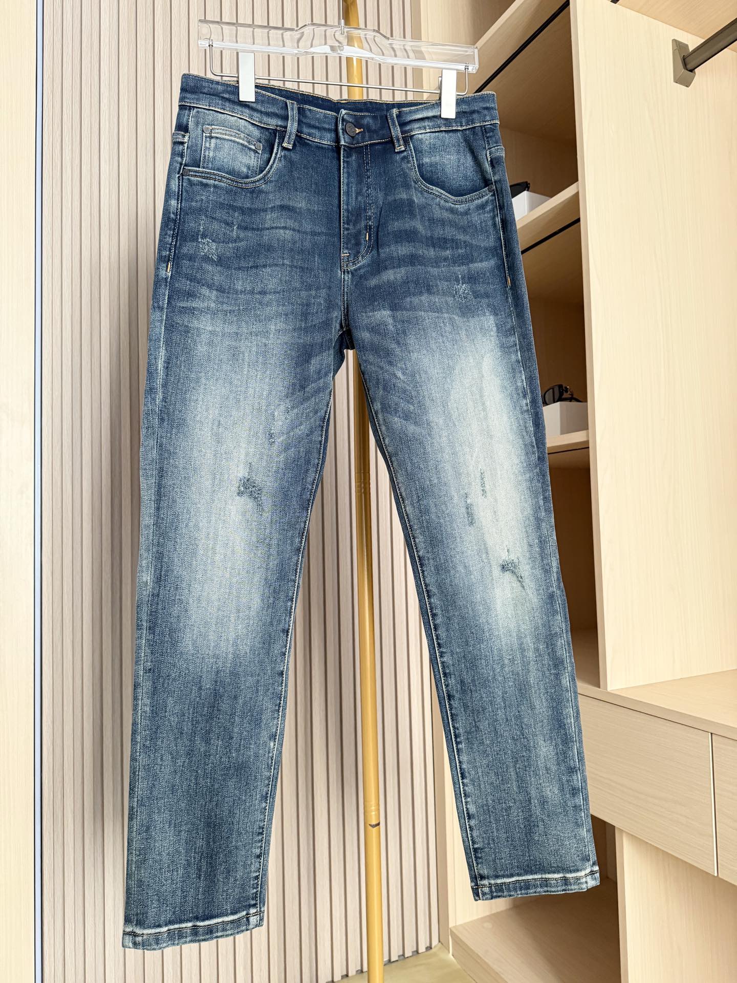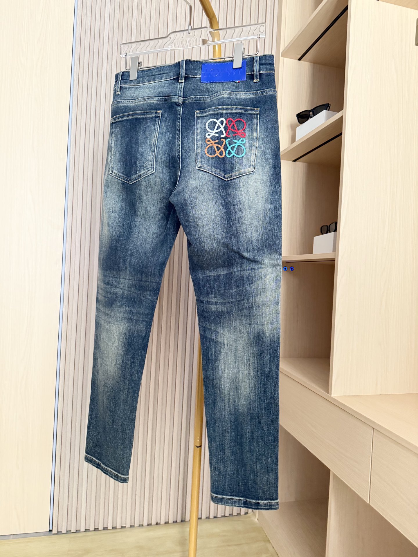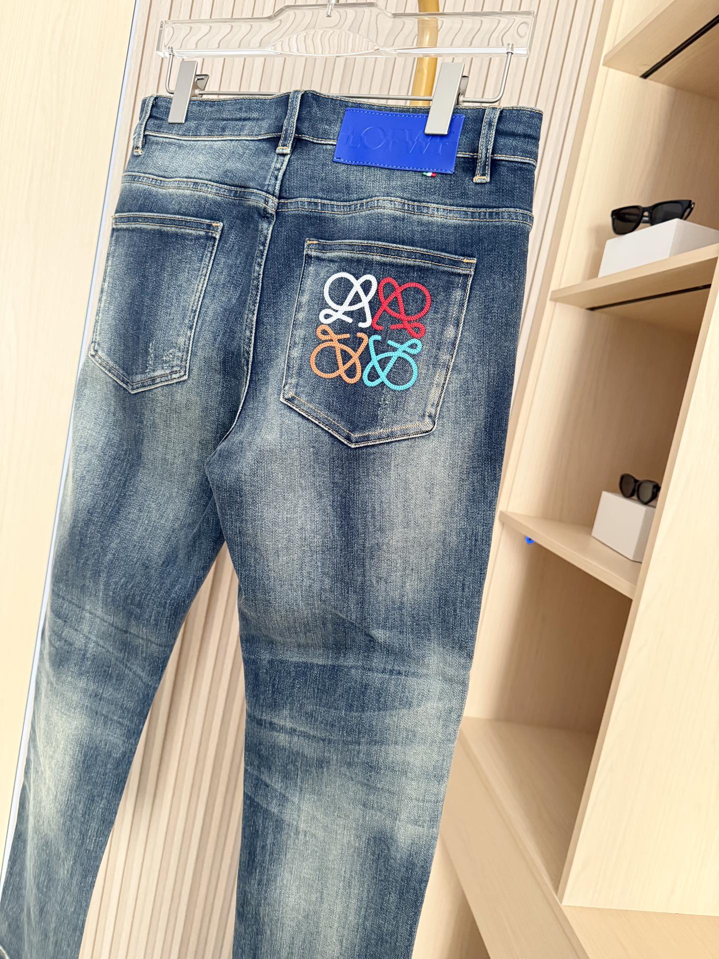 新款牛仔裤 采用优质牛仔面料 经过特殊水洗工艺处理 呈现出自然的做旧效果 质感复古且富有层次 同时面料具有良好的透气性与耐磨性 日常穿着舒适耐穿 修身版型贴合腿部曲线 能够很好地展现身材比例 让穿着者更具型格 且在保证修身的同时 不会产生紧绷感 活动自如 后袋彩色艺术感刺绣标识 极具辨识度 为整体造型增添潮流艺术气息 打破牛仔单品的单调感 蓝色皮牌点缀腰部 细节处彰显品质与设计感 码数 29 38 配香港连卡佛礼盒包装 P