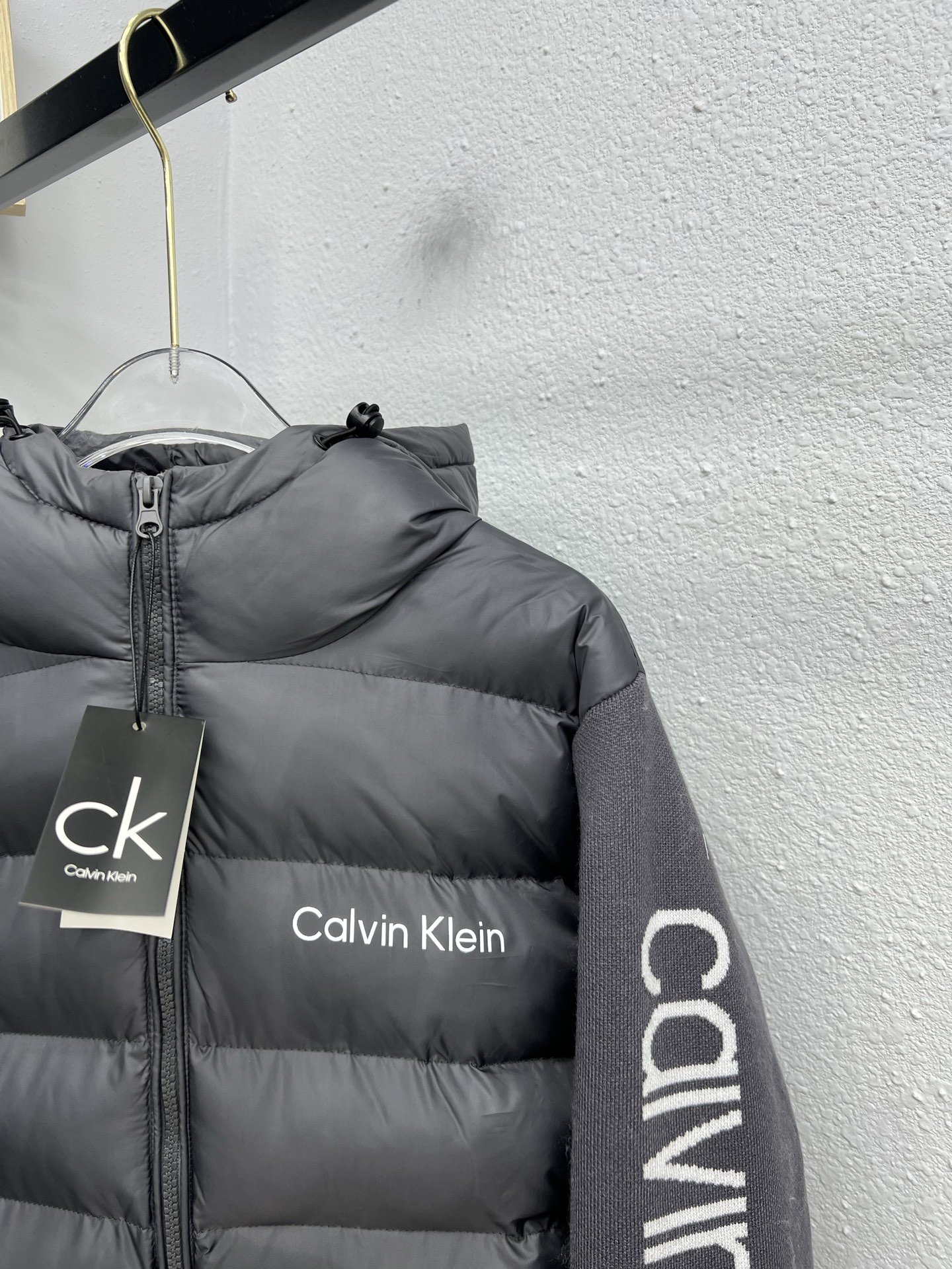 CK连帽针织袖拼接棉服L 4XL 灰色 384975
