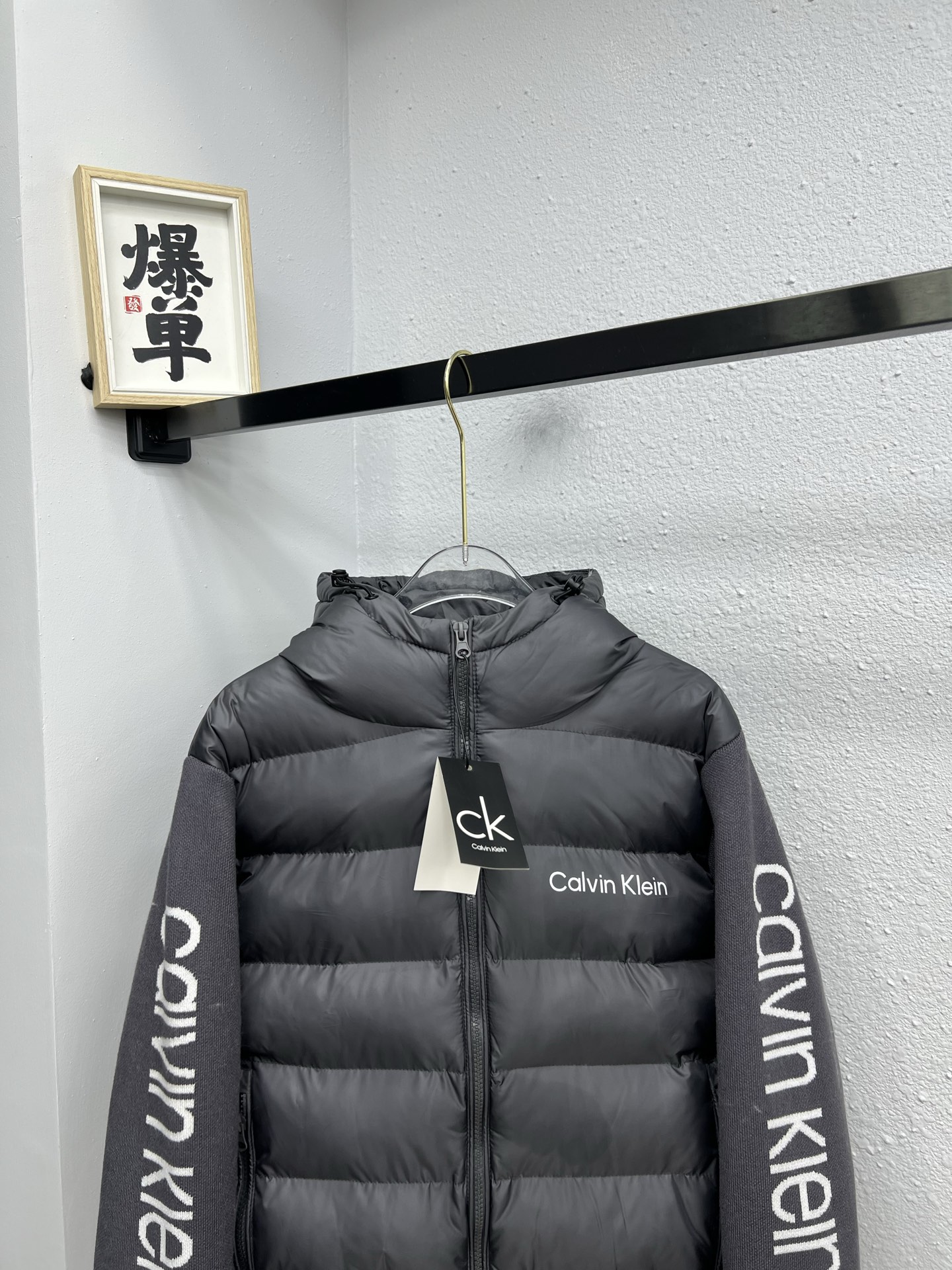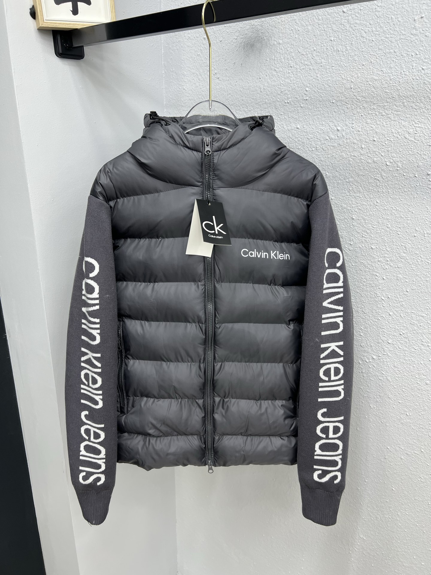 134135851 - CK连帽针织袖拼接棉服L 4XL 灰色 384975