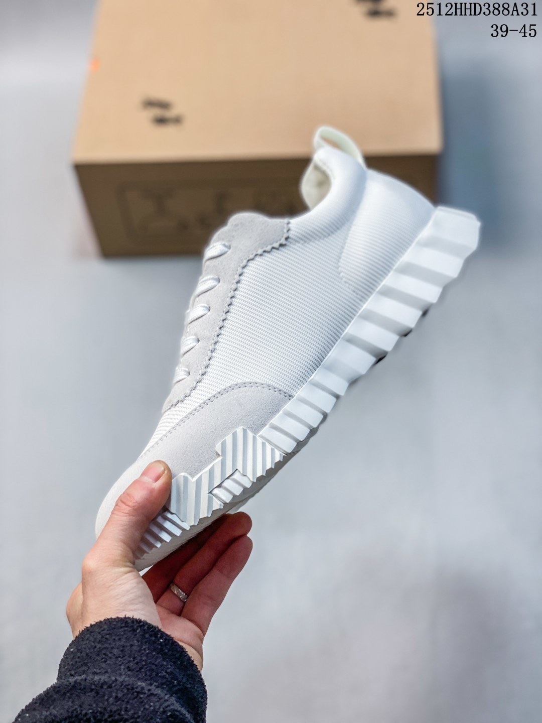 Hermes 爱马仕 Bouncing 低帮休闲板鞋 采用麂皮山羊皮革组合科技网织布鞋面材质 嵌入羊羔皮内底贴附发泡EVA缓震鞋垫 外置原装一致开发TPR耐磨耐弯折橡胶大底 原版开发 全新修改格版裁片 真原厂羊猄皮 卡色对比正品没有丝毫色差 附带正品中文版合格证 区别一眼假过度包装