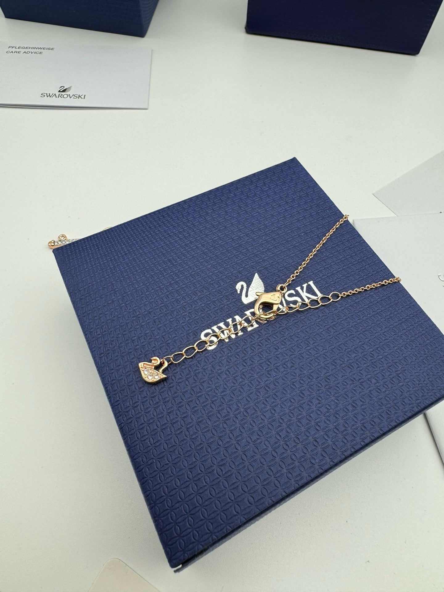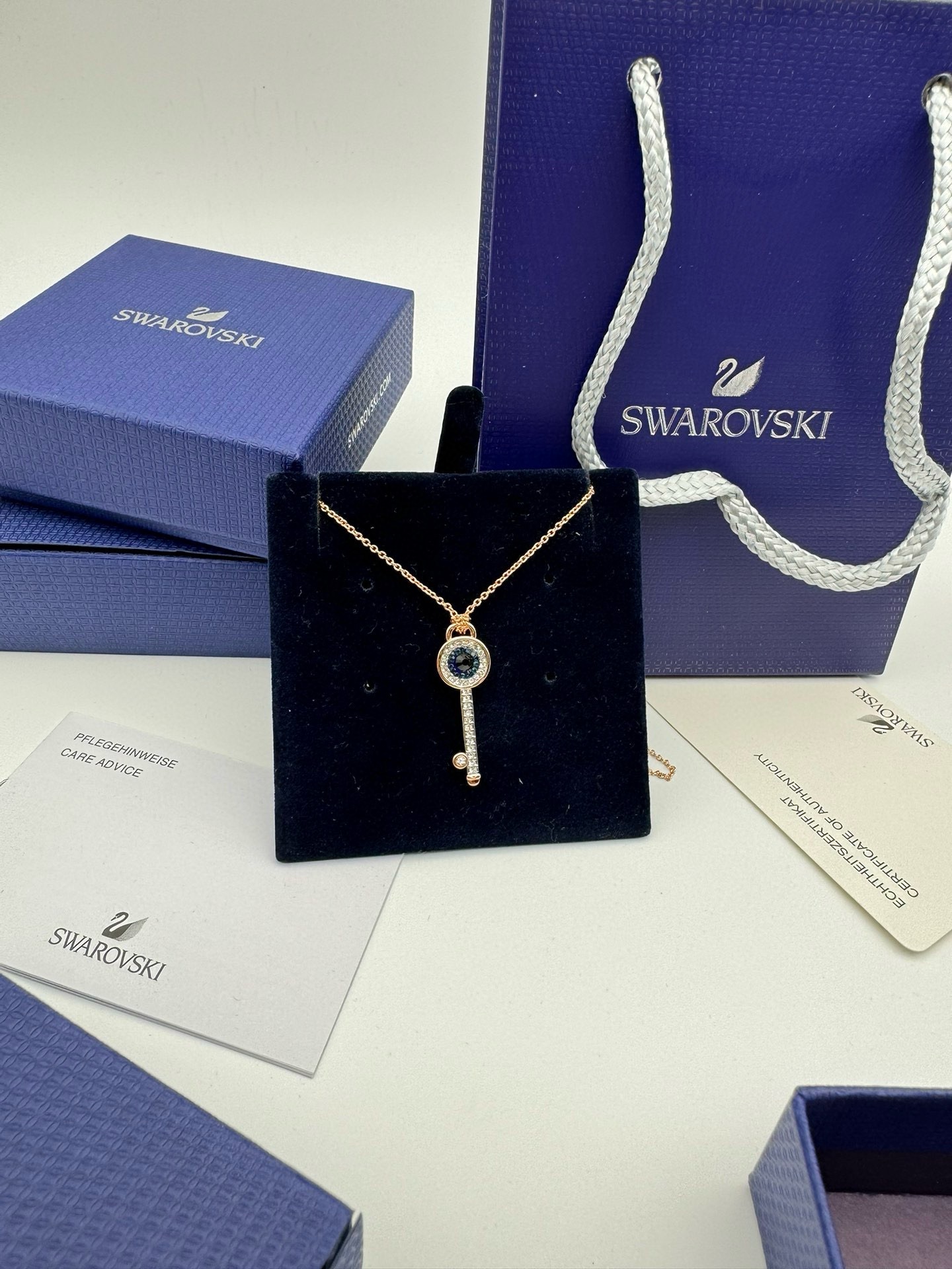 施华洛世奇原厂订单 深圳出口港货 仅此一批 礼物准备好了吗 象征优雅及高贵是施华洛世奇首饰的标志 自信 幸运并且一生只有一个伴侣 象征着一心一意 代表珍贵而永恒的爱情 这款融入多种镀层的Duo Evil Eye链坠 可为装扮增添神秘魅力 此链坠密镶蓝色 透明仿水晶 及以镀玫瑰金色金属打造的眼睛装饰 并搭配一条带有深蓝色仿水晶的镀玫瑰金色饰链 除了是送礼之选外 亦是日常必备的优雅配饰 随附一条饰链 带上它尽显风情 让你在每个场合更添优雅 链长 45CM可调节 颜色 玫银色 材质 合成立方氧化锆 仿水晶 多种金属润饰