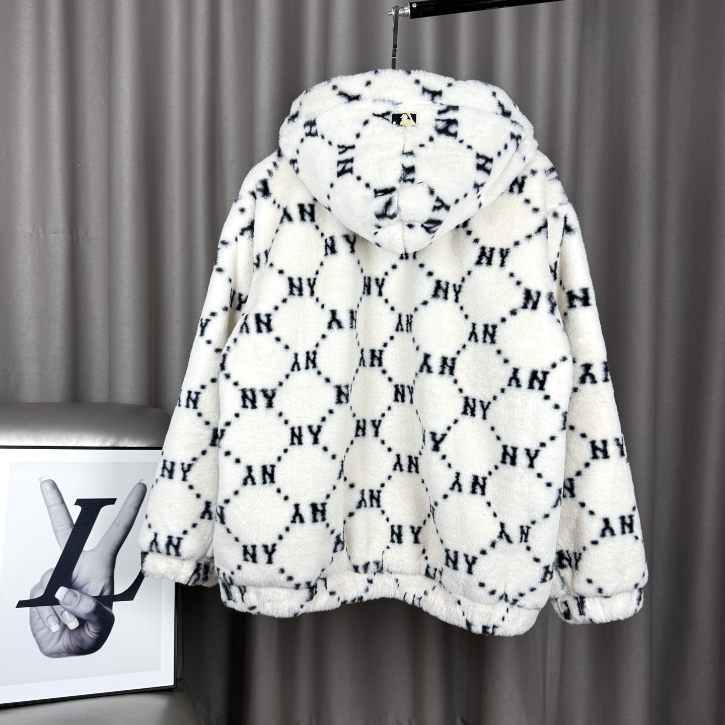 𝑴𝒍𝒃 𝑴𝒐𝒏𝒐𝒈𝒓𝒂𝒎 纽约洋基队老花钻石NY刺绣兔毛抽绳连帽复古美式mlb满印拉链外套男女同款