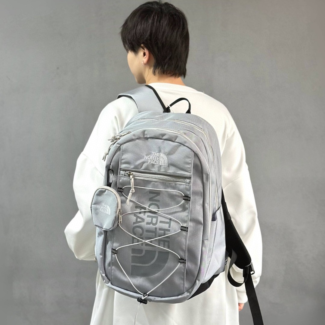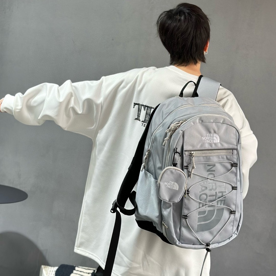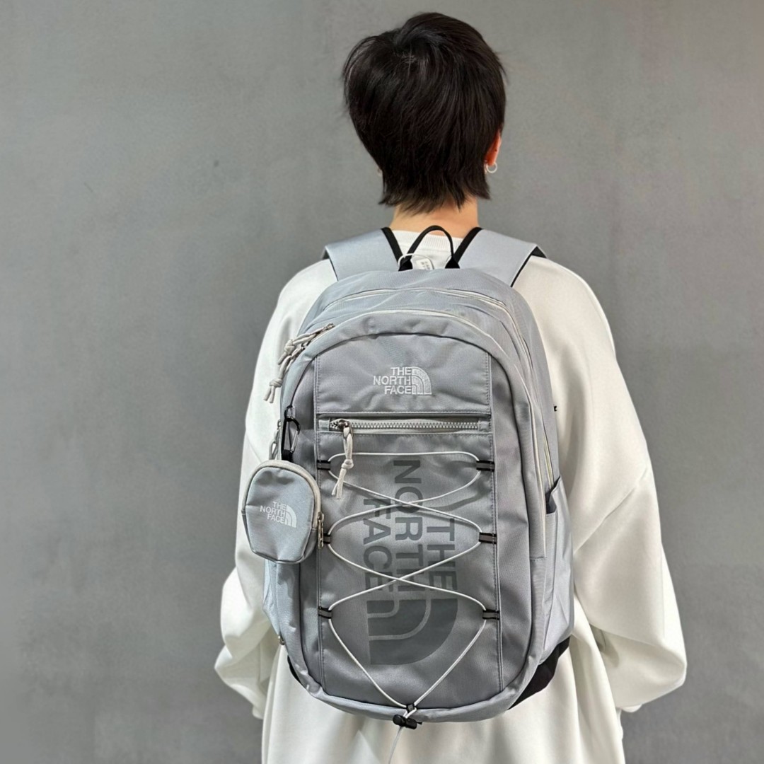 售后不停可退换 顶级版本 TheNorthFace北面双肩包单肩包学生书包男女同款 包包质量超级好 用料厚实 拿到手就知道不是小厂能比拟的 细节 五金都非常到位 绝对潮人必备 模特实拍 上身也非常好看 颜色 灰色 黑色 米白 尺寸 47 32 21