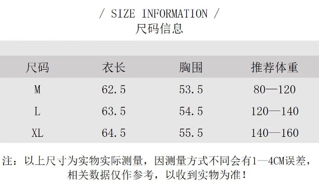 尺码 M XL