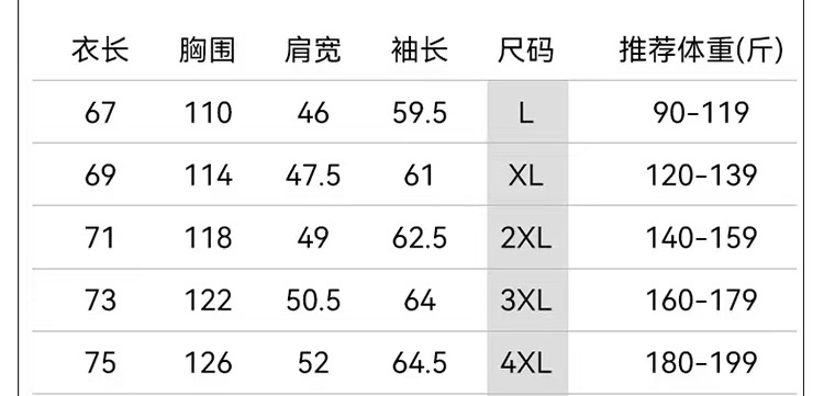 尺码 L 4XL