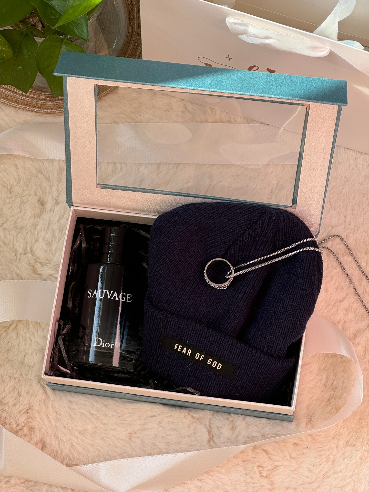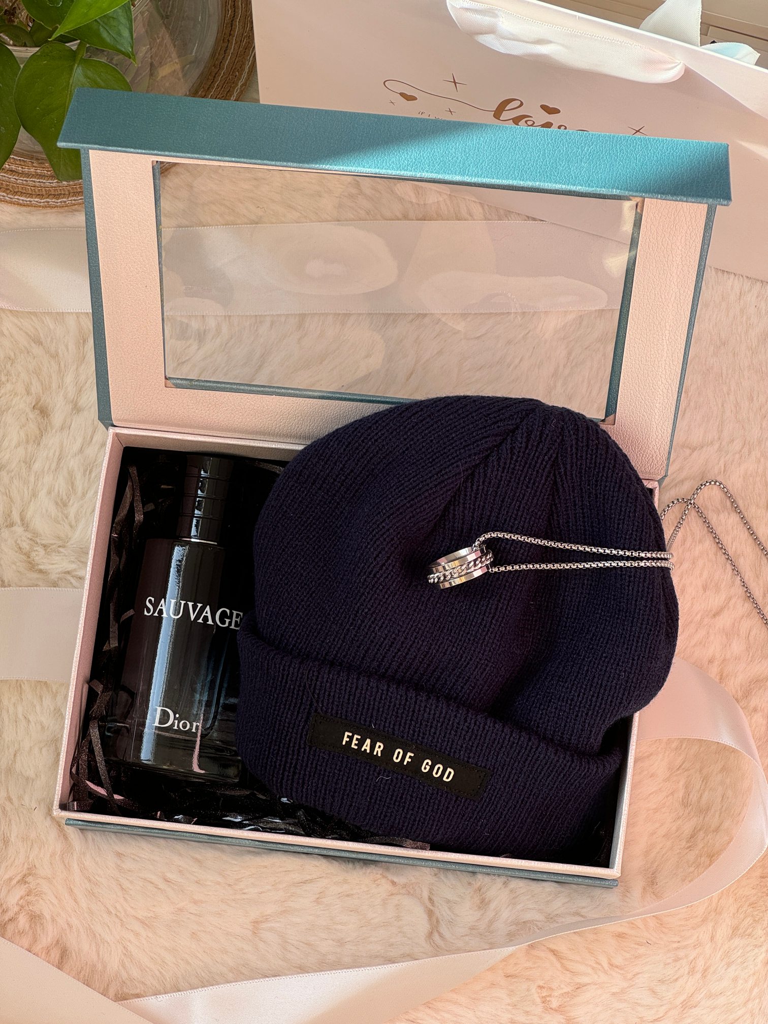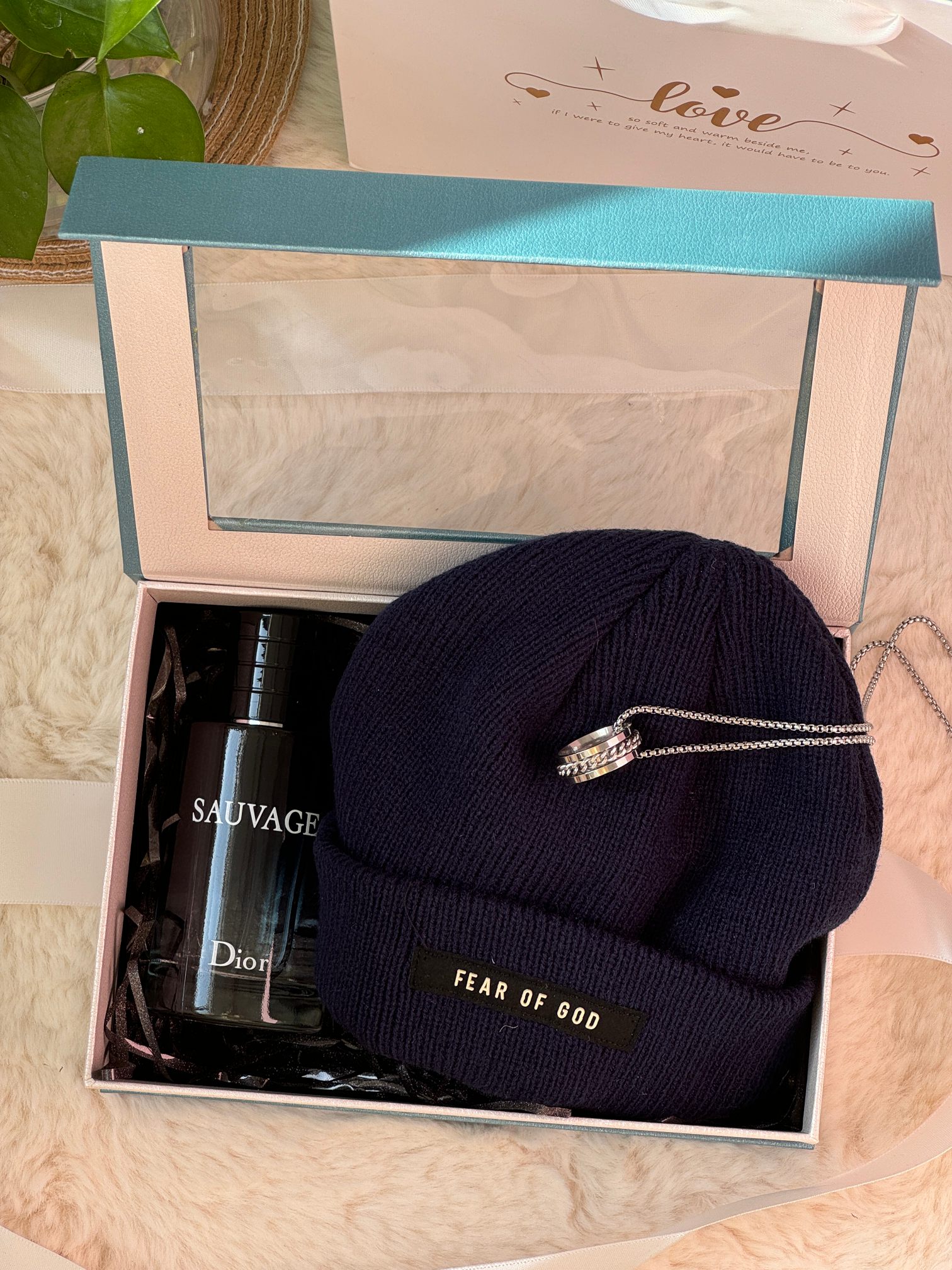 内含 迪奥旷野香水100ml 随机毛线帽 戒指长款项链 可拆卸下来当做戒指 拉菲草
