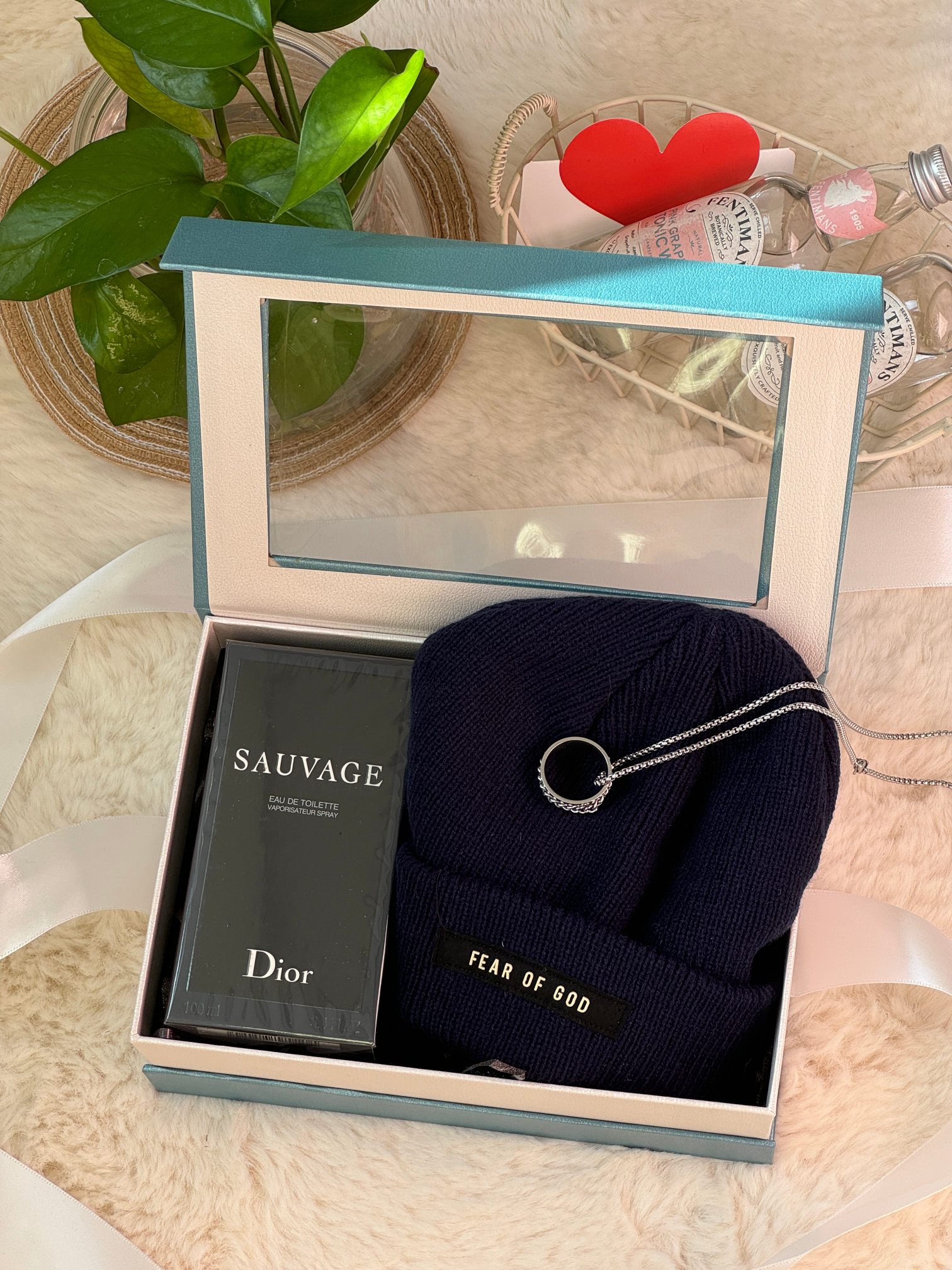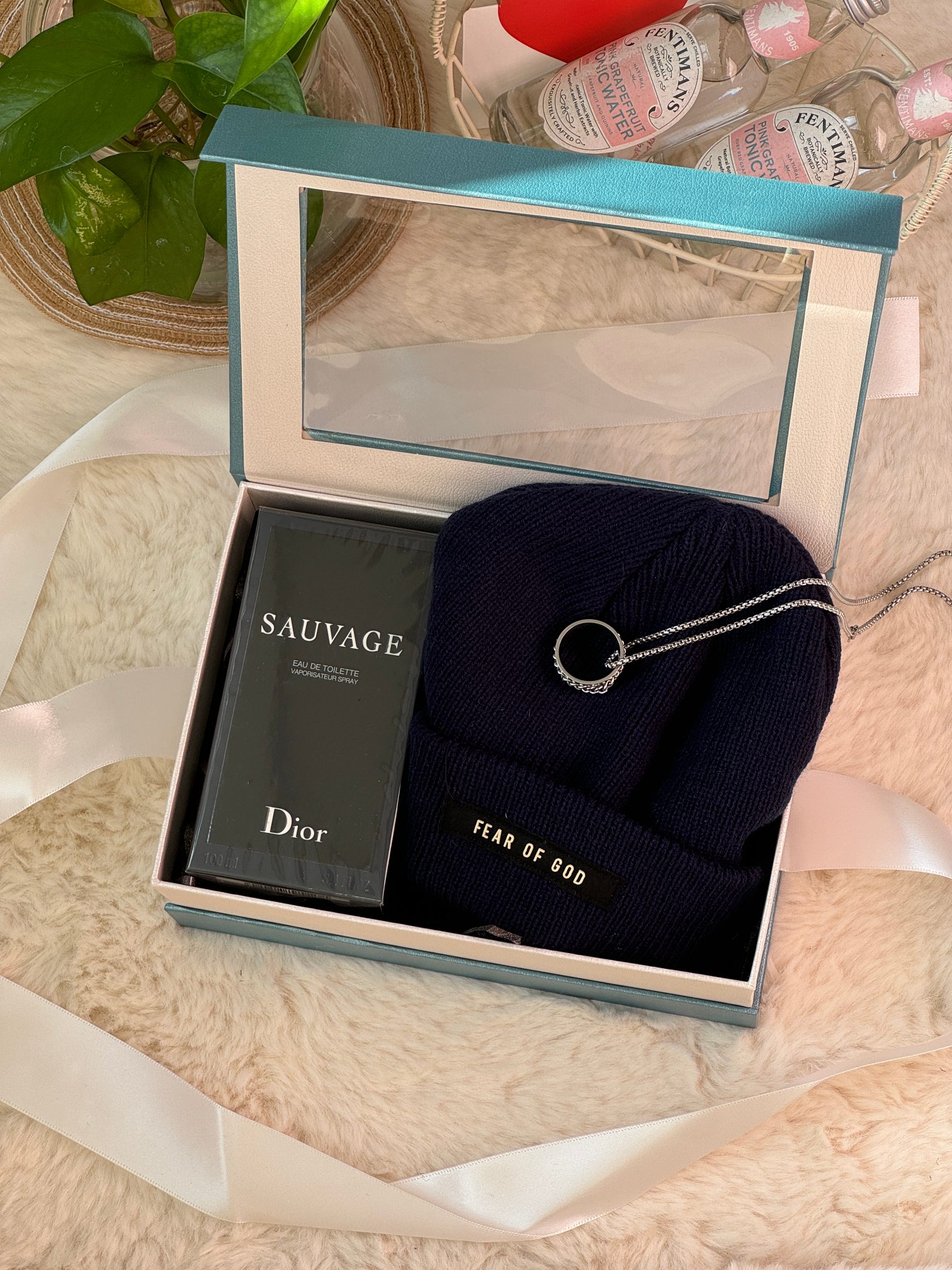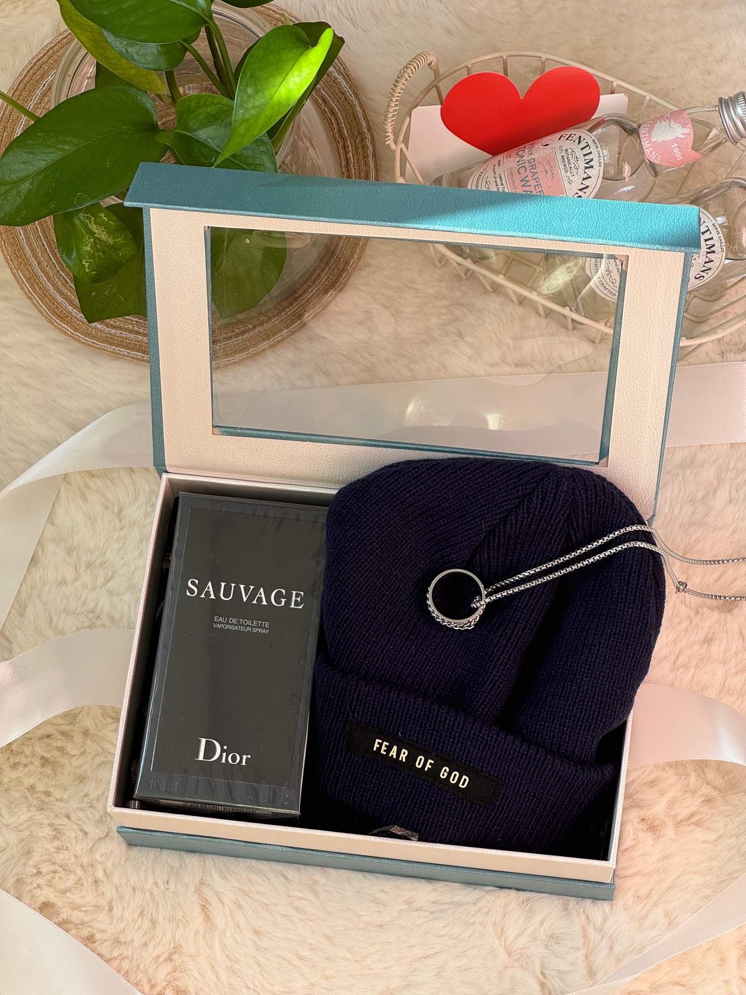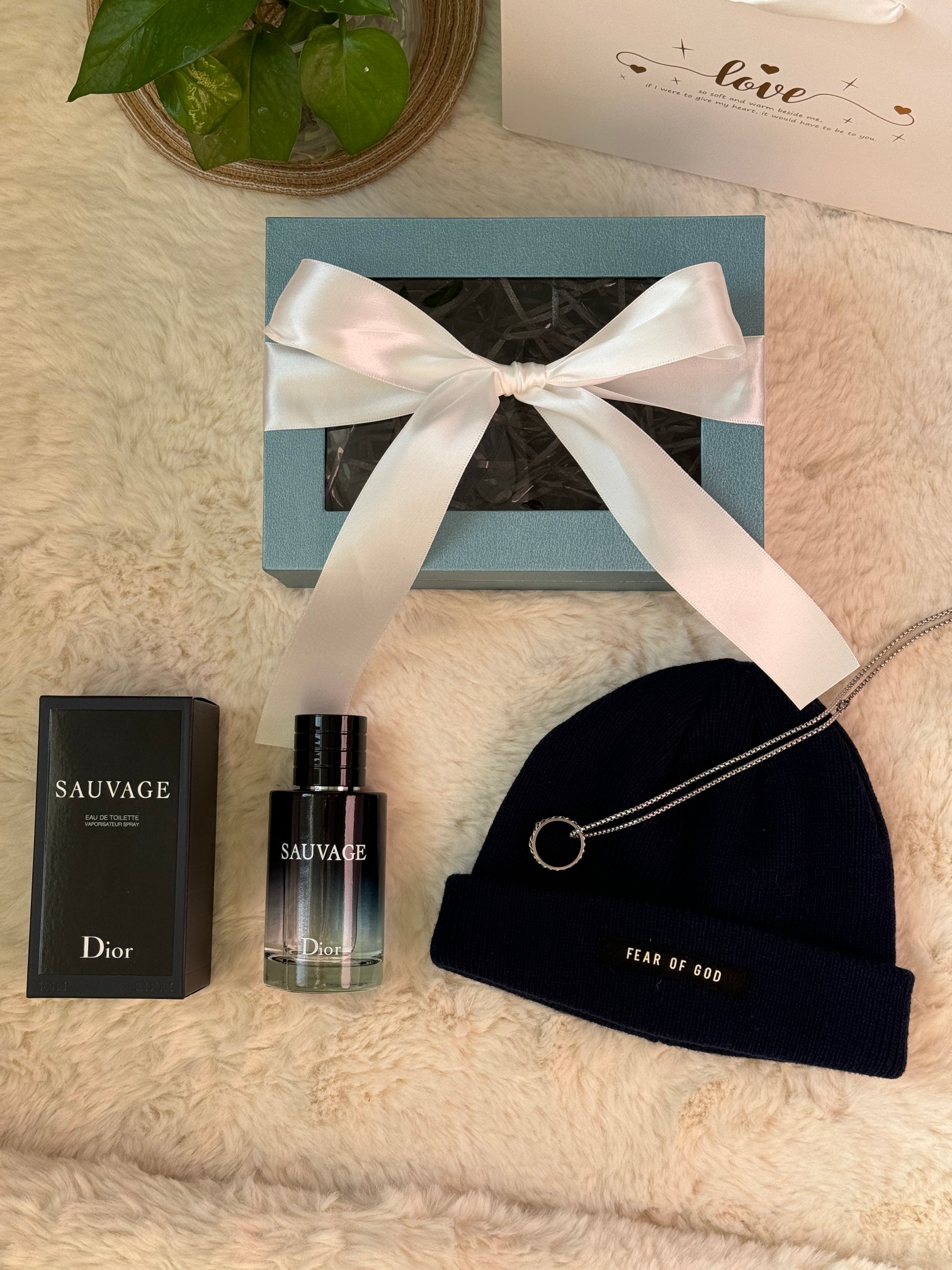 内含 迪奥旷野香水100ml 随机毛线帽 戒指长款项链 可拆卸下来当做戒指 拉菲草