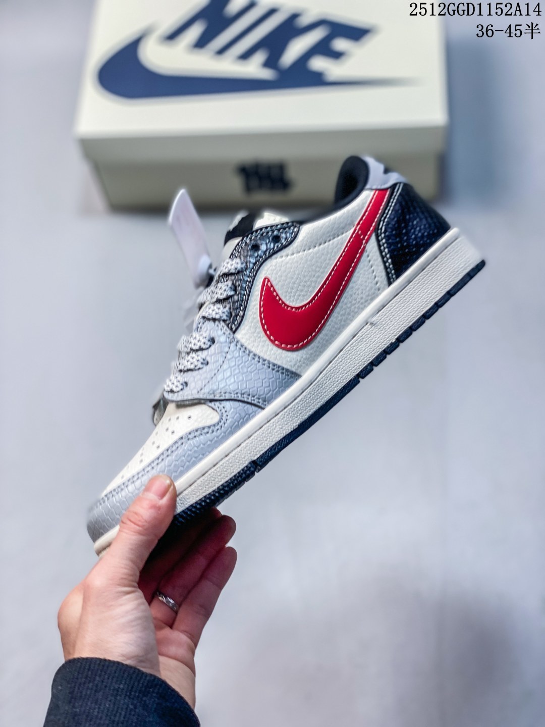 Travis Scott x Fragment Design x Jordan Air Jordan 1 Low OG SP NIKE联名 白红黑色 多方联名合作融合了Travi翻毛蓝勾 Scott 独特的音乐风格 藤原浩个性的设计风格以及Jordan品牌的经典元素 使其成为一双具有独特身份和价值的鞋子 清新而立体的外观加上联名标识更突出了其独特身份 这种配色方案显示出活力和时尚感 在视觉上引人注目 鞋身的质感和细腻的细节处理使其显得高端而格调十足 这款 倒钩 联名是设计与创意完美结合 融合多方的个性风格是一款备受瞩目的潮流鞋款 低帮休闲板鞋 定制鞋盒 大厂纯原品质出货 超高清洁度 皮料切割干净无任何毛边 细节完美 货号 HS1239 005 Size 36 36 5 37 5 38 38 5 39 40 40 5 41 42 42 5 43 44 44 5 45