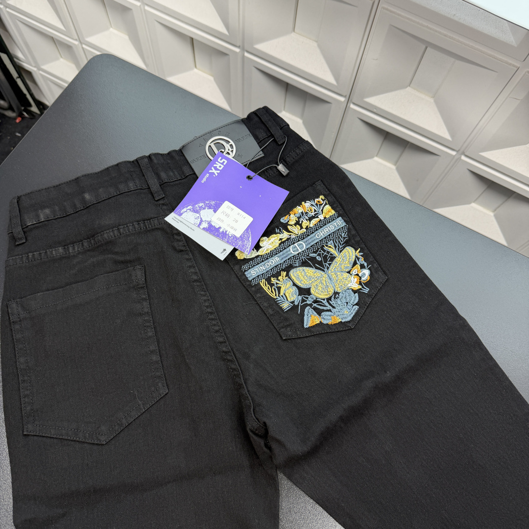春夏新款上新爆炸输出Dior迪奥直筒长裤牛仔裤 口袋刺绣图腾蝴蝶图案 钢印皮牌 三标齐全官网一致 放大看细节原相机实物拍摄 颜色 黑色 尺码 L 4xl L 80 105斤 XL 105 120斤 2XL 120 140斤 3XL 140 160斤 4XL 160 180斤