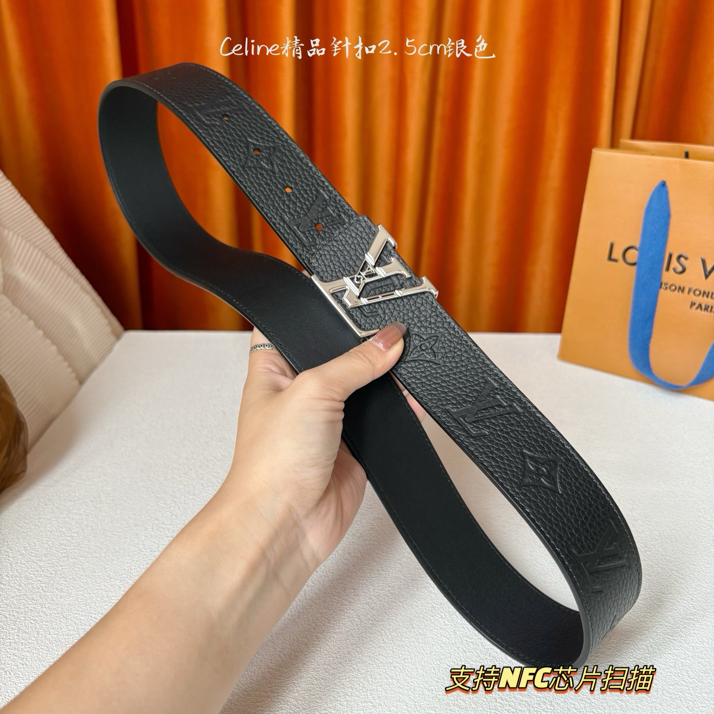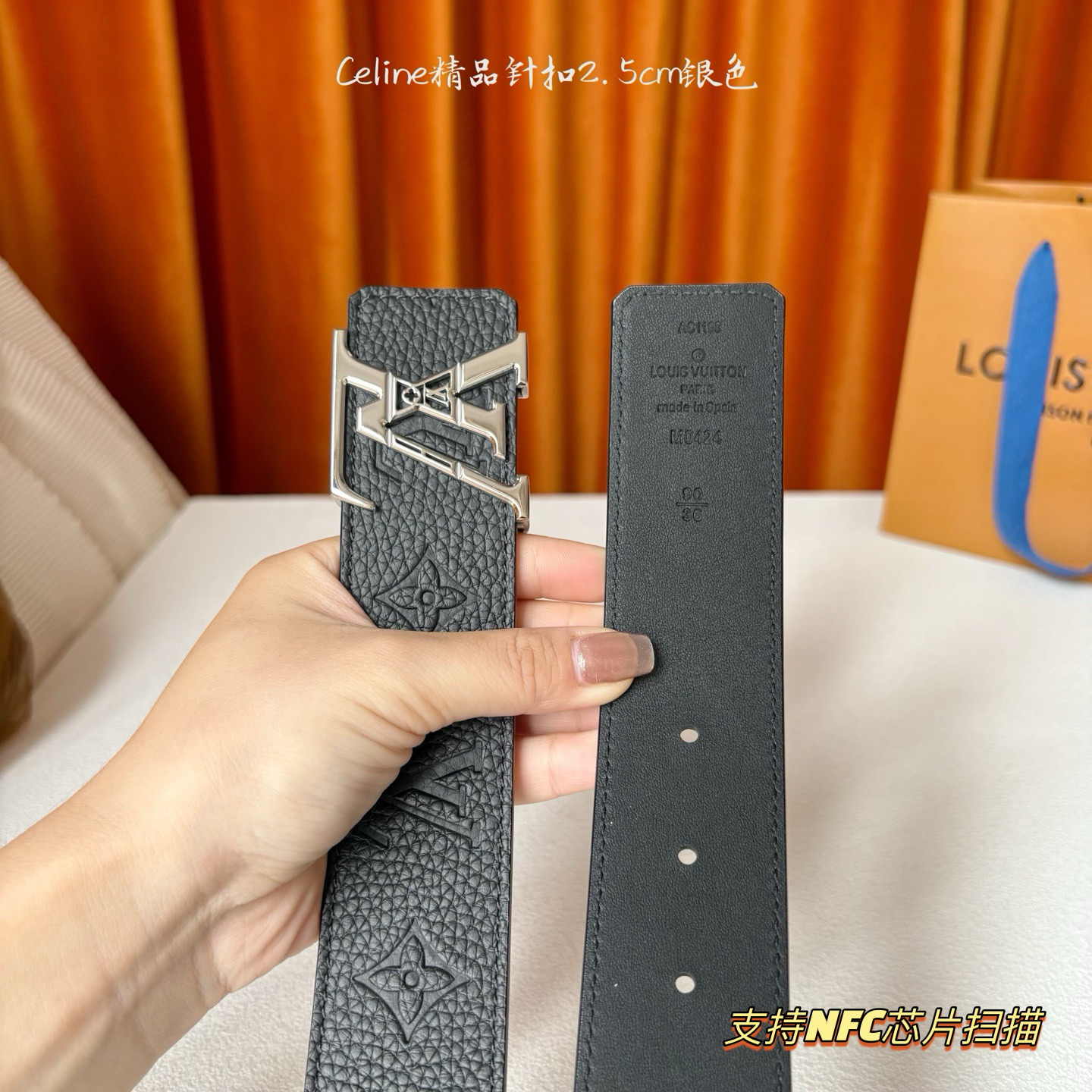 Lv皮带宽度 4 0cm 专柜同步最新系列 搭配精致雕扣头 媲美代购欢迎对比 时尚百搭 品味的体现 休闲高大上 iPhone实物实拍 腰带上身效果超好 抓紧转图 爱心 专柜全套包装支持NFC芯片扫描