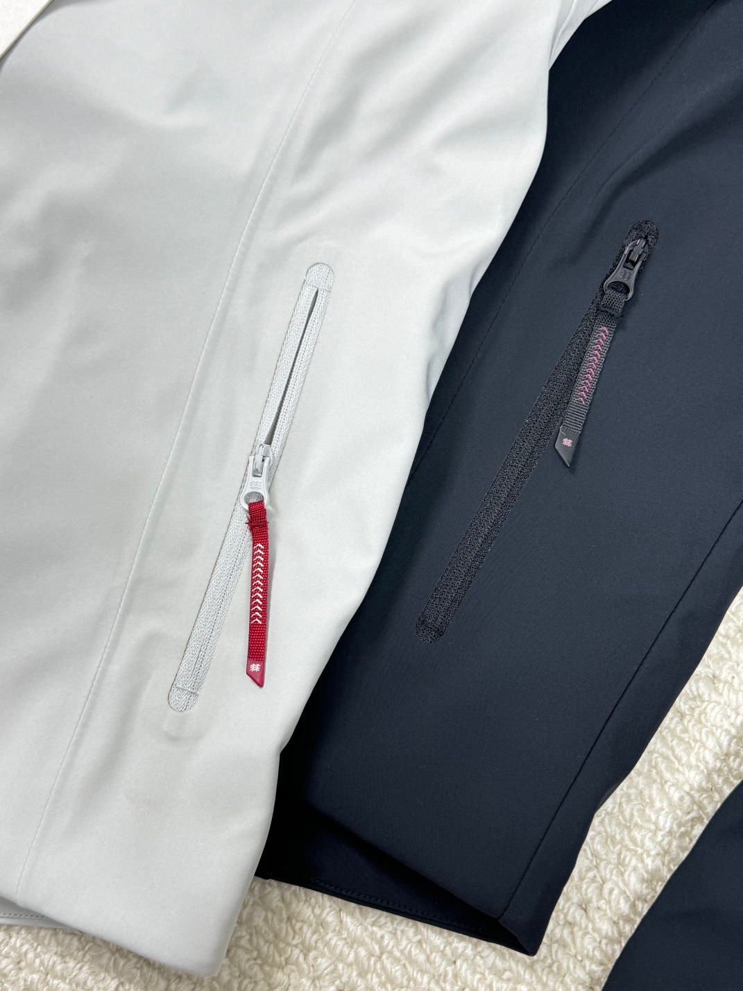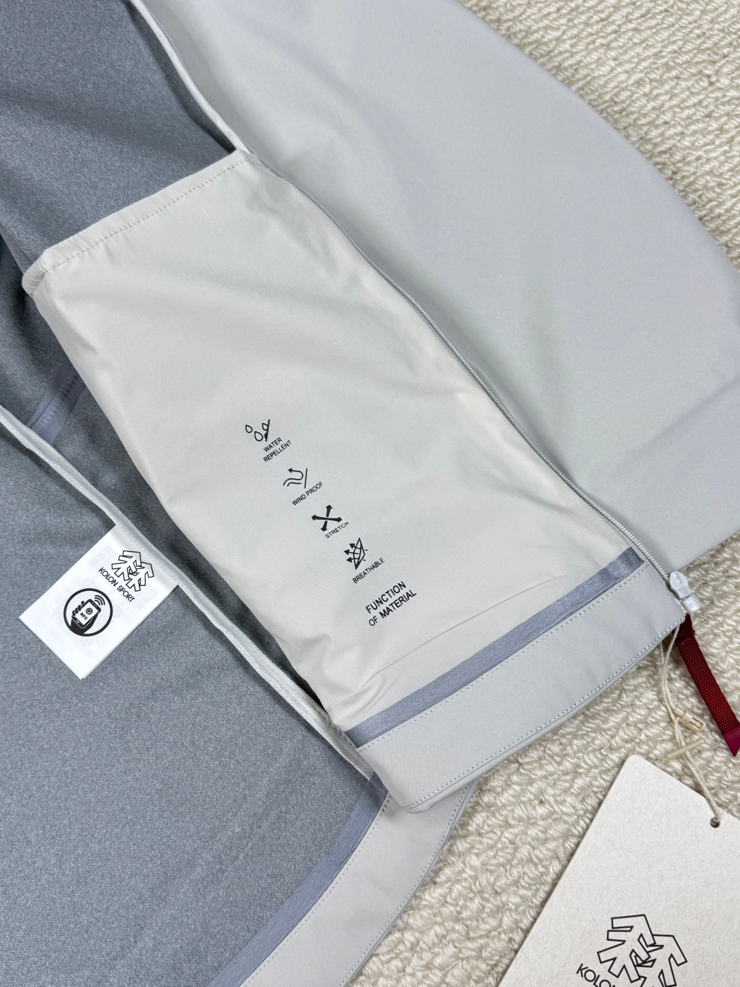 工艺 原版分解 从裁剪 拼接 到缝制工艺完全原版一比一 全身无缝压胶工艺 帽子可调节 两侧拉链口袋 细节做工到位 穿着舒适不闷