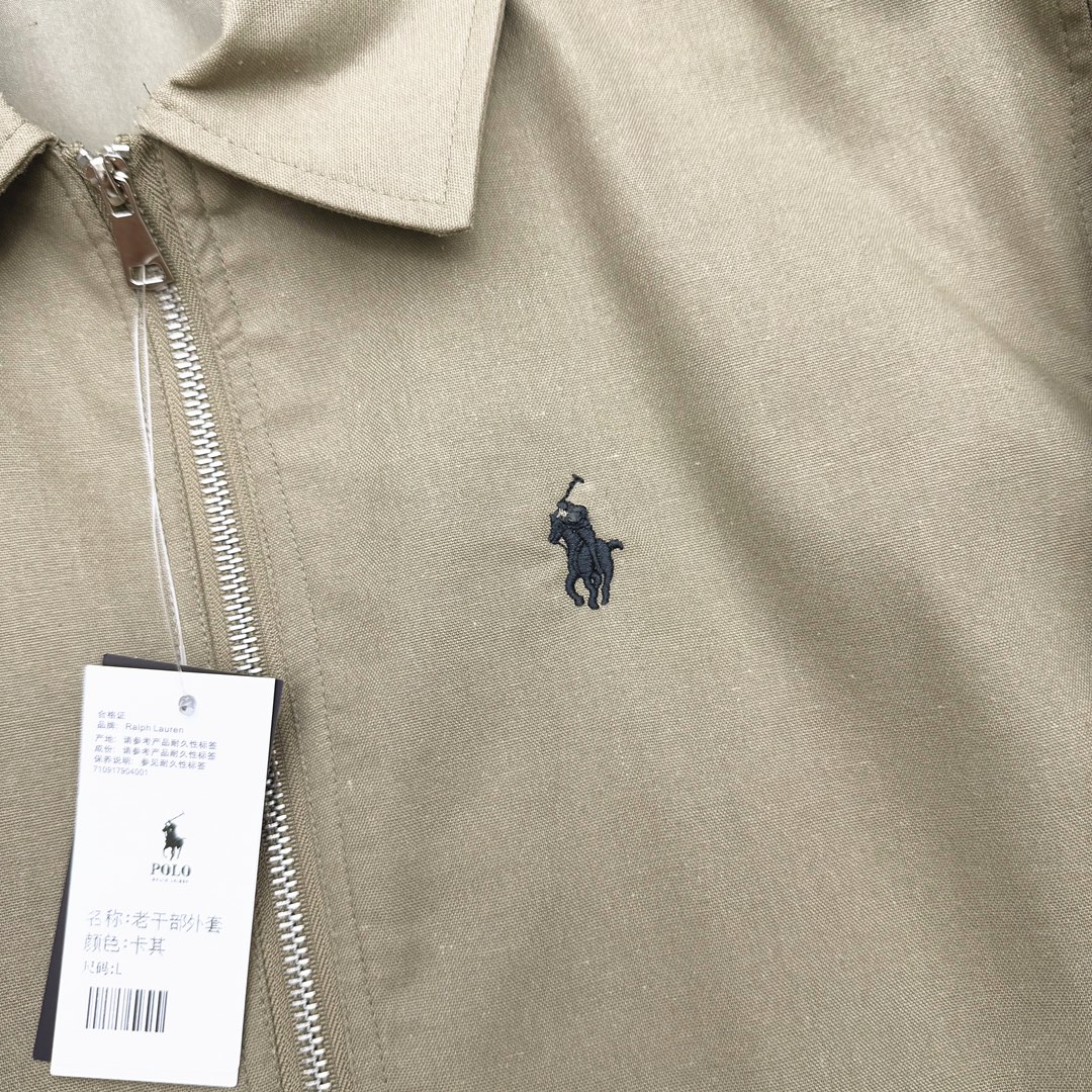 严选好货 拉夫劳伦RalPh Lauren新款男士休闲翻领夹克外套 经典时尚款 客供亚麻质感面料 内里内衬 挺括有型 舒适透气 胸前小标logo刺绣 精致饱满 双开拉链门襟 纽扣袖口 做工细节都非常不错 上身效果一级棒 喜欢的兄弟不要错过 颜色 卡其色 尺码 M一2XL