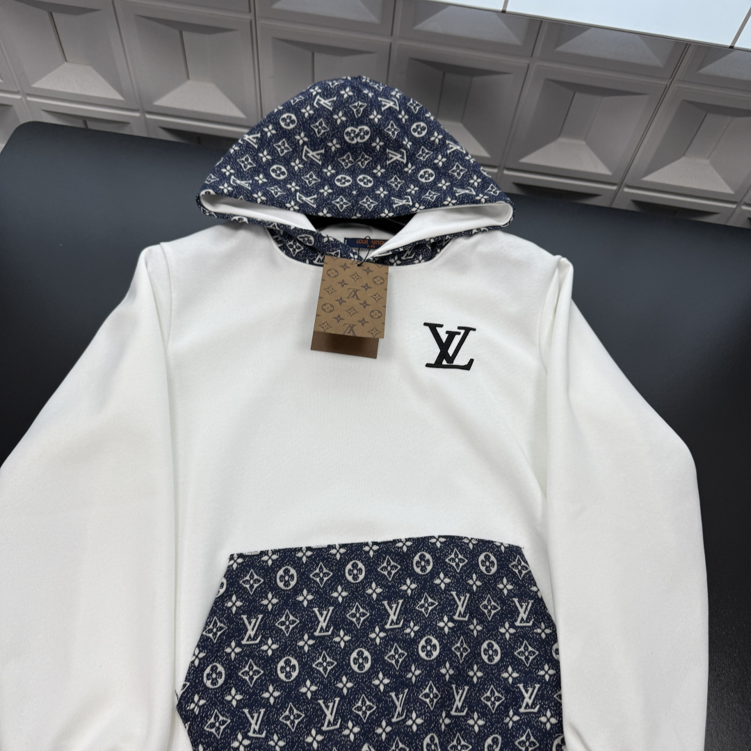 春季新款上新爆炸输出Lv路易威登连帽卫衣 胸前植绒字母Logo 帽子满印提花字母图案 三标齐全官网一致 放大看细节原相机实物拍摄 颜色 白色 尺码 L 4xl L 80 105斤 XL 105 120斤 2XL 120 140斤 3XL 140 160斤 4XL 160 180斤