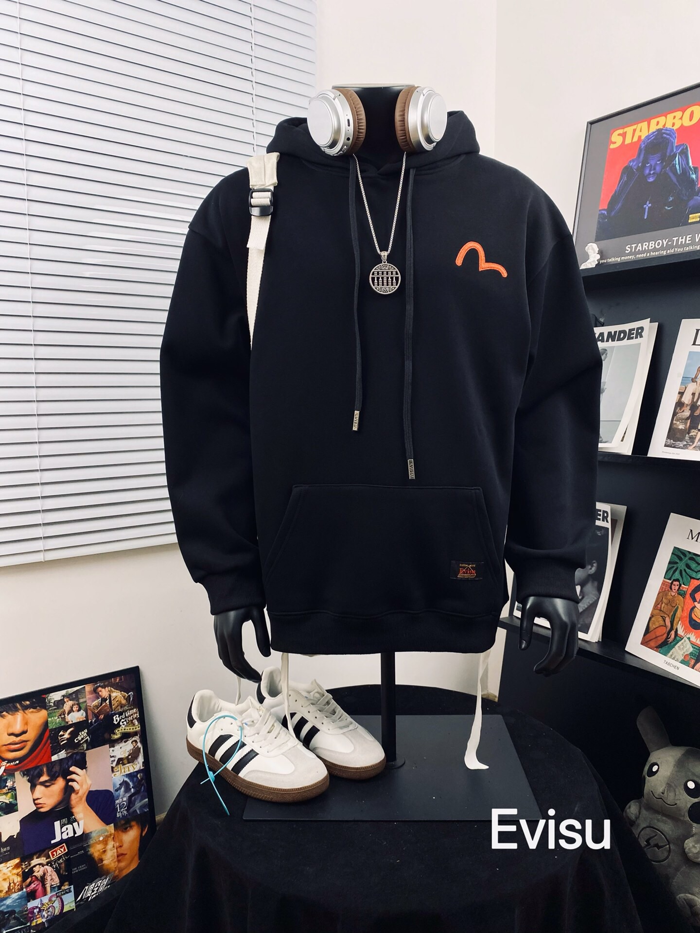 EVISU 福神高版本小恶魔刺绣达摩敷棉连帽卫衣