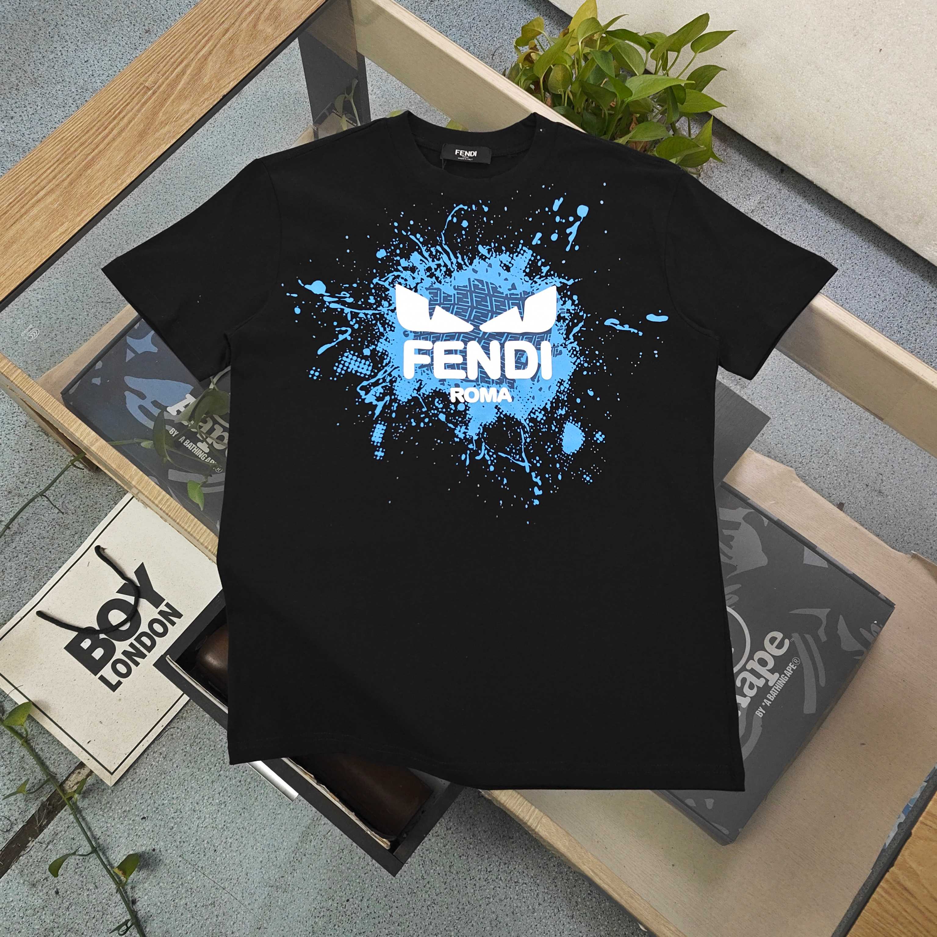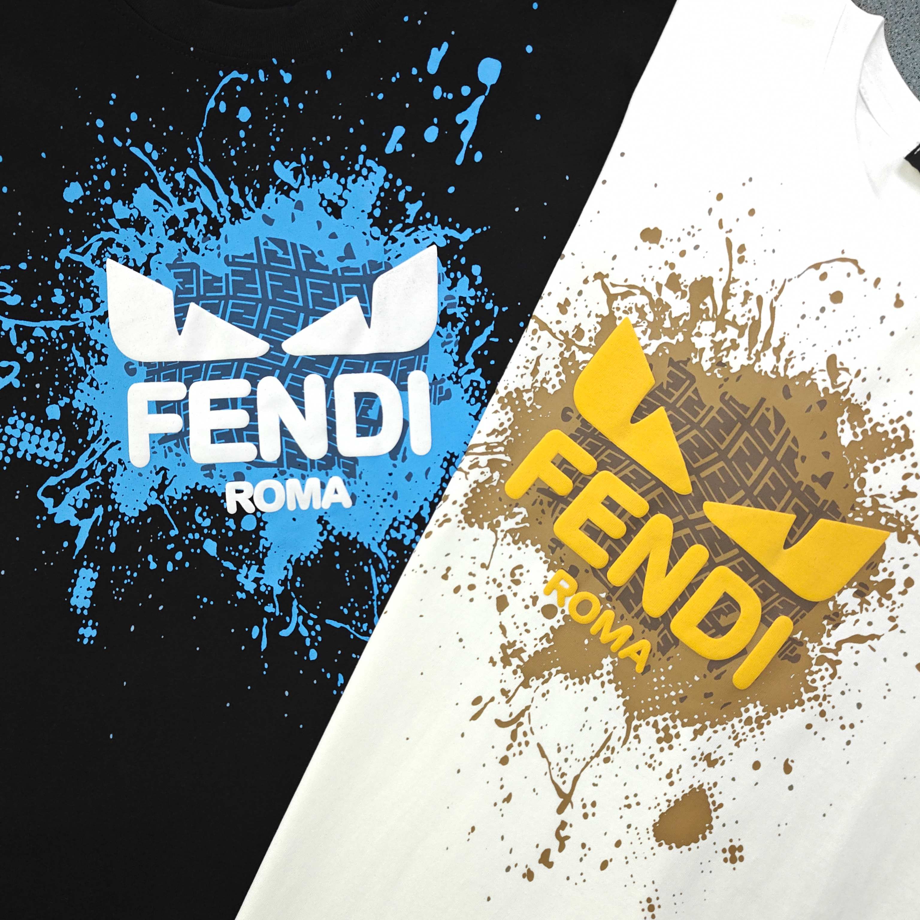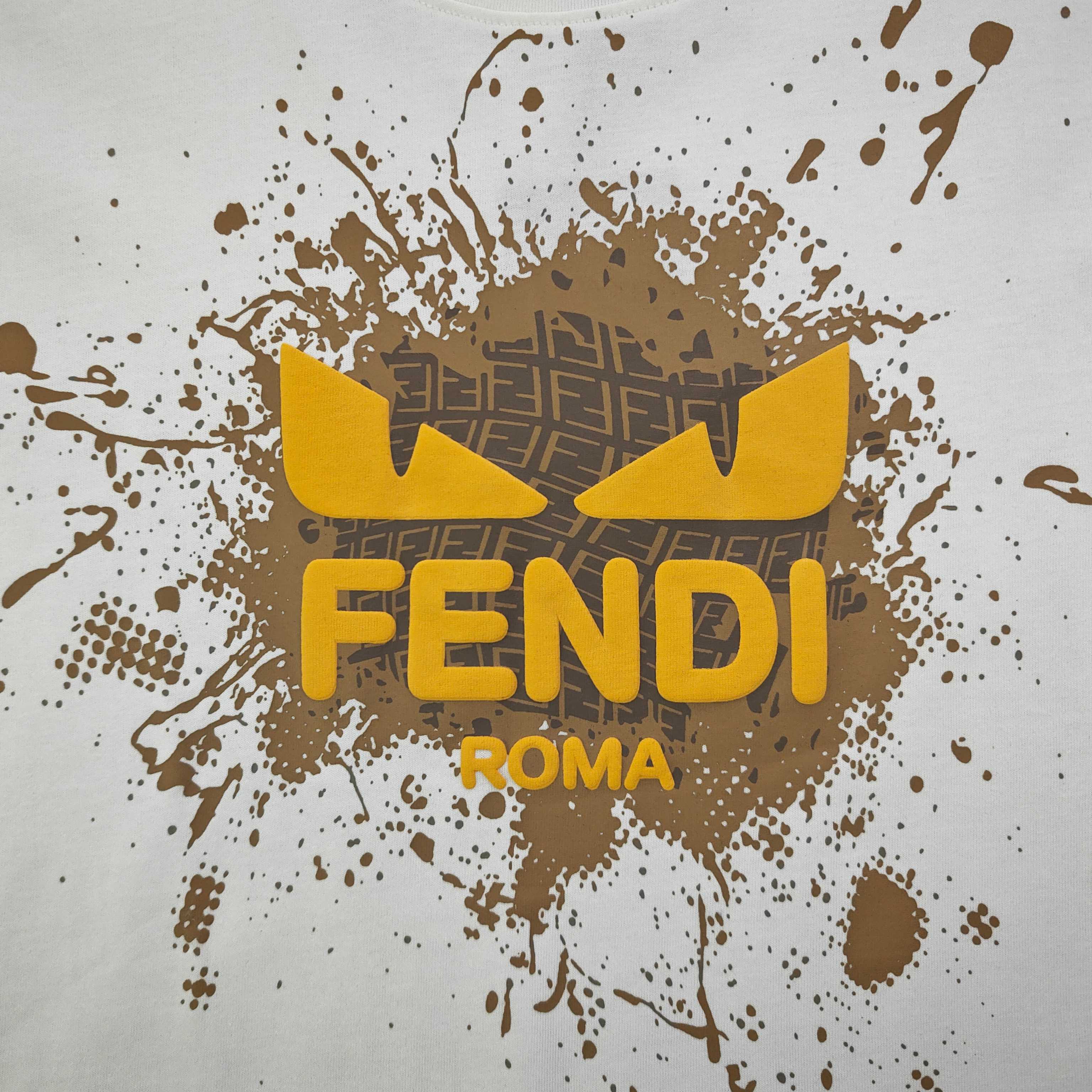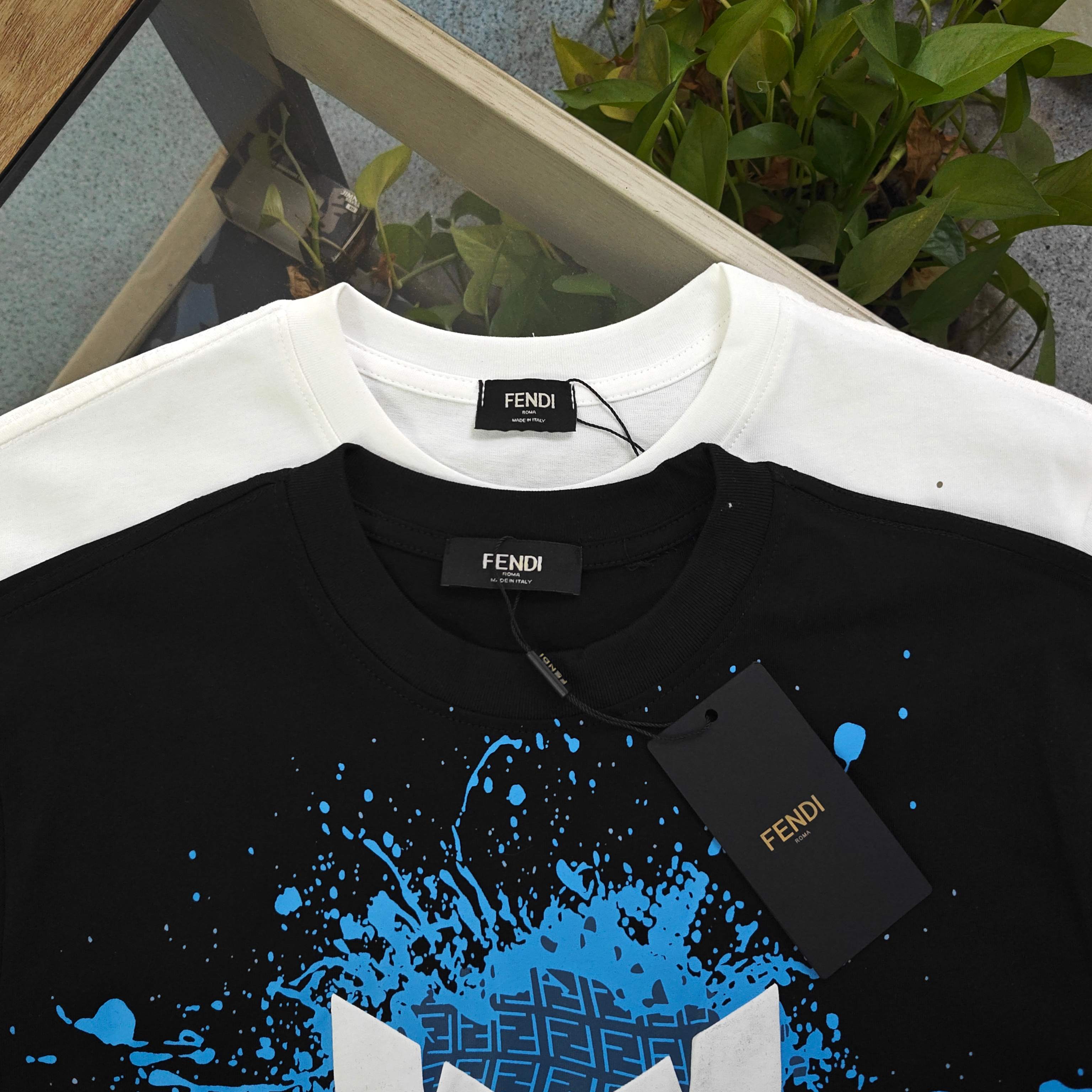 2026新款Fendi芬迪恶魔之眼发泡字母图案logo印花休闲情侣圆领短袖T恤 采用32支双纱精梳纯棉爽滑手感 纯棉不起球不起毛 面料厚度270克重 质量保证 定制面料 定制定染 包浆印刷环保不开裂 欢迎对比质量 男女同款