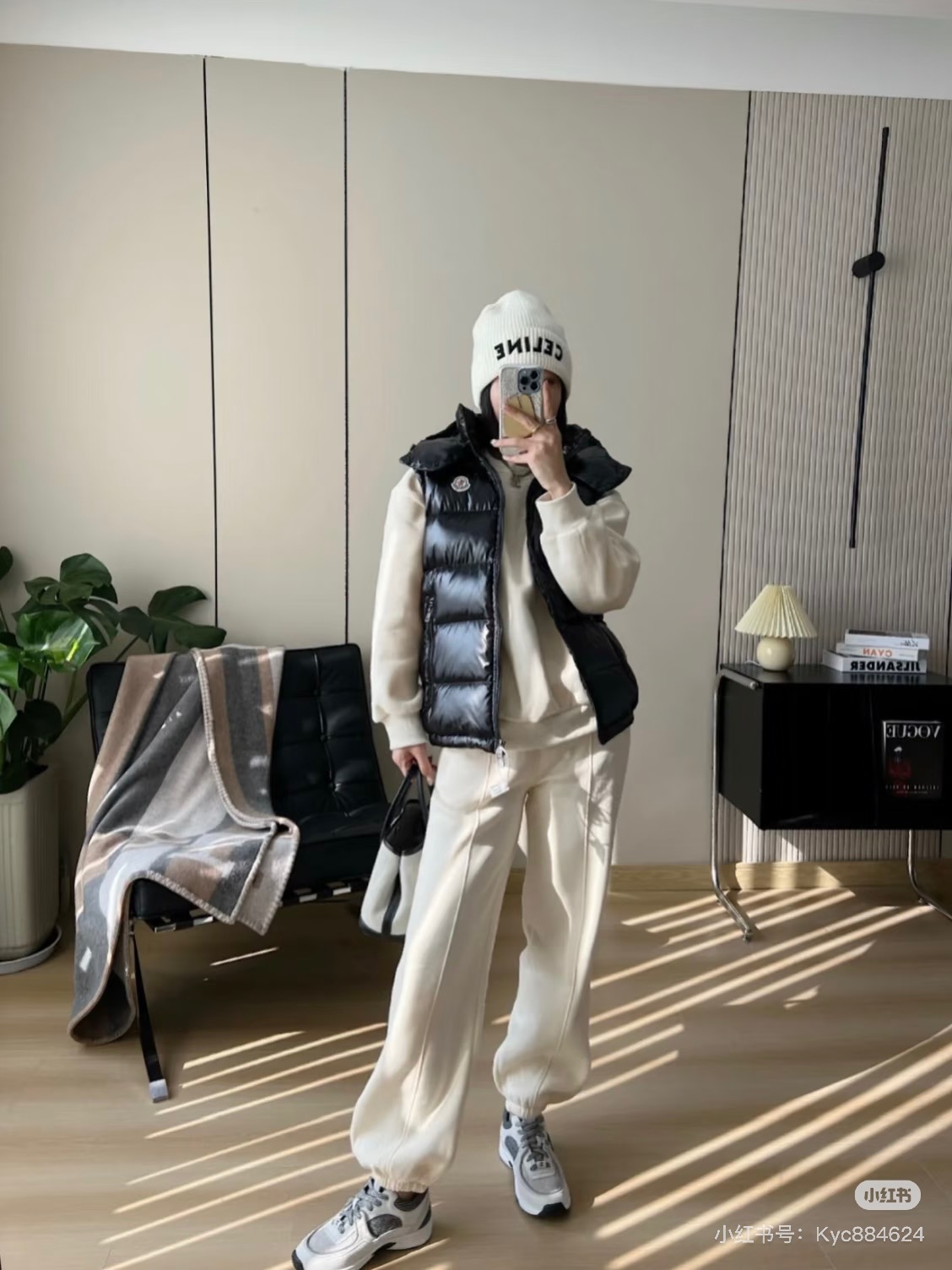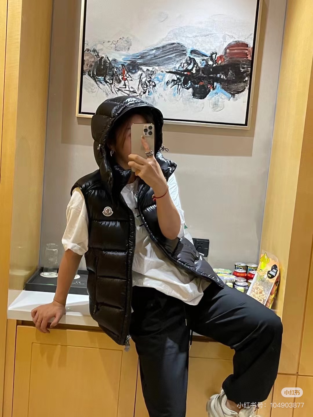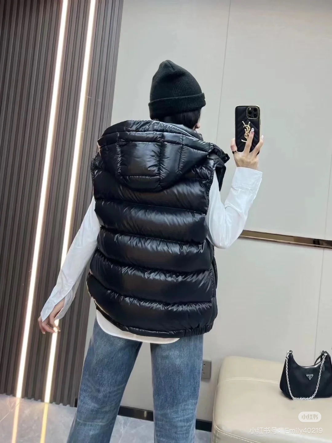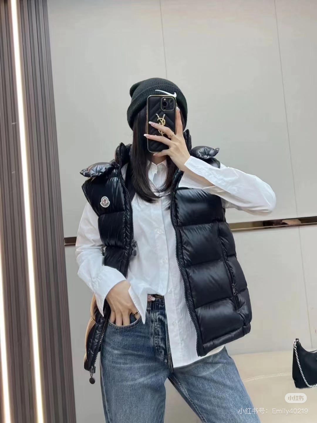很基础的设计 与经典款MAYA马甲相比 它更显时髦的地方是帽子的设计 可拆卸的设计让马甲呈现不同穿搭风情 比经典款更为实力抢镜 兼具时髦耐看的造型 虽然轻薄 里边填充的是白鹅绒 上身特点的保暖 面料采用定织的防水尼龙材质 修身的版型设计 上身实力显瘦 男生女生都能轻松驾驭起来