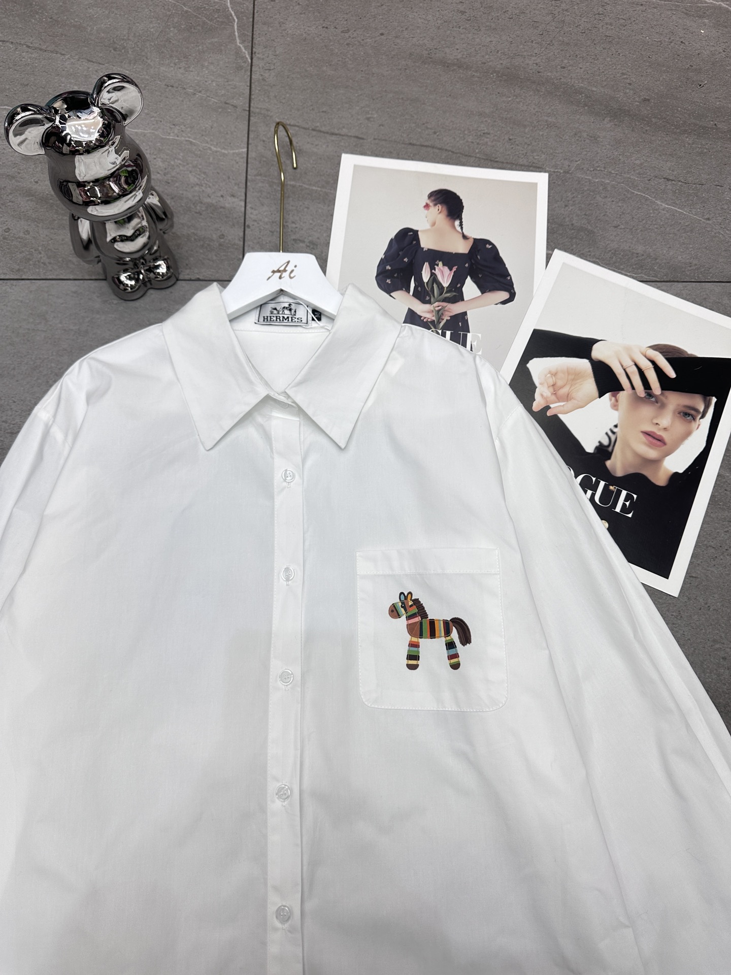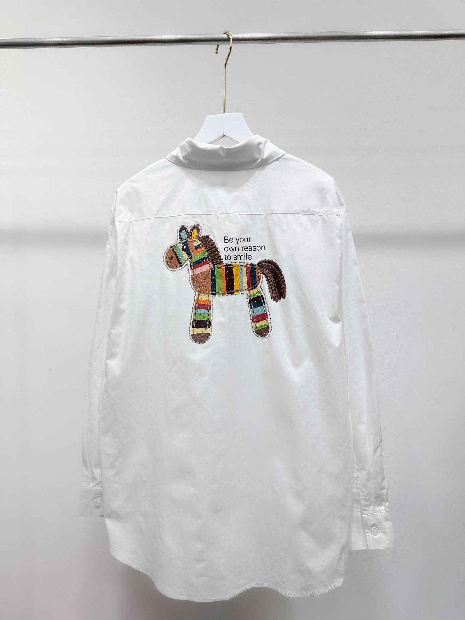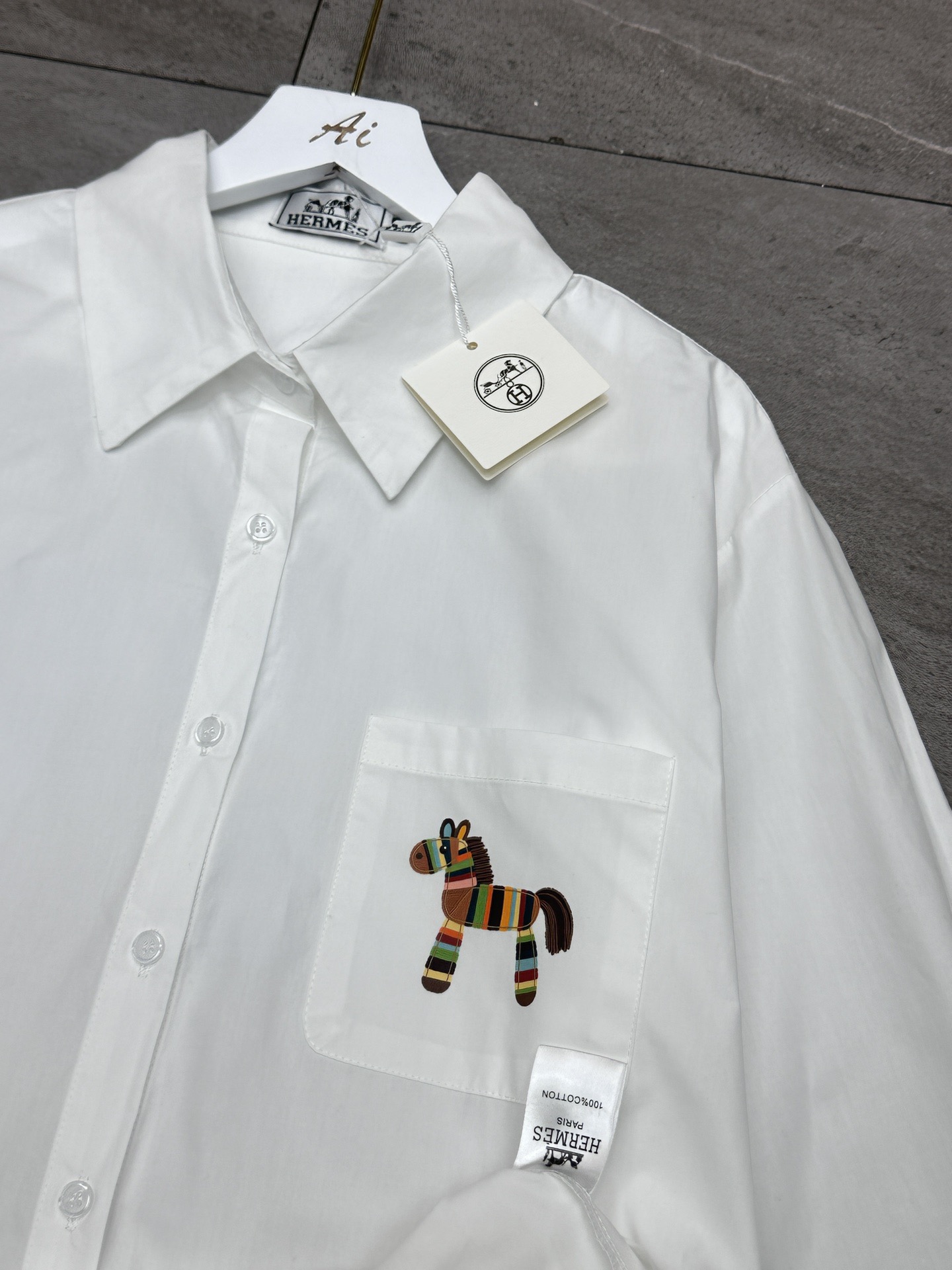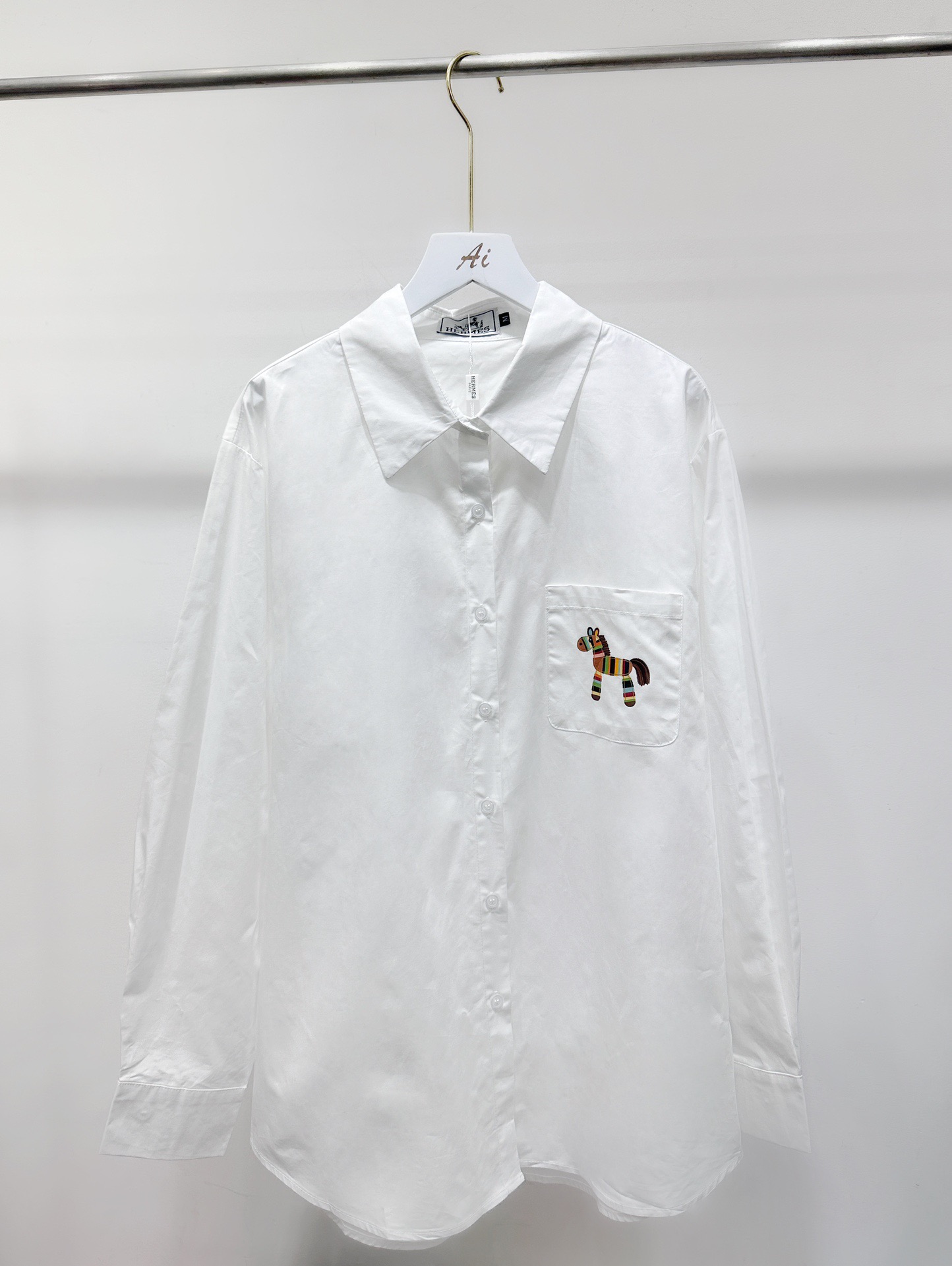 Hermes爱马仕前后彩色马印花烫钻翻领长袖衬衫