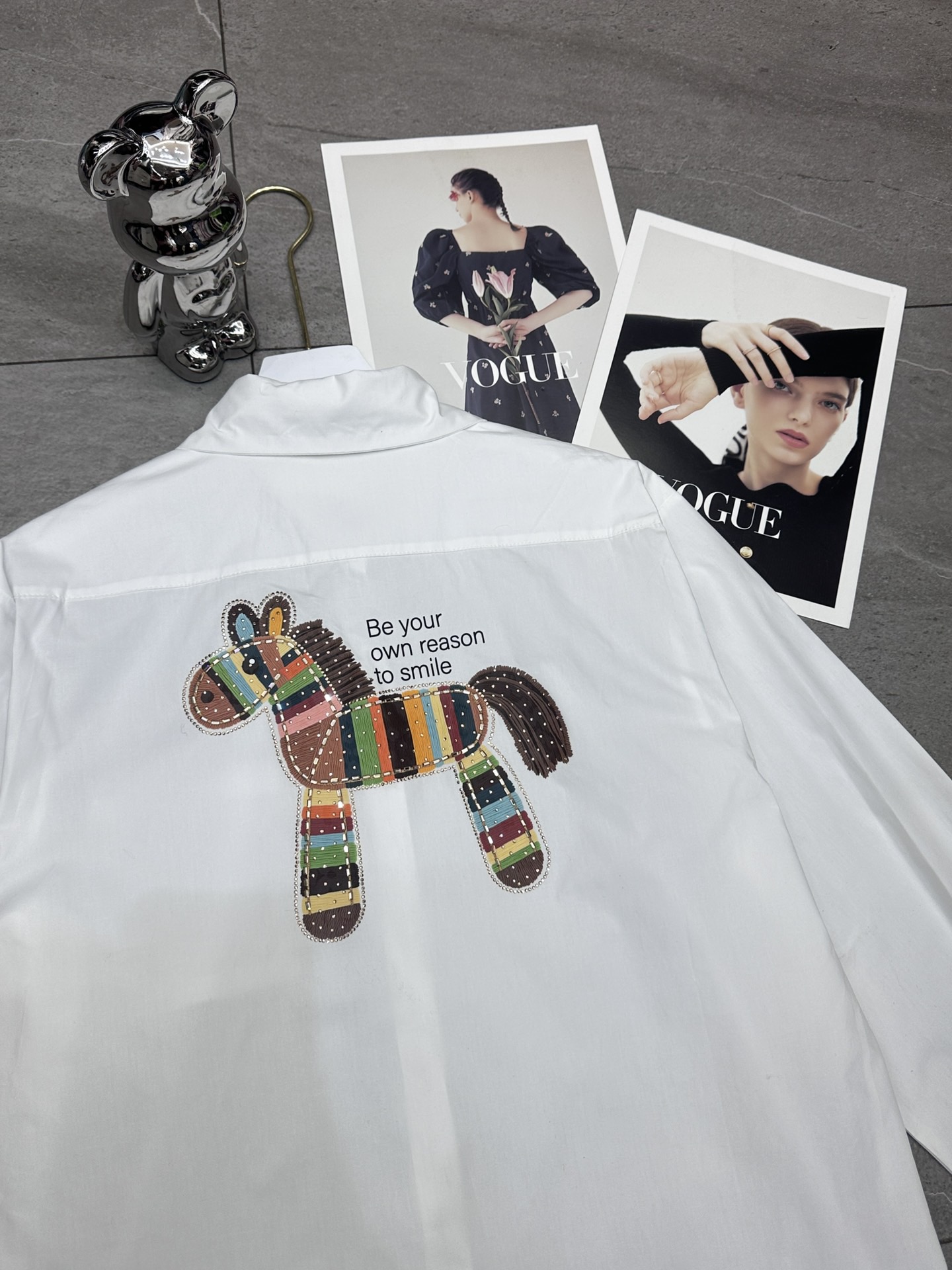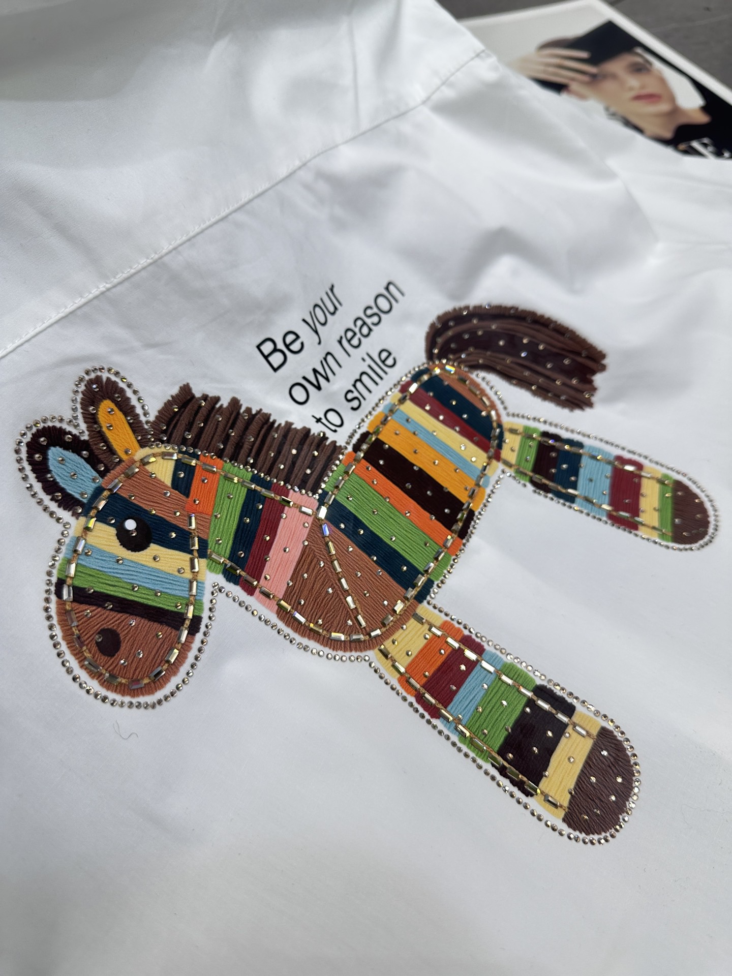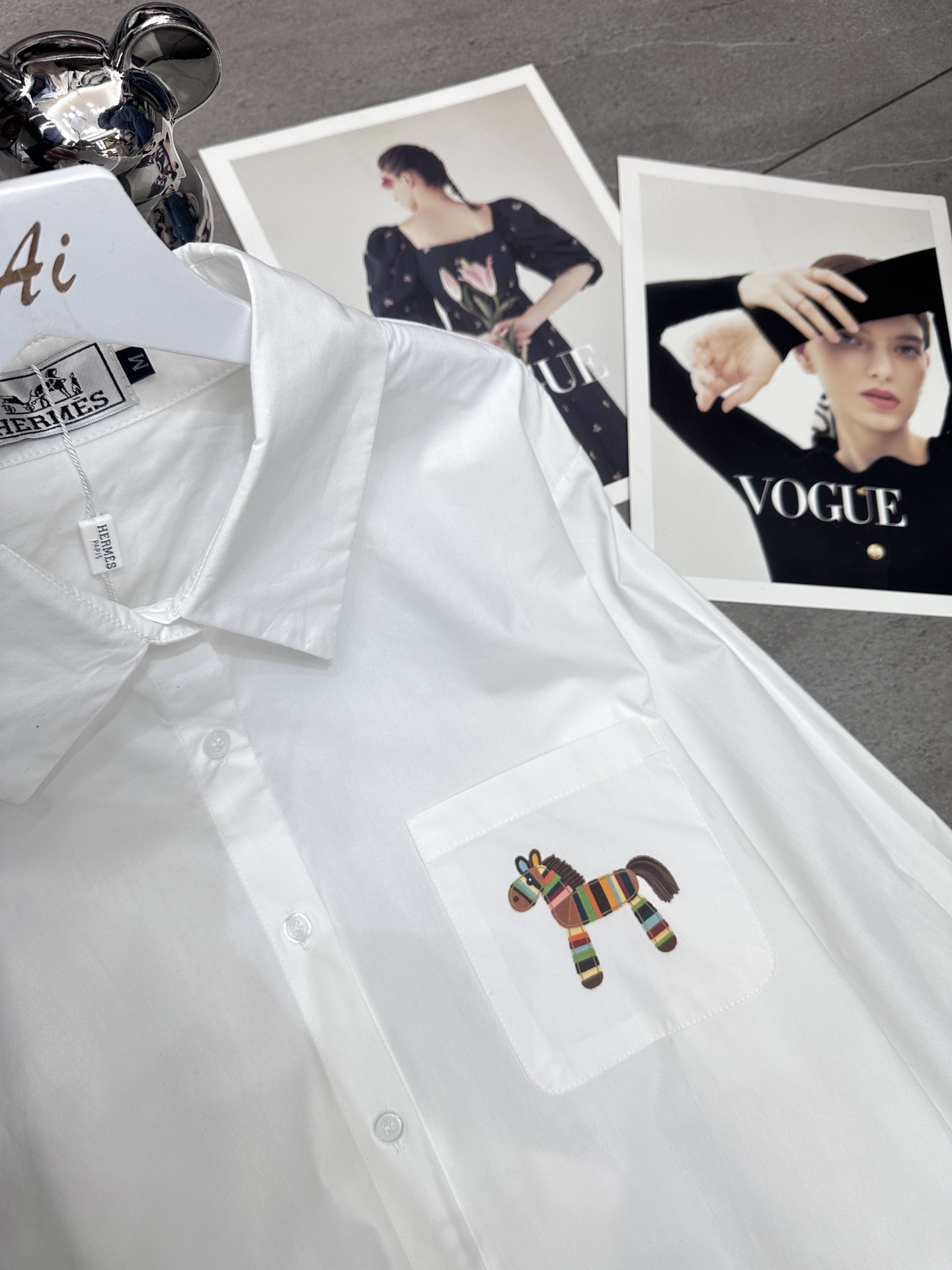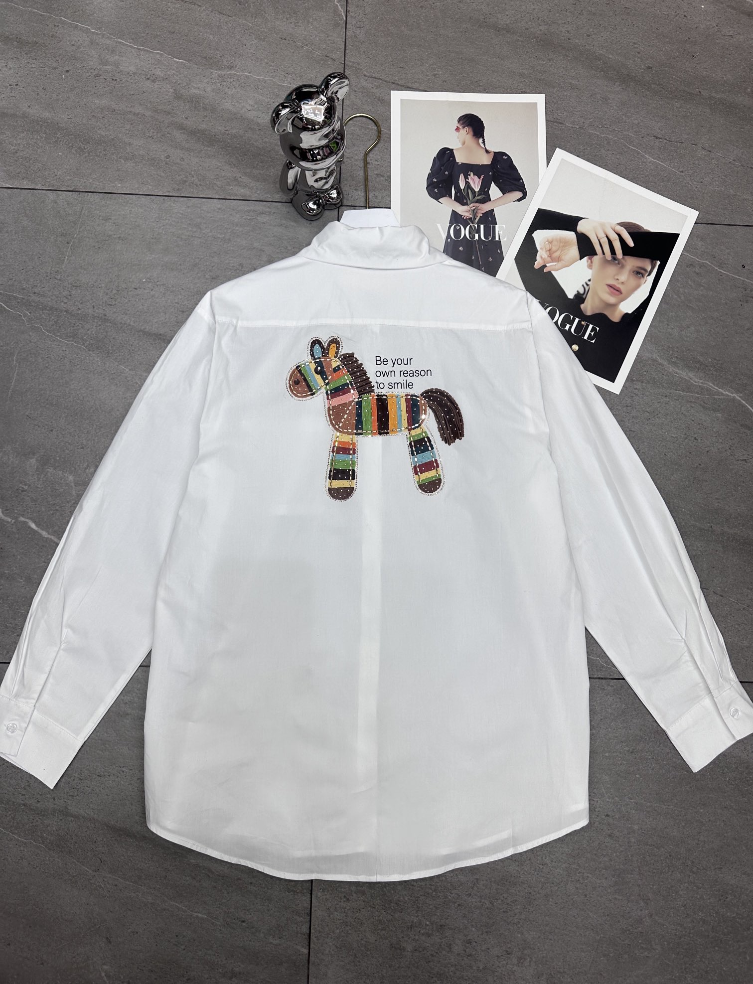 Hermes爱马仕前后彩色马印花烫钻翻领长袖衬衫