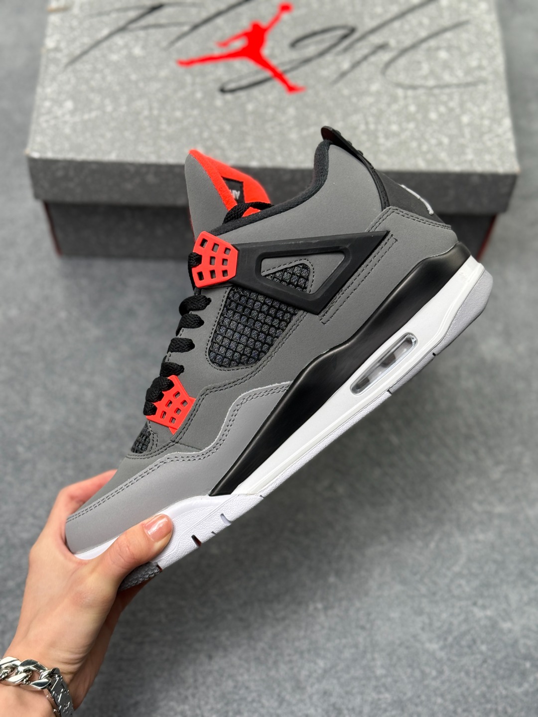 Air Jordan AJ4 Retro 红外线 中帮篮球鞋 原楦原纸板同源开发 完美呈现乔4的版型 内侧正确双色网格 还原细节 正确气垫颜色 正确网格工艺 正确拉帮工艺 全鞋原装材料制作 原档案原模具打造 货号 DH6927 061 尺码 36 48