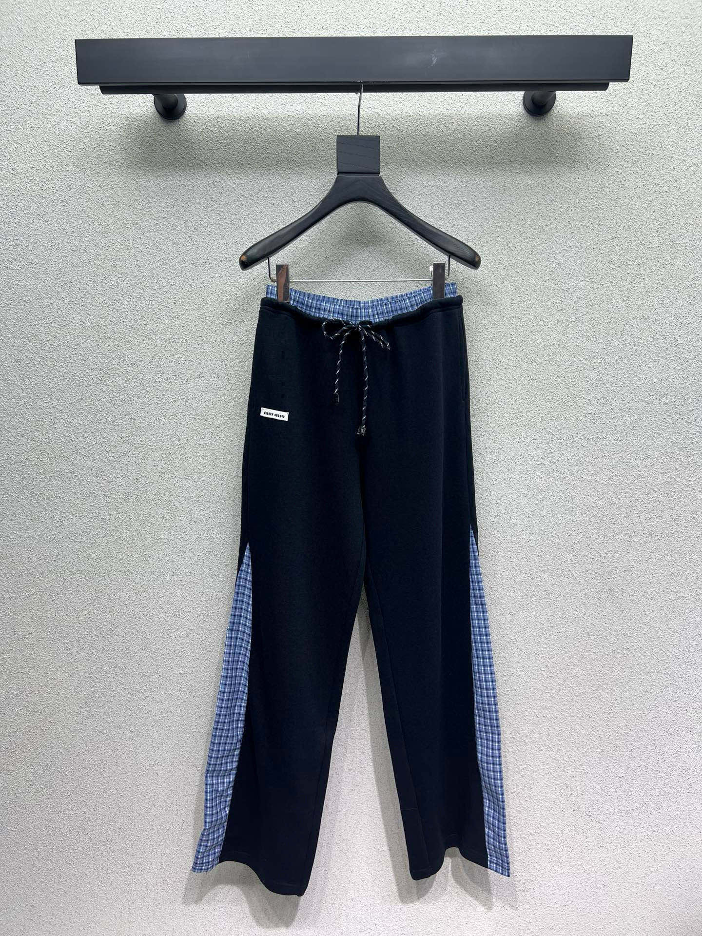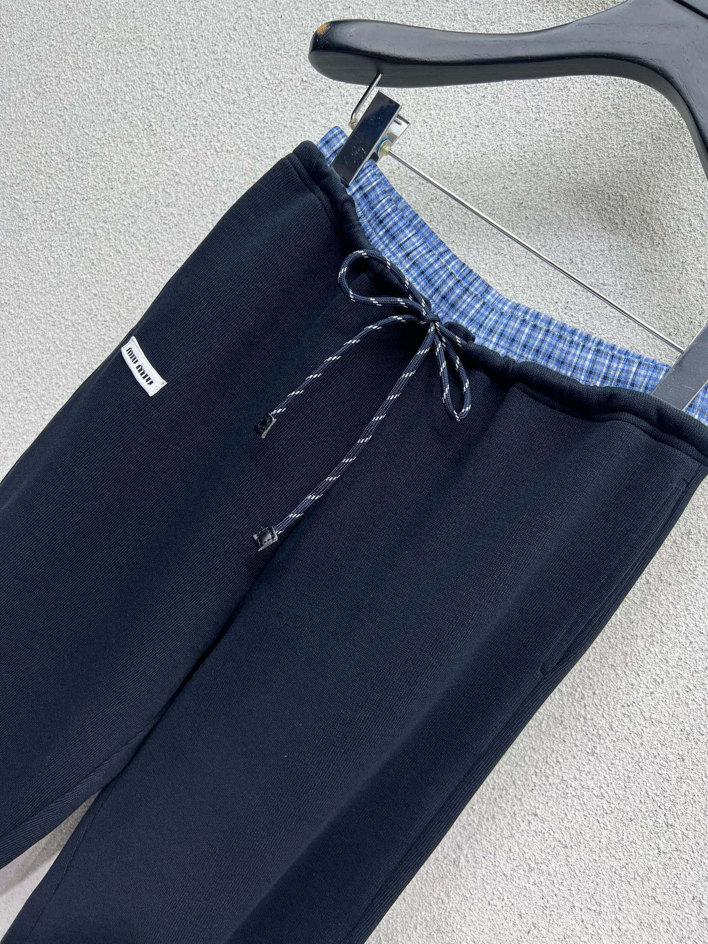 Miumiu缪缪定制字母小标格子拼接定制双头拉链连帽外套抽绳松紧腰长裤休闲套装