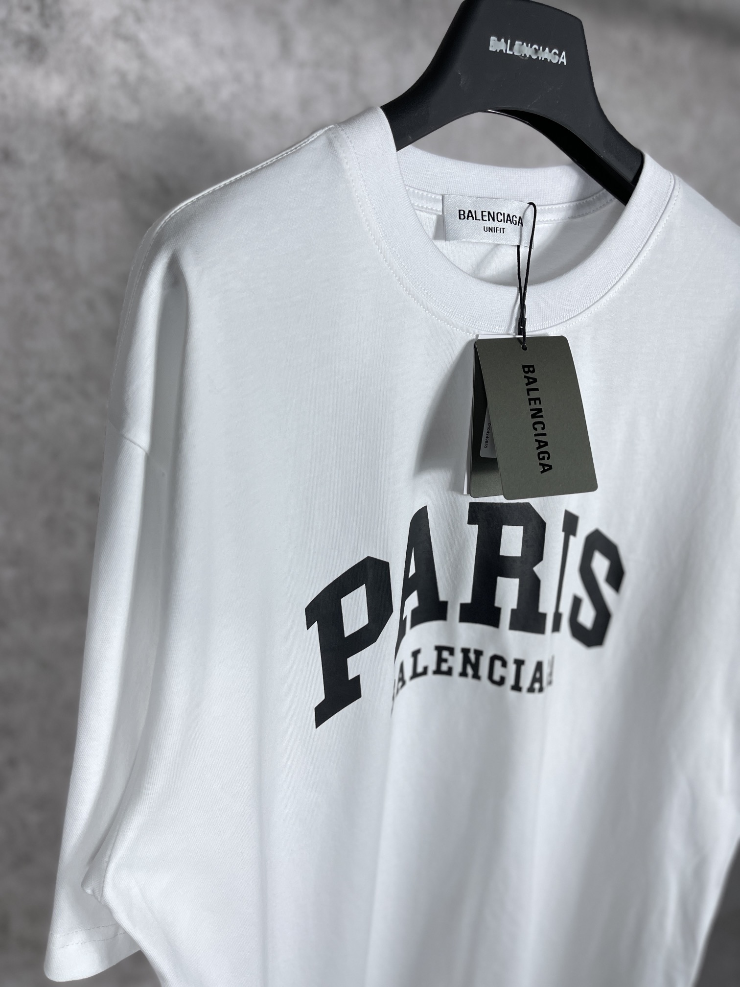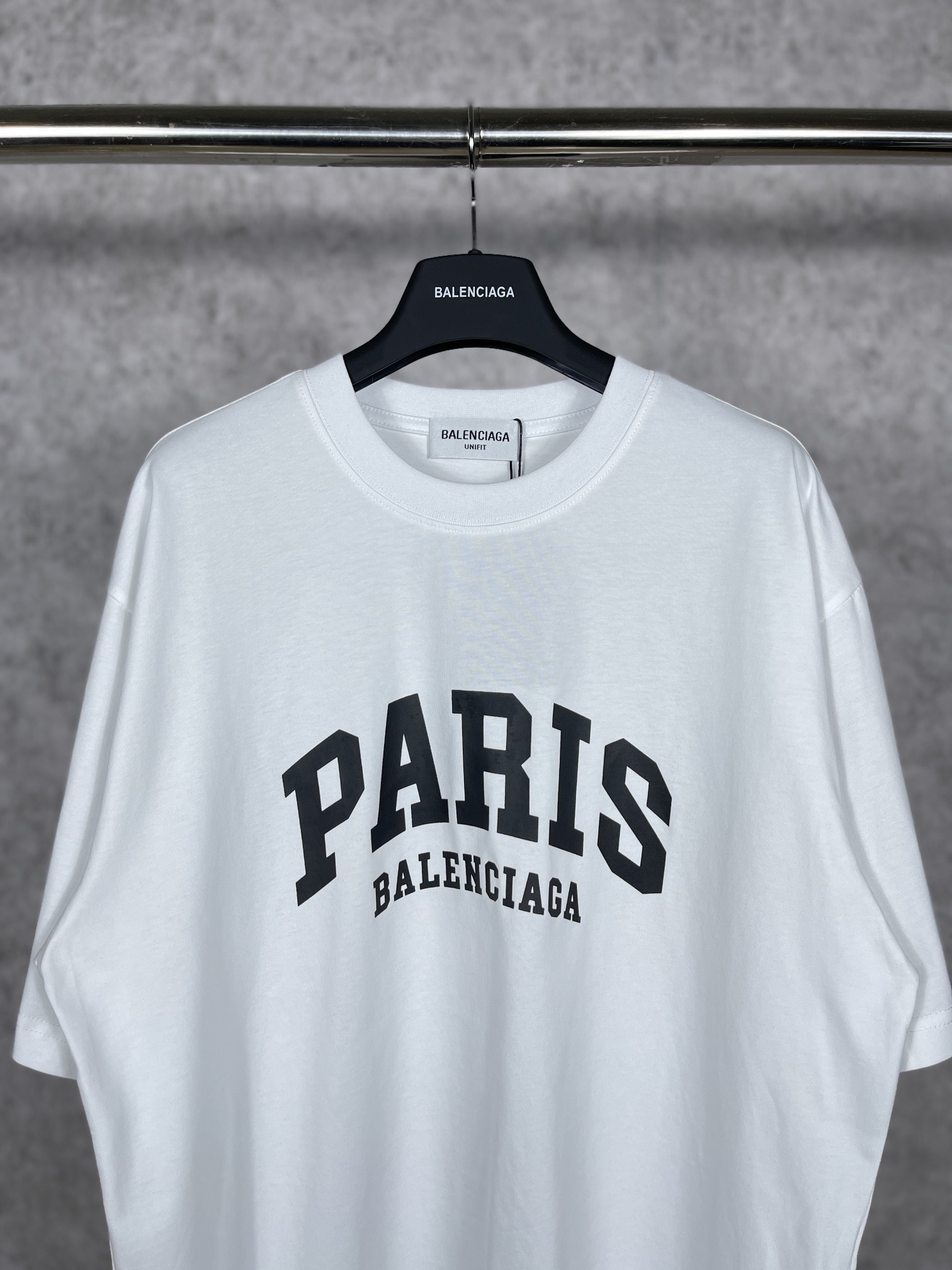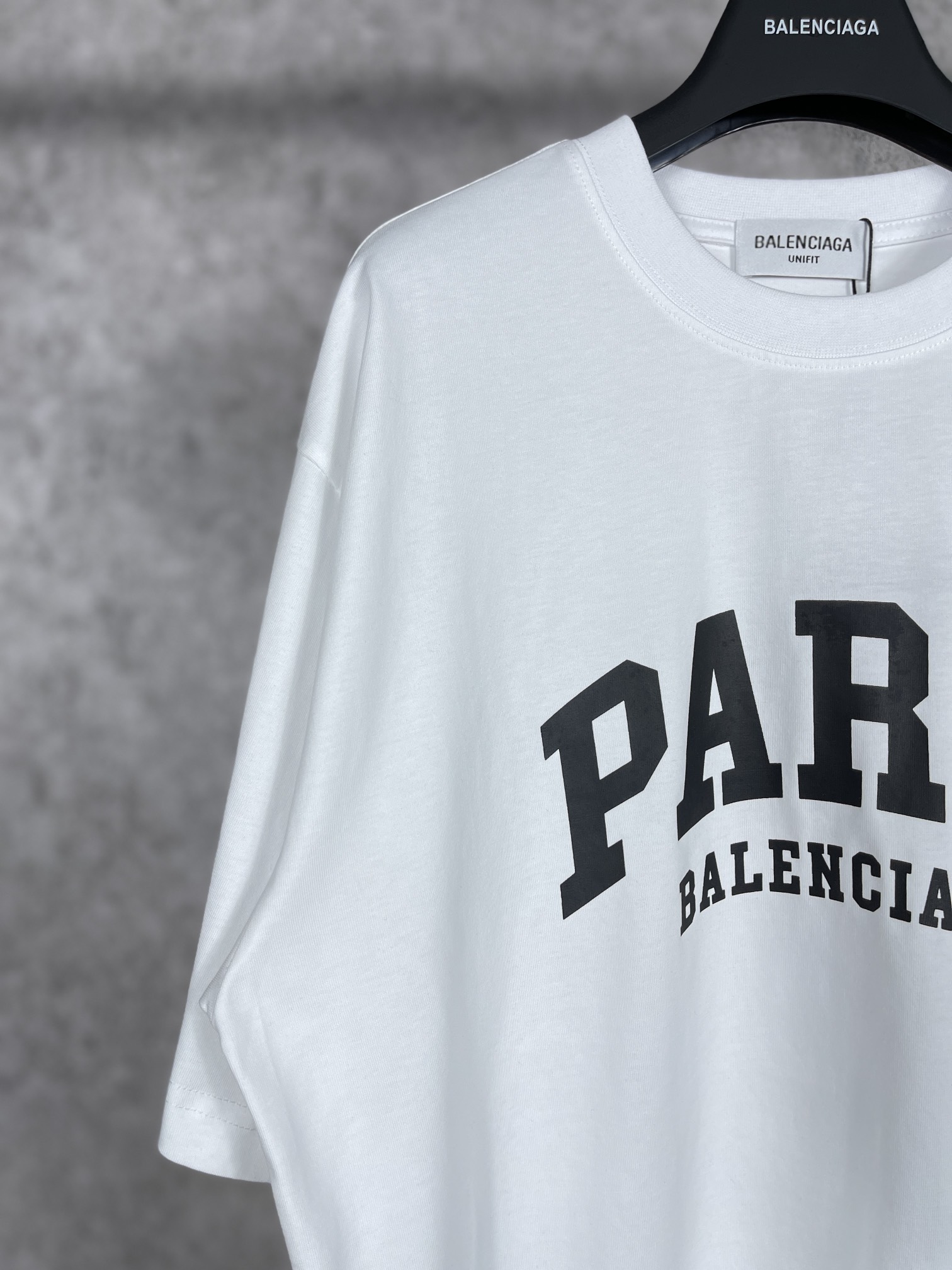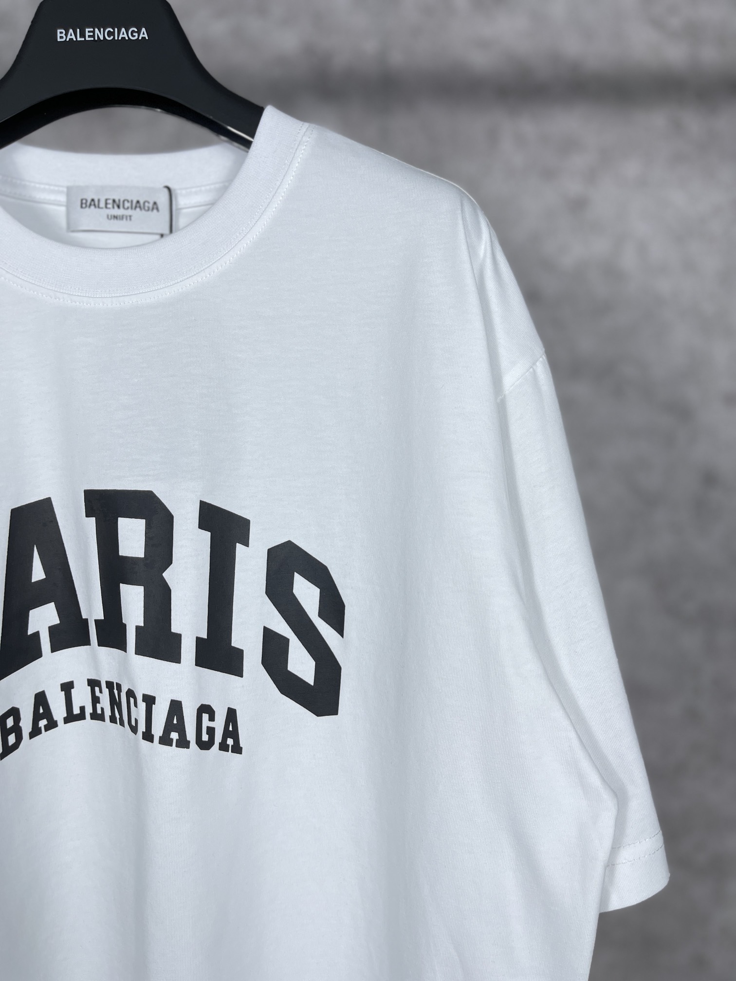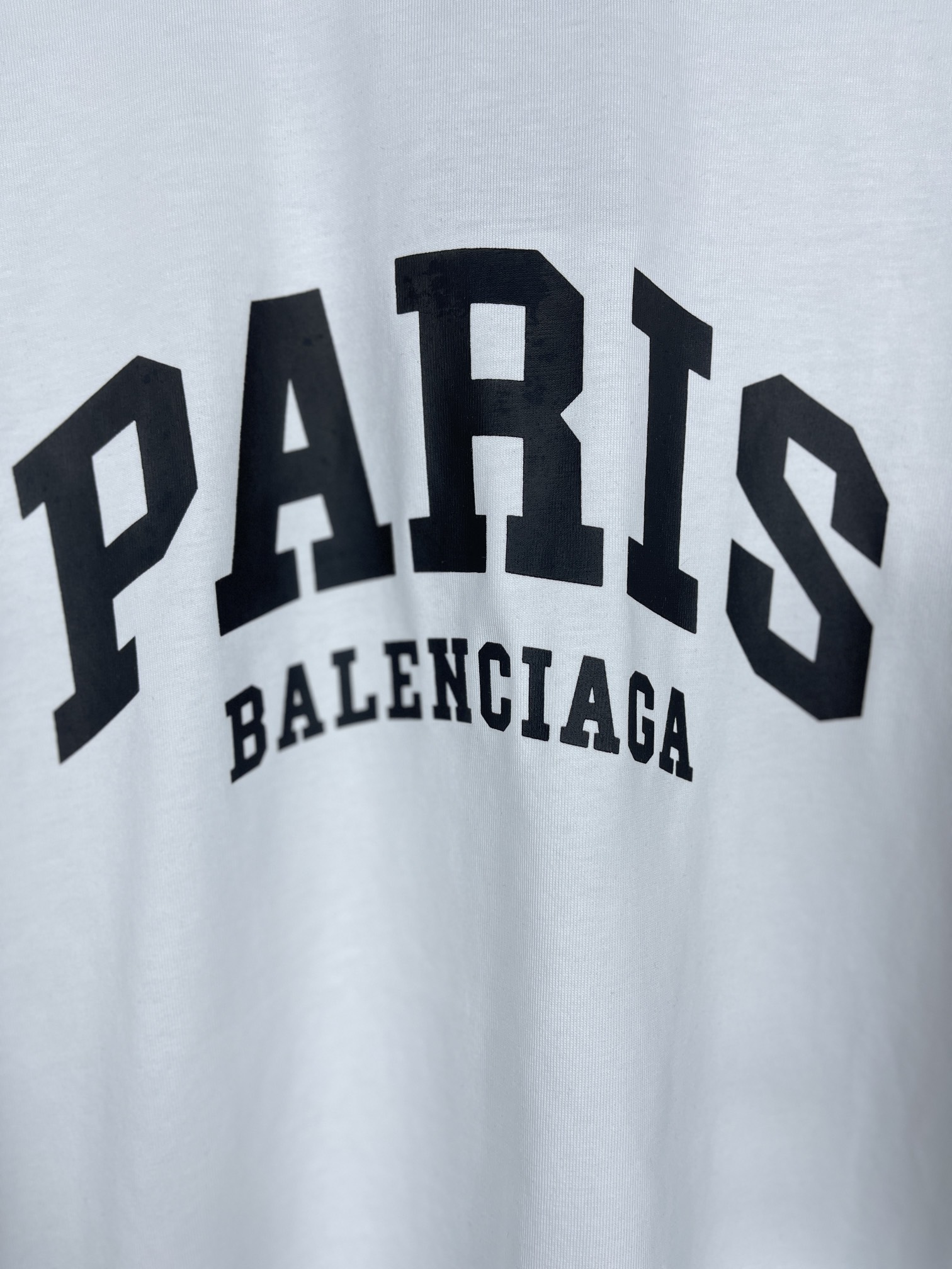 实拍图 顶级版本 官网品质 BALENCI GA 巴黎 前印PARIS短袖T恤 砖柜同步 面料采用巴黎ZP定织定染全棉双纱紧密棉 克重260克 布面干净 布纹清晰 柔软舒适 螺纹釆用定染无色差 经典LOGO采用环保进口材料印花 精密印花网板 字母清晰 效果立体 还原砖柜 巨别市场通货 欢迎对比 版型釆用OS宽松落肩版型 男女同款