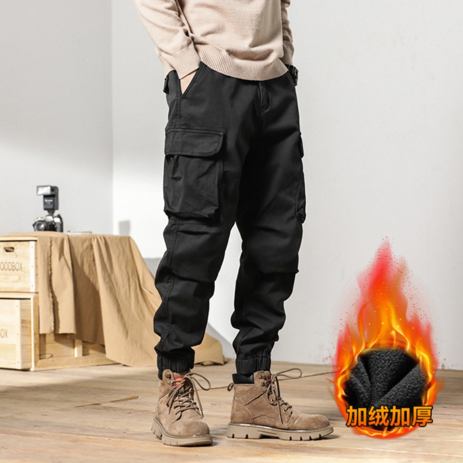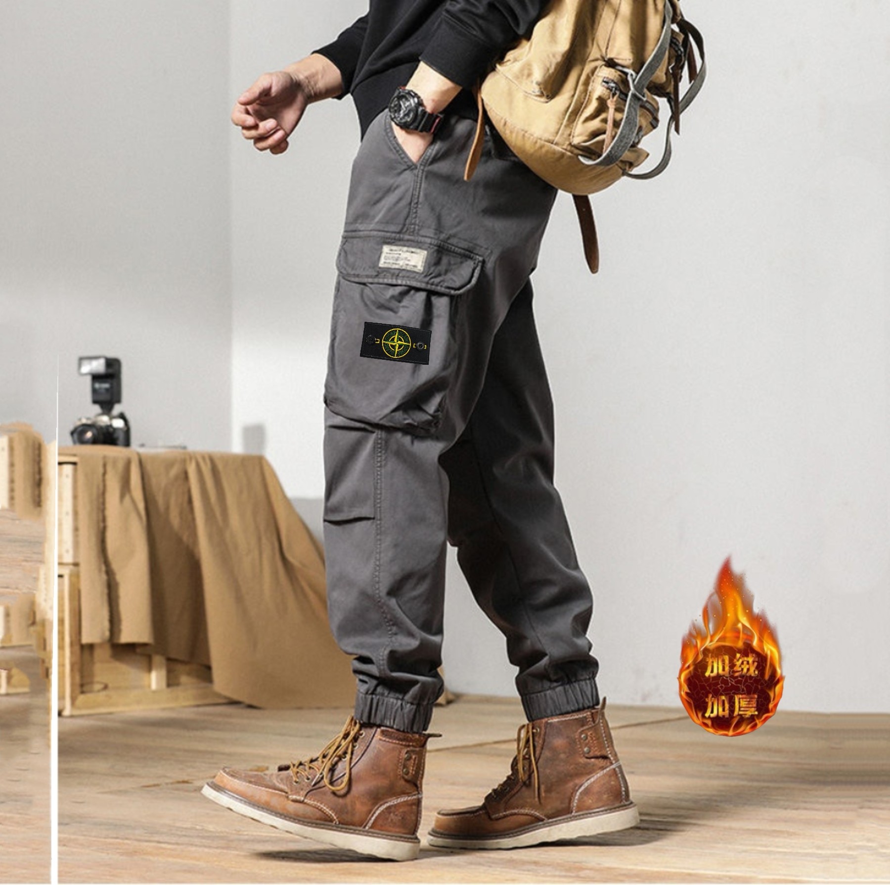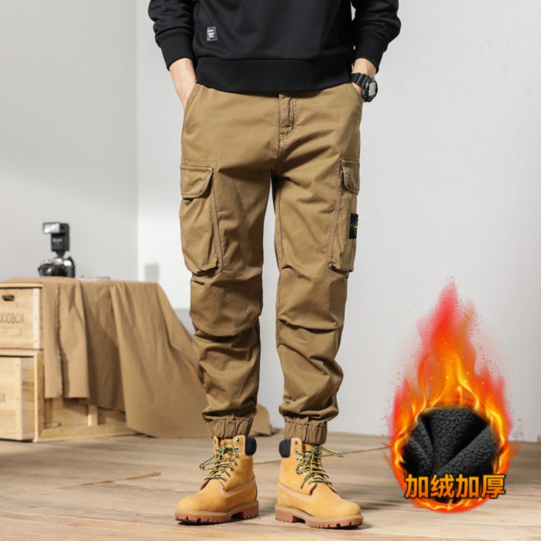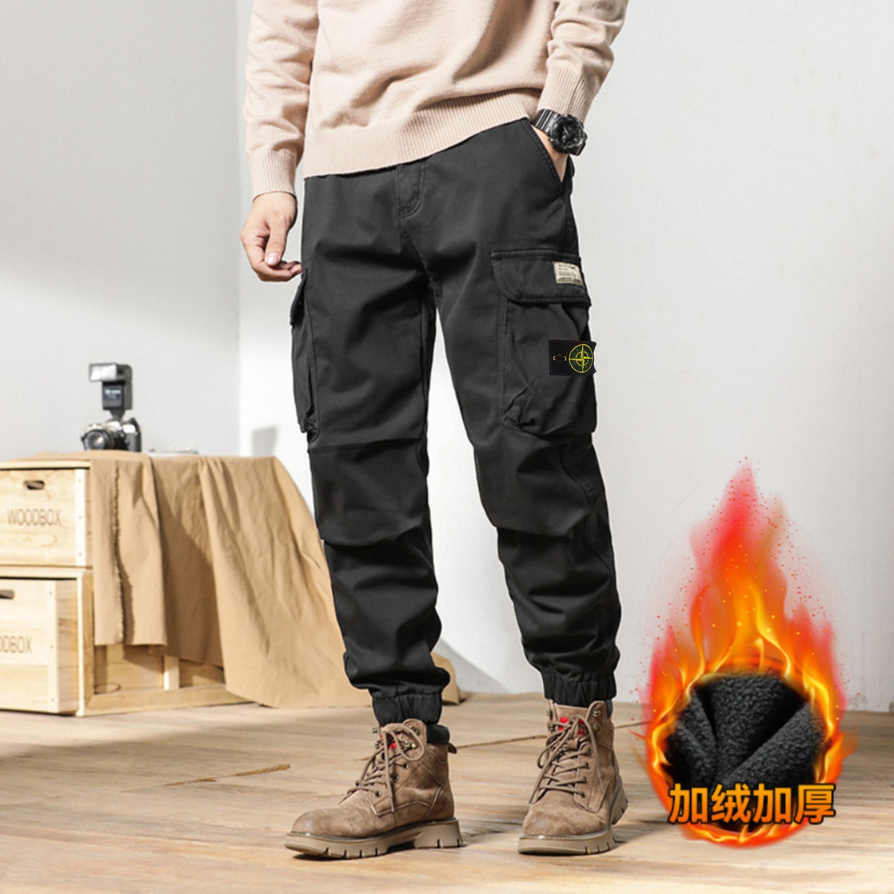 STONE ISLAND石头岛 加绒 高品质棉织 美式潮牌复古宽松立体大口袋机能束脚加绒工装裤 高街超级爆款