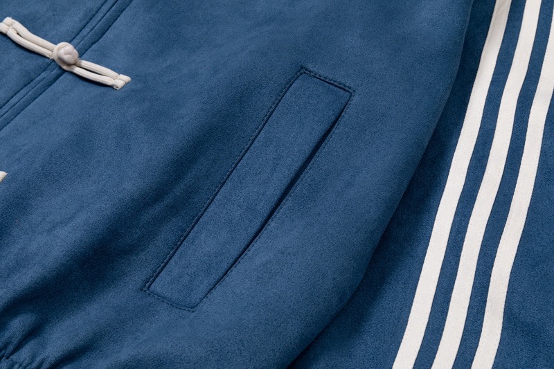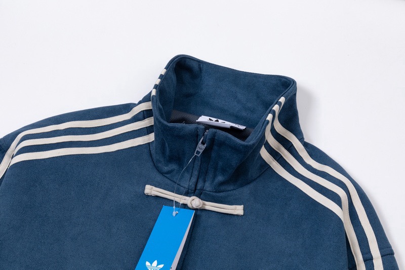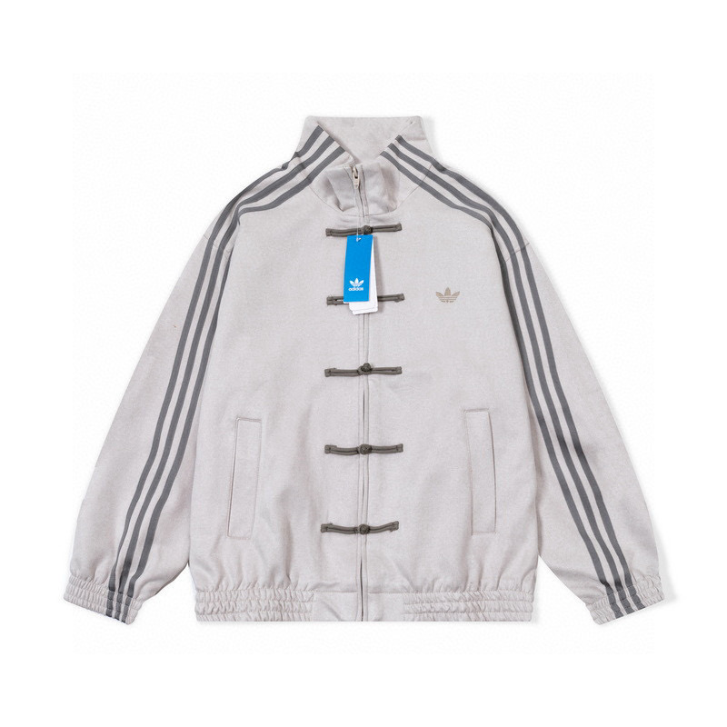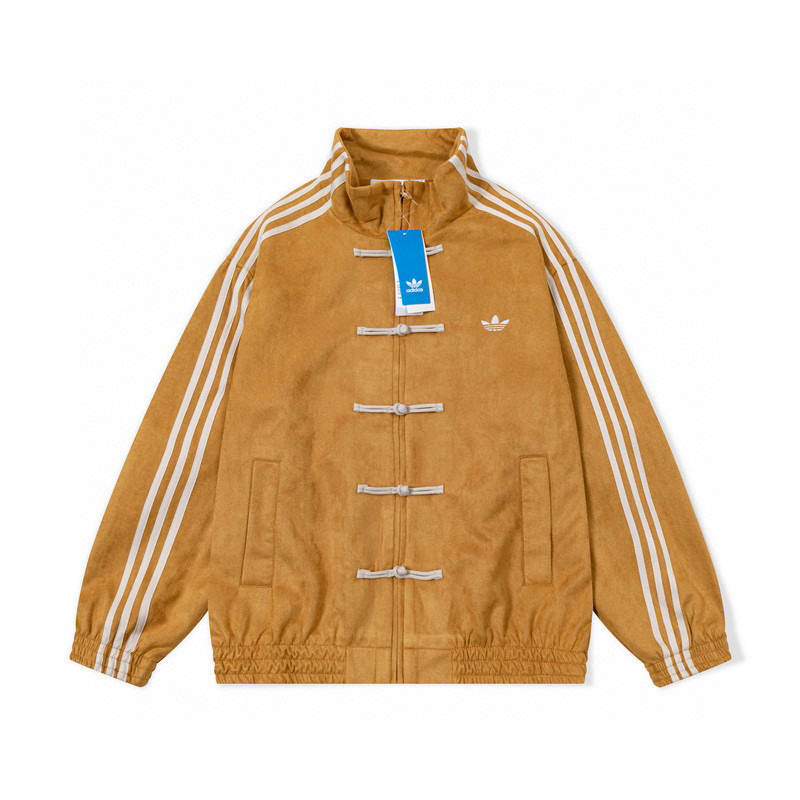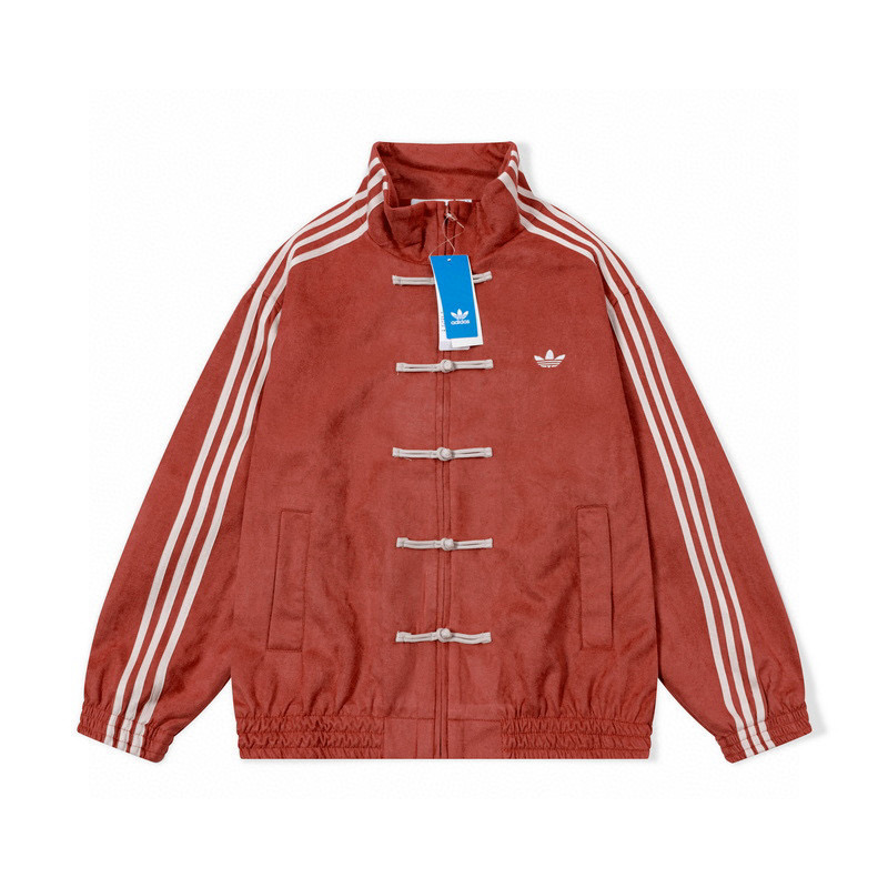 ADIDAS 阿迪达斯三叶草 中国风灯芯绒三道杠唐装盘扣情侣立领夹克外套 顶级原单版本