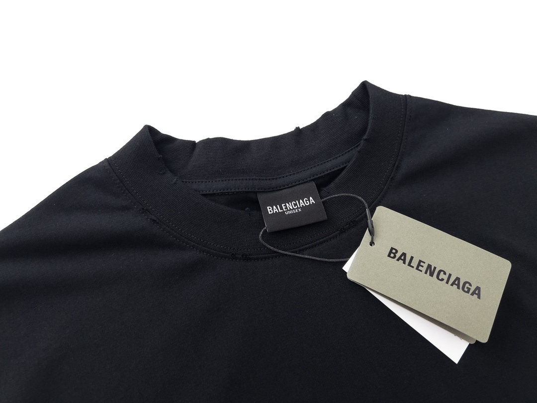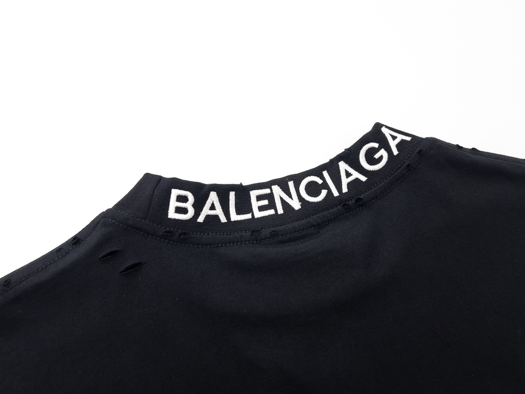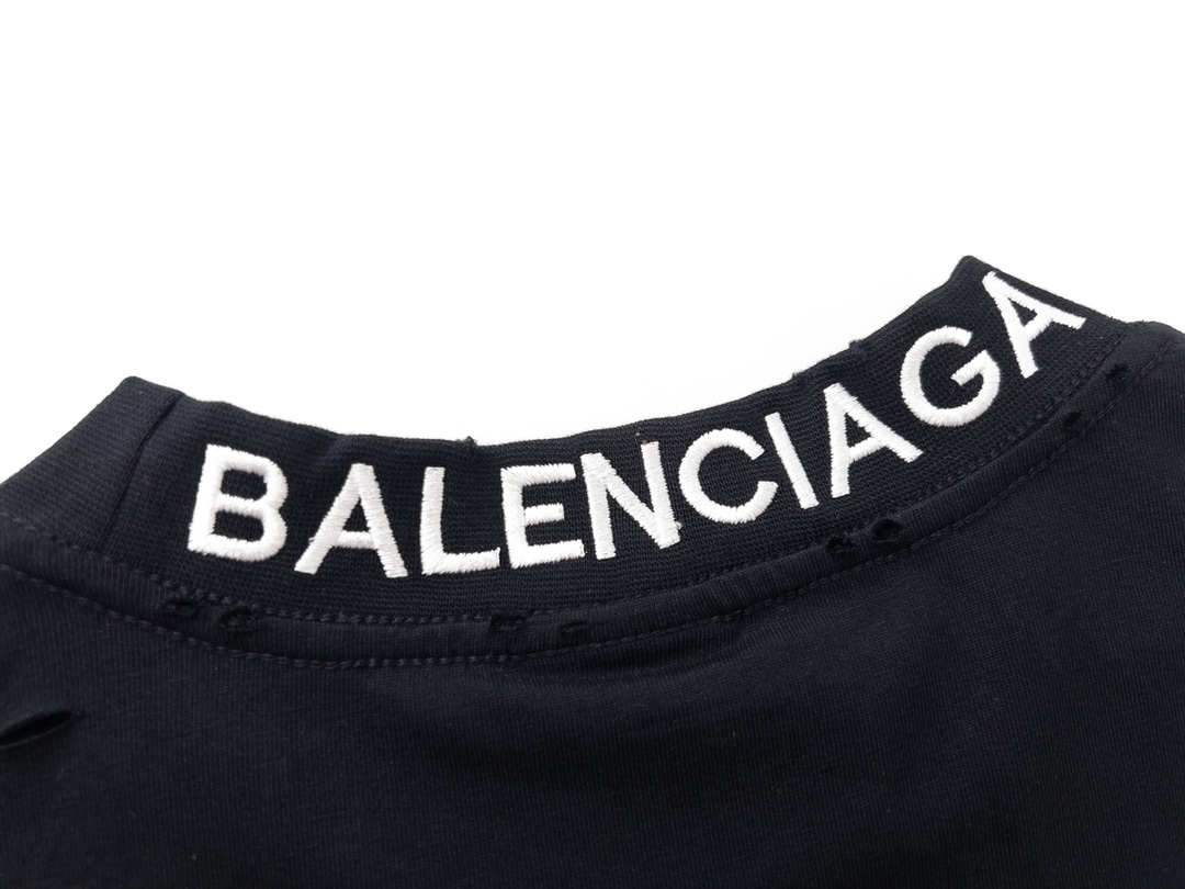 细节图 顶级版本 官网品质 BALENCI GA 巴黎 后领罗纹刺绣字母 成衣复古磨烂做旧短袖T恤 砖柜同步