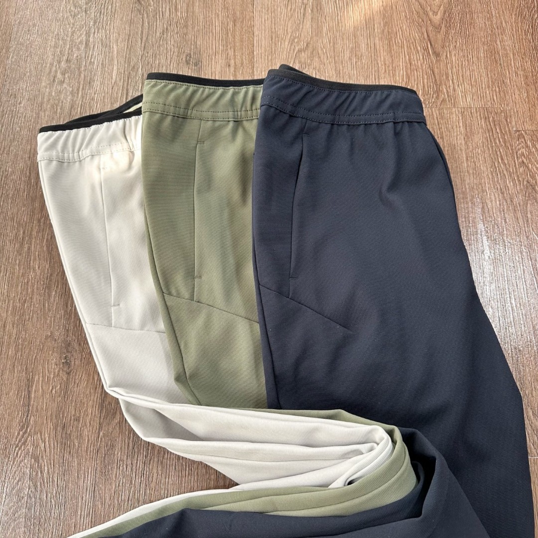 款式简单大牌 鸟家B1121版型 臀部3d剪裁设计 上腿活动舒适 挺阔有型 腰部带有激光冲孔压胶封口 尼龙松紧调节绳 自由调节 做工精细