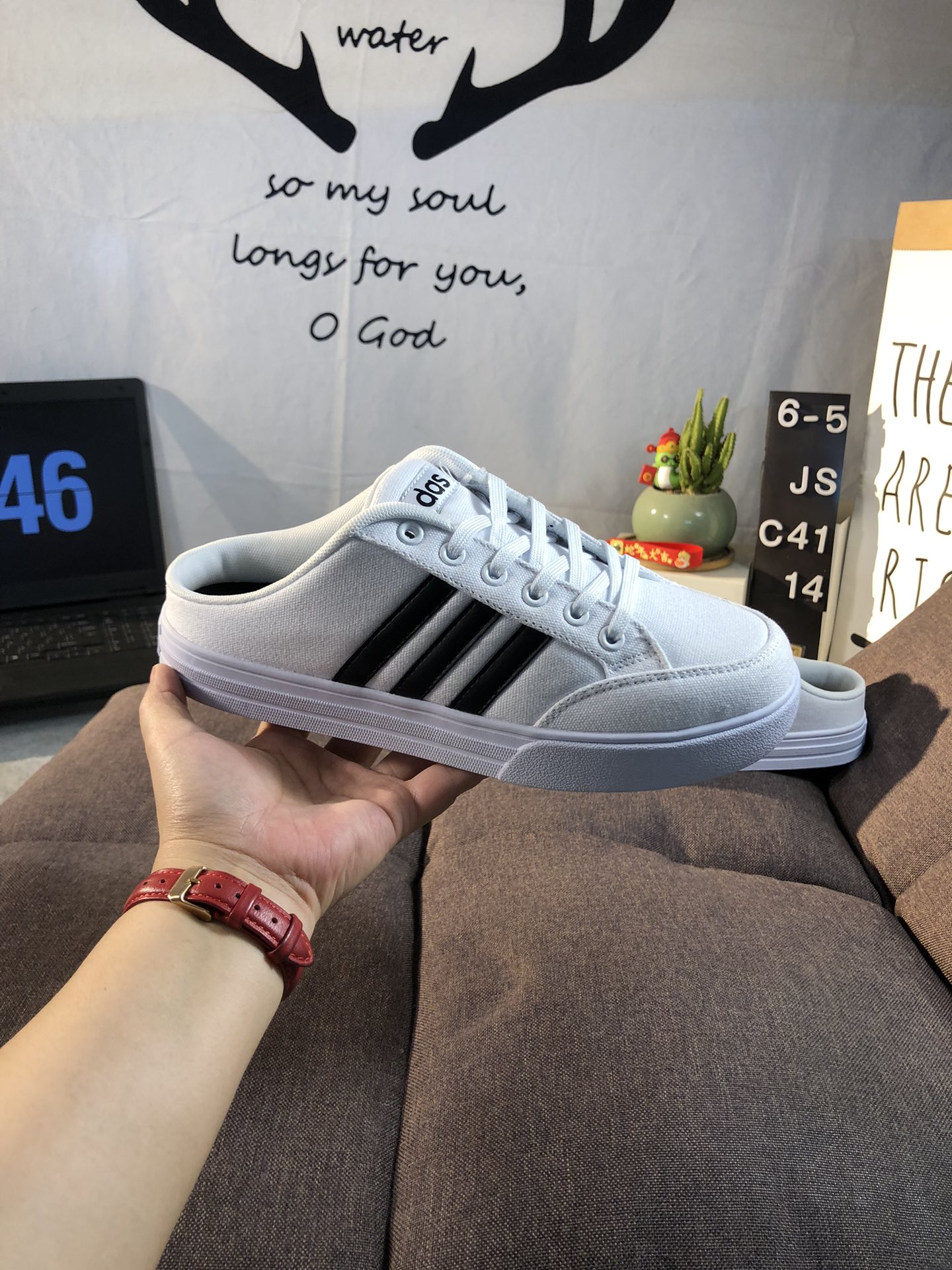 Adidas阿迪达斯VS SET MULE 一脚蹬懒人运动半拖鞋