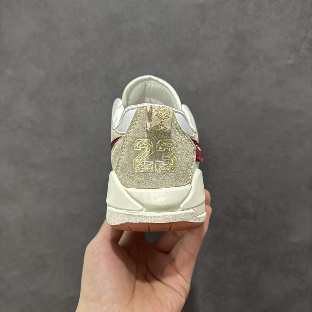 马年限定配色 双层礼盒鞋盒 鞋身整体采用双层白色网眼设计 搭配灰色翻毛皮框架覆盖层 鞋身两侧经典的Swoosh Logo标识以红色毛绒质感点缀 个性十足 鞋头处Jumpman Logo采用红色刺绣呈现 鞋舌标签上以红色Jumpman Logo及白色Flightf字样点缀 米白色中底为鞋子增添了复古气息 搭配足弓支撑设计 时尚有型的同时 舒适感同步在线 后跟Nike Swoosh Logo辅以黄色花纹刺绣呈现 还融合了Air Jordan 1与Air Jordhan 6舒适科技DNA 确保全天候支撑 该鞋款没有复刻初代SBB 而是以区块重构重新演绎新美学 让鞋子拥有复古韵味的同时 还夹杂着现代时尚设计