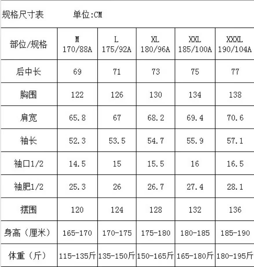 尺码 M 3XL