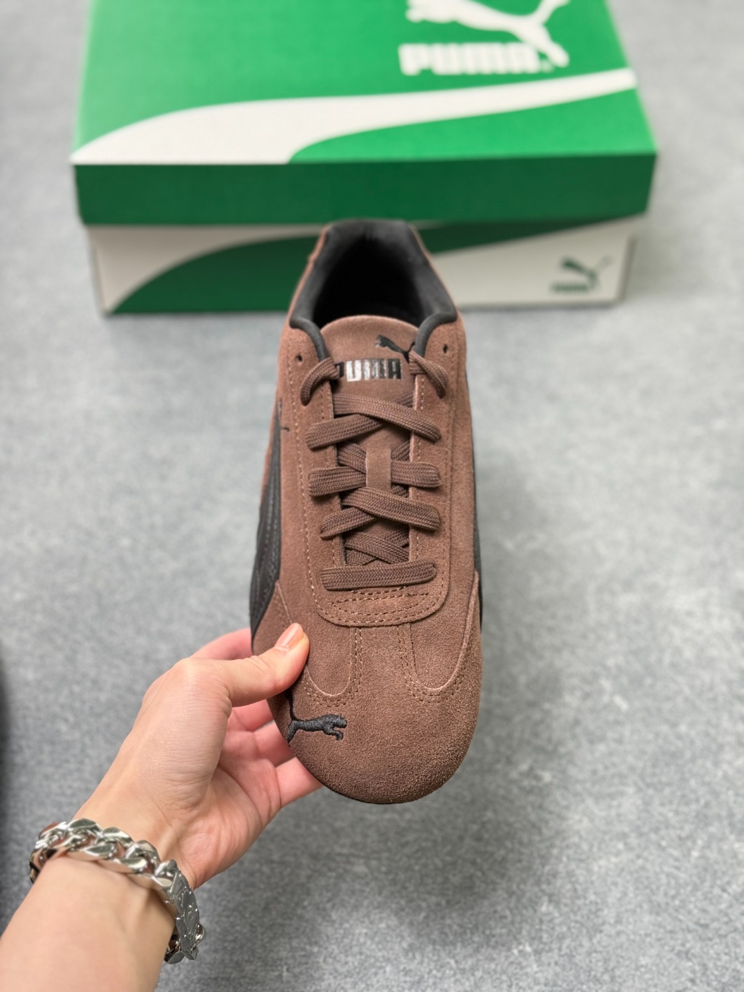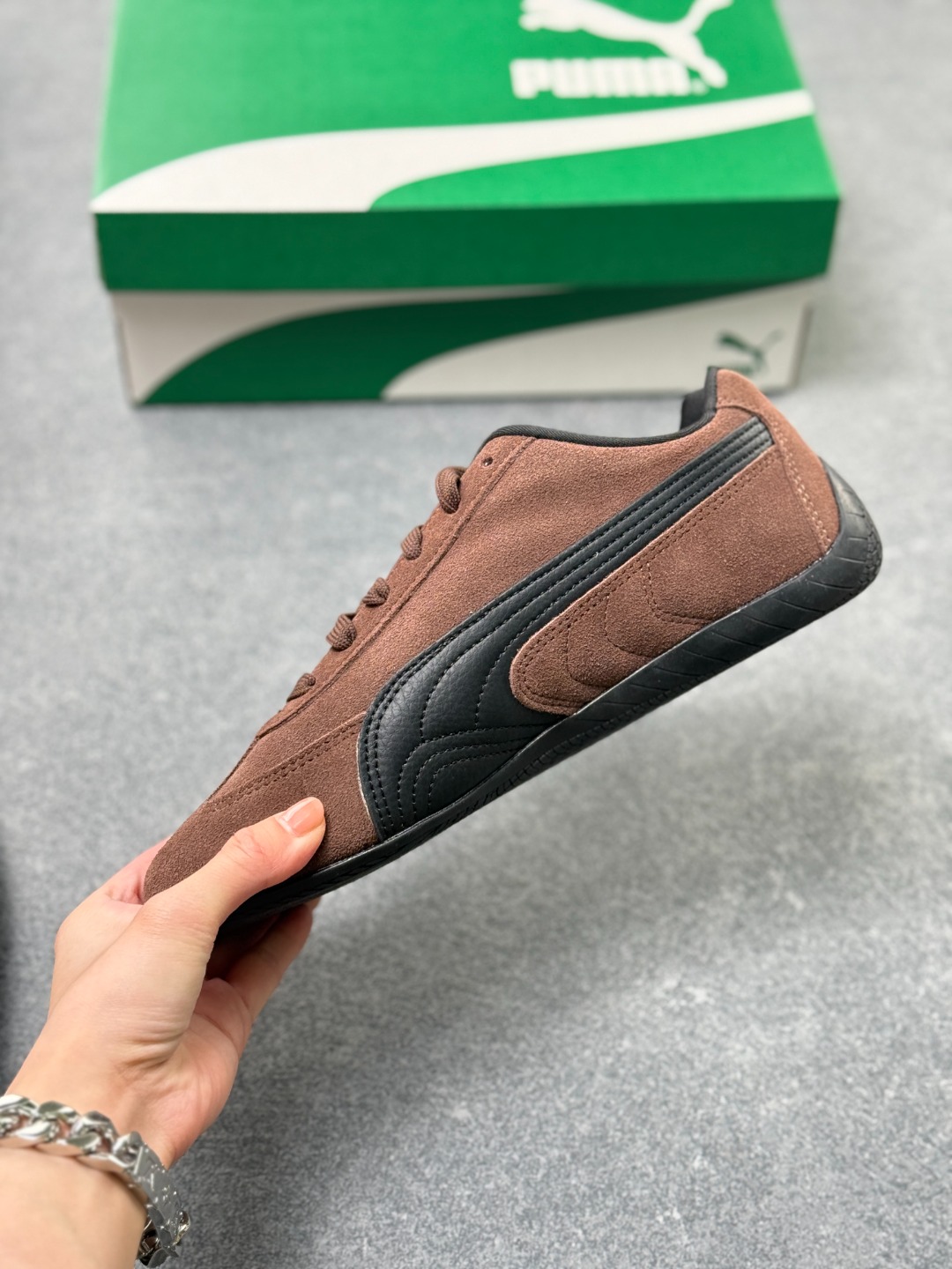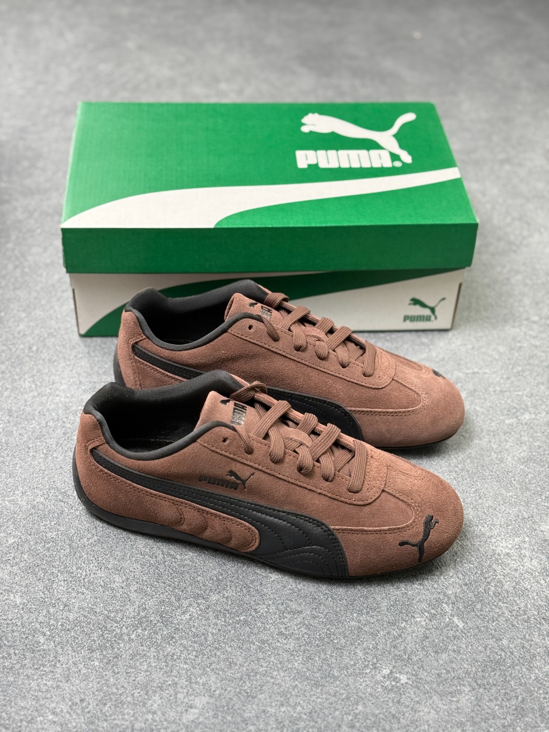 而Speedcat鞋款以亮眼三色条纹元素缀以舒适鞋面