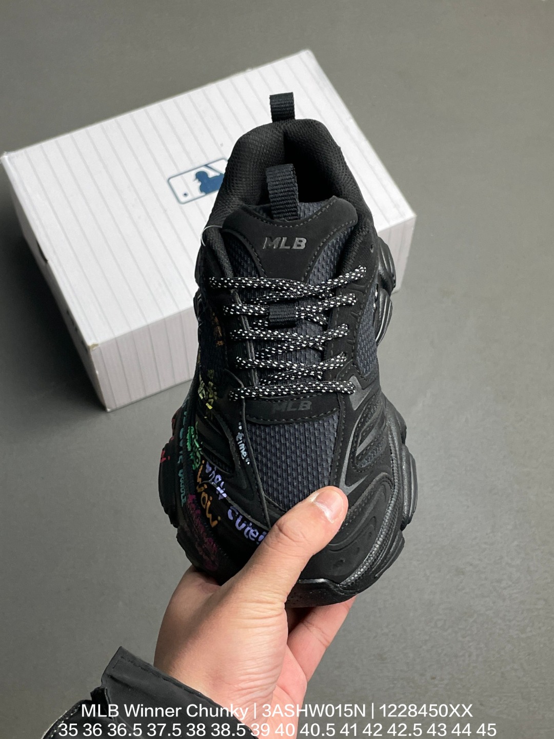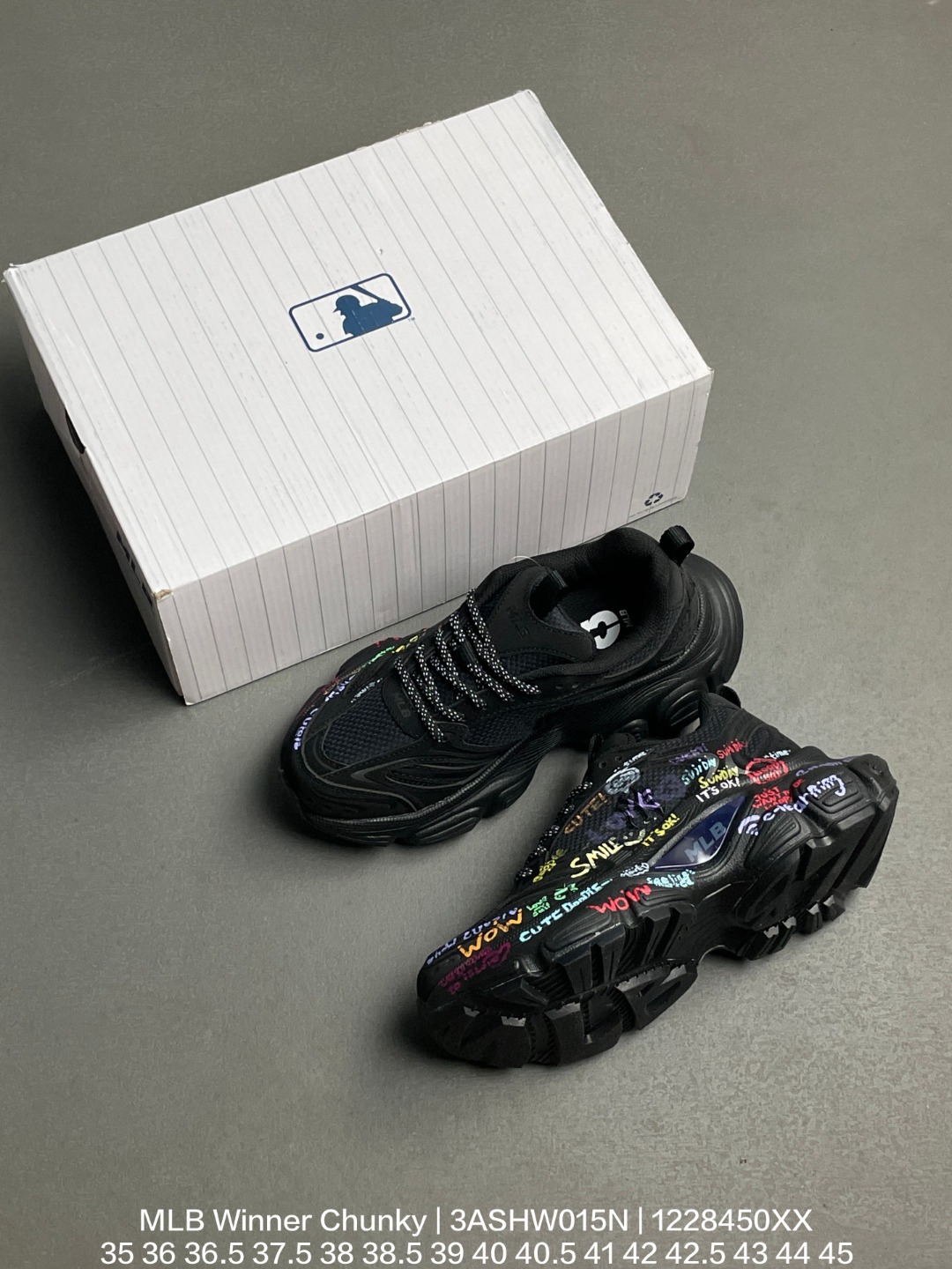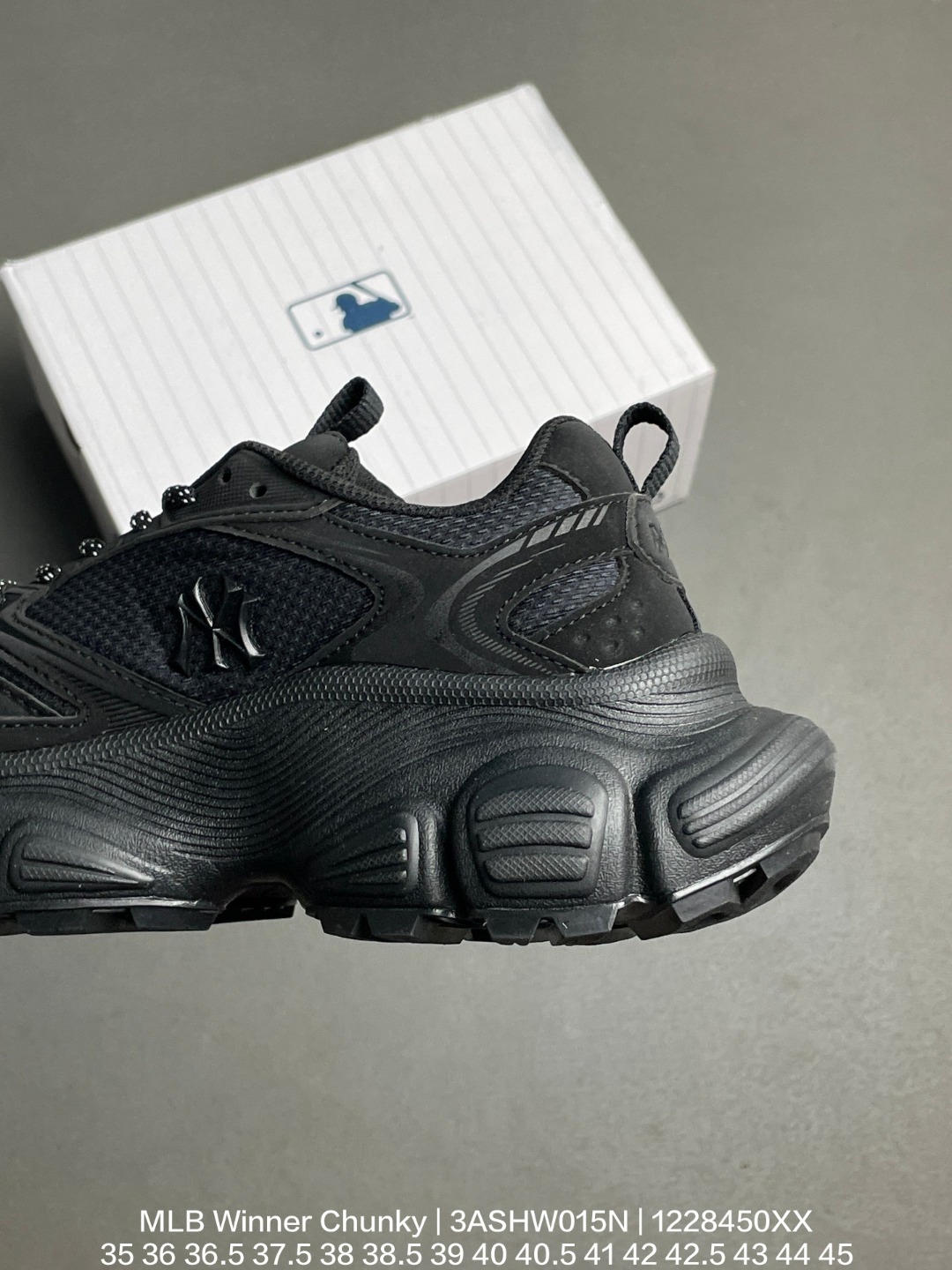 MLB 韩国F F旗下运动品牌 采用优质轻量克重纤维移膜皮革及透气网面鞋面材质 全新开发4 5cm厚度MD缓震组合防滑耐磨橡胶大底潮人皆有MLB 联乘美国榄球洋基队New York Yankees x MLB Winner Chunky 优胜者系列低帮厚底复古老爹风休闲运动慢跑鞋 网布全黑NY 3ASHW015N