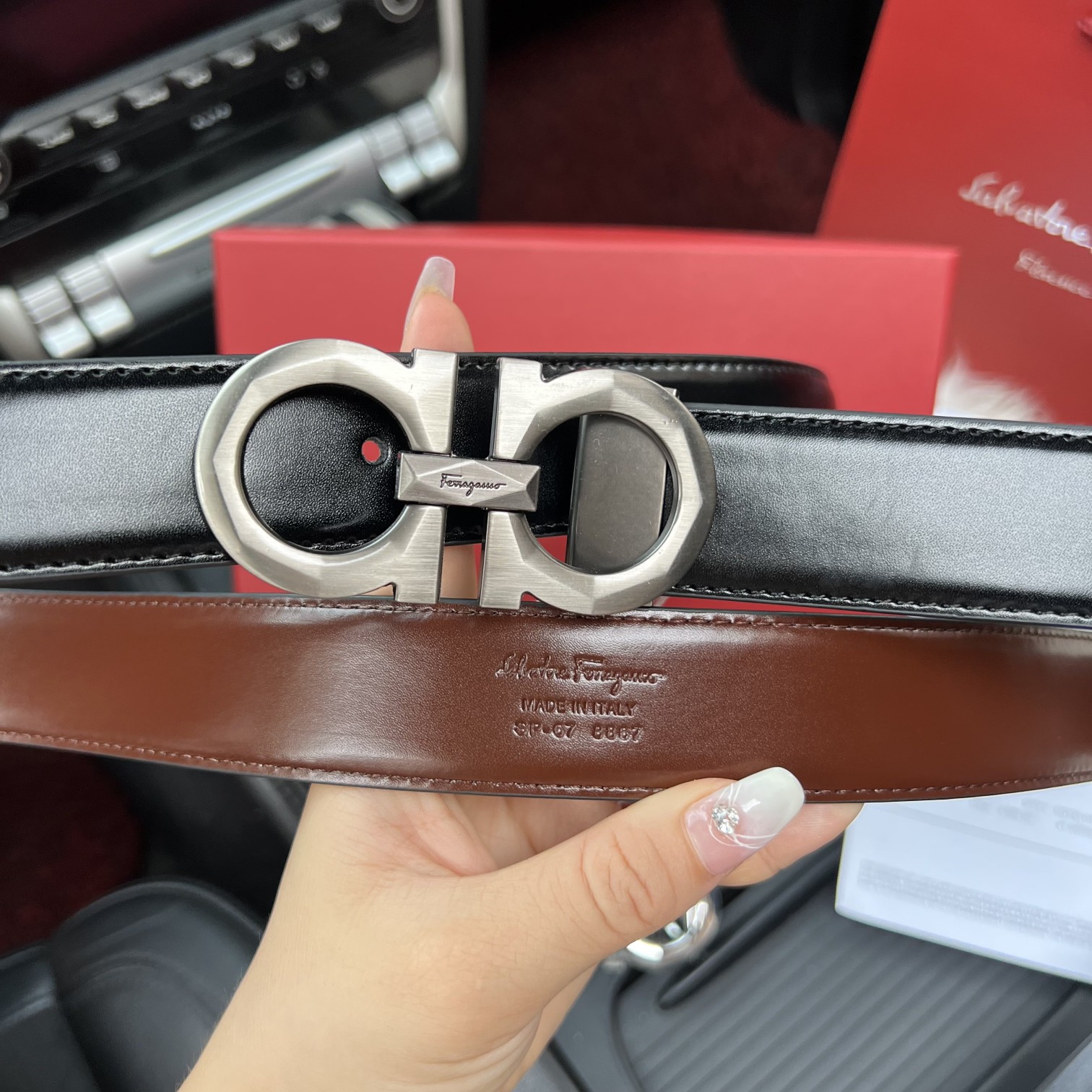 海关扣押 菲拉格慕双头腰带菲拉格慕皮带双扣扣头 礼盒套装 配件齐全 送礼自用都非常好 皮带采用原版牛皮精致油边显档次 搭配原版钢扣不褪色 金属带头采用泳镀抛光 采用激光切割与手绘工艺制作 色泽柔和 精工之作凸显大气磅礴之气质 皮带长度可以随意剪裁 非常方便 礼盒装 皮带 扣头银色 枪色