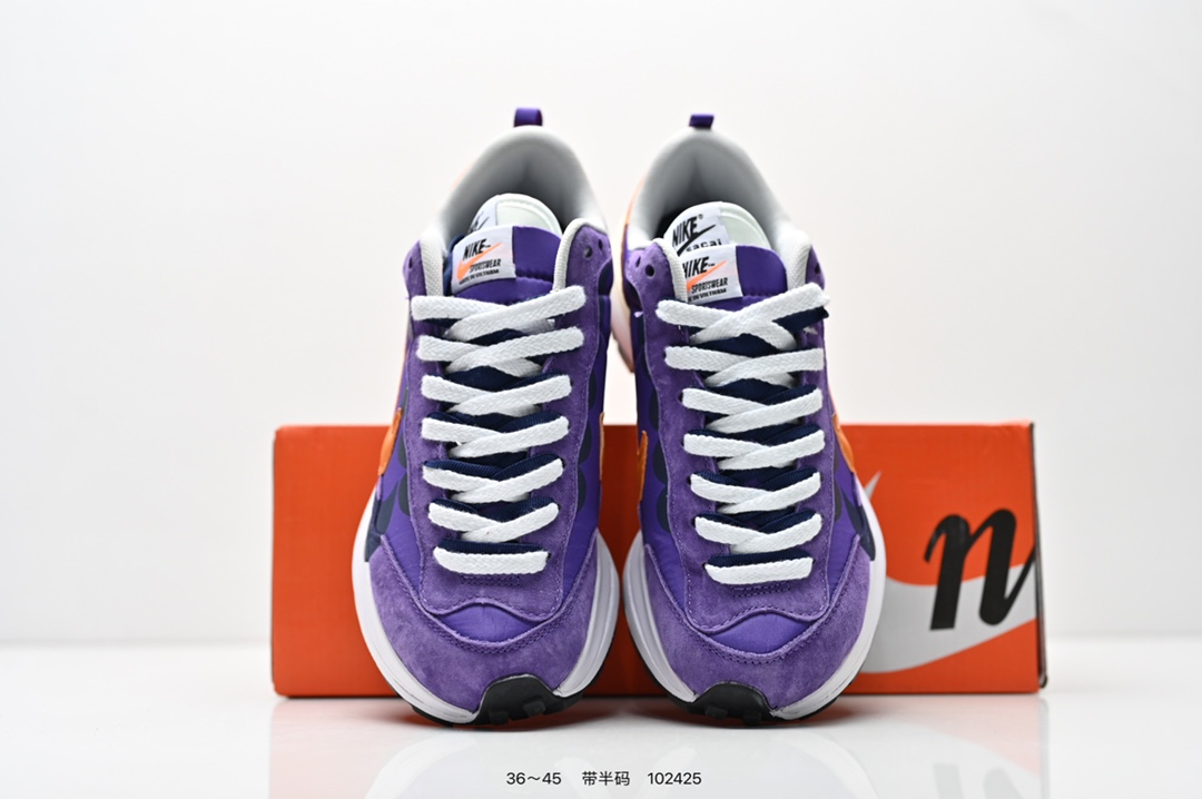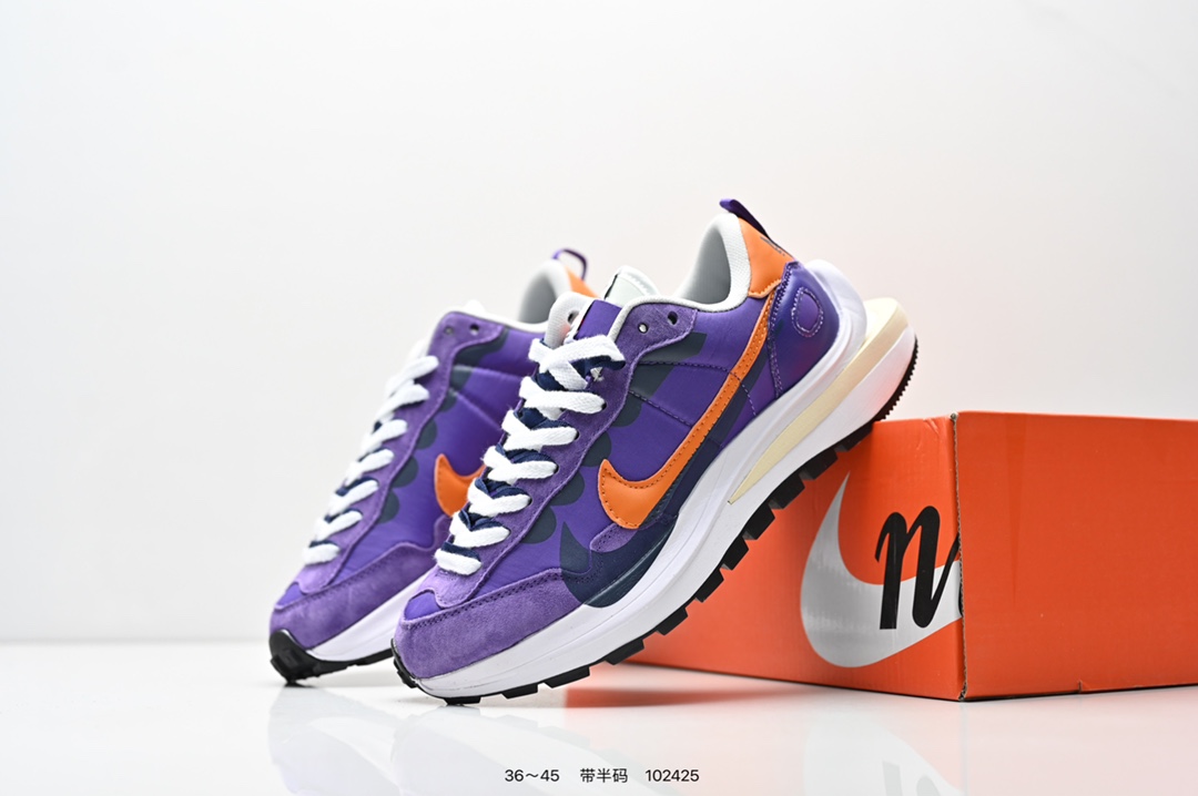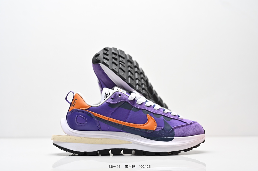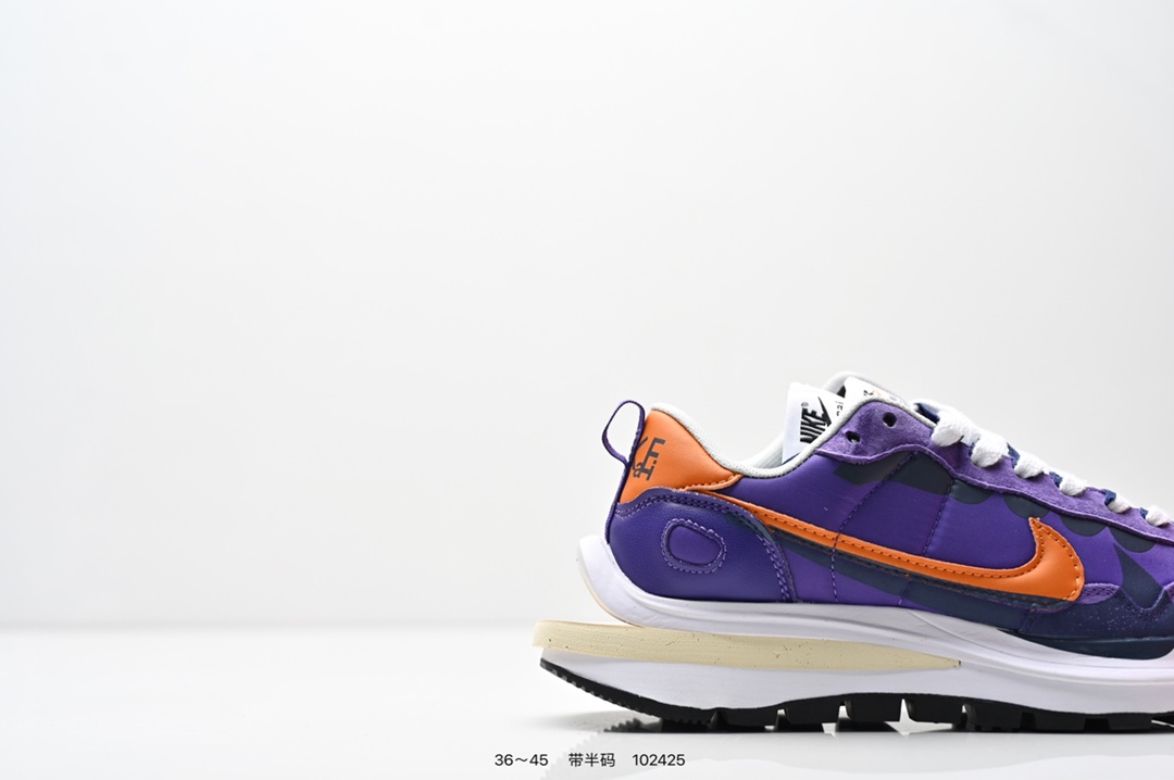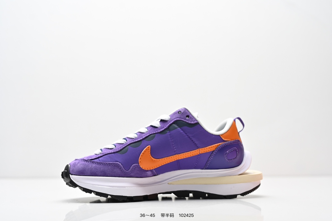 耐克 Sacai X NIKe vaporWaffle 华夫三代3 0 走秀重磅联名款运动鞋 鞋款由Pegasus与VaporFly两款鞋型的设计元素共同构建 鞋身材质由翻毛皮和透气网布共同打造 熟悉的解构手法 重叠Swoosh 双重鞋舌 鞋带以及后跟SACAI字体都悉数保留 最大亮点在于 本次鞋底变本加厉 层数更多 简直和巴黎世家的TripleS有一拼 增高效果妥妥的