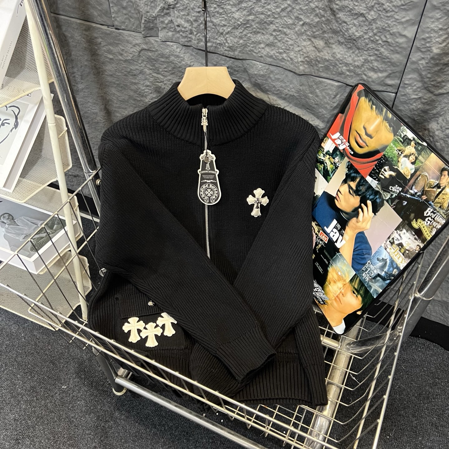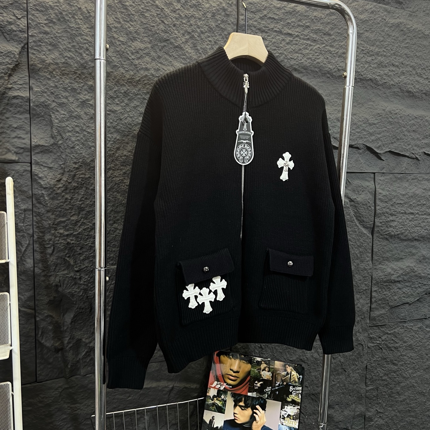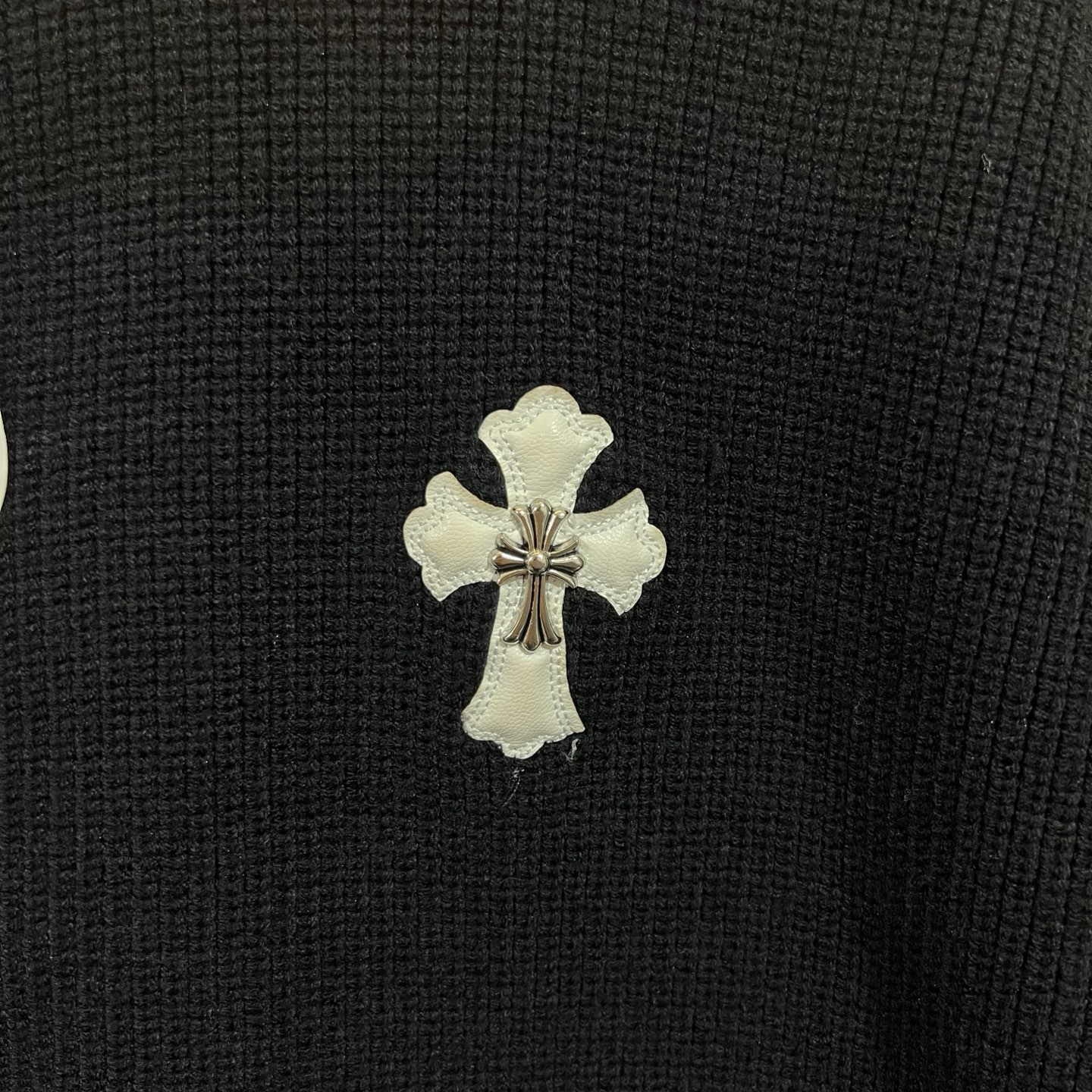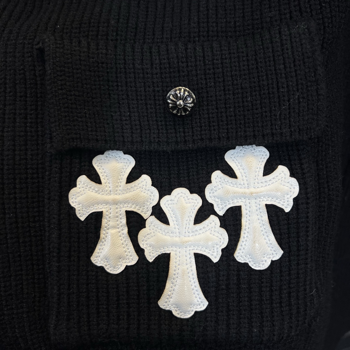 新出的会成为未来的趋势 随意翻翻街拍 就能发现明星们都把它当作收藏级的毛衣 男女轻奢主义通勤必备单品 开发全网最高版本 从打版到做货耗时1个月 订制定制全套辅料 高端大气 档次十足 整件衣服为纯棉针织毛线进口机织 贴皮绣十字架图案