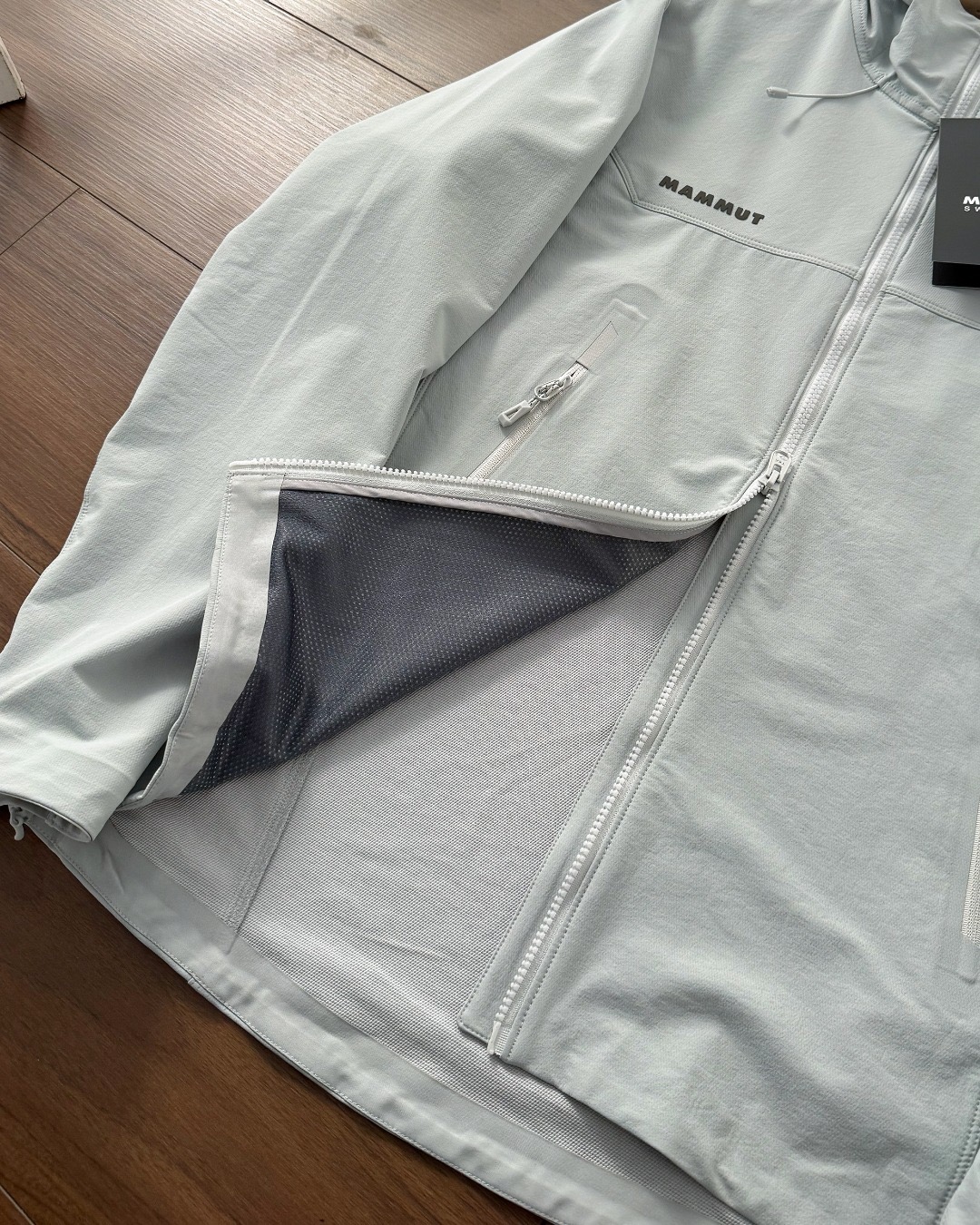 科技面料 防风防泼水性能也相当出色 小雨滴落在衣服上 一甩就滑落 完全不用担心浸湿 而且透气性极佳 运动时产生的热气和汗水能快速排出 始终保持干爽舒适 不会有那种闷热黏腻感 户外运动全程自在