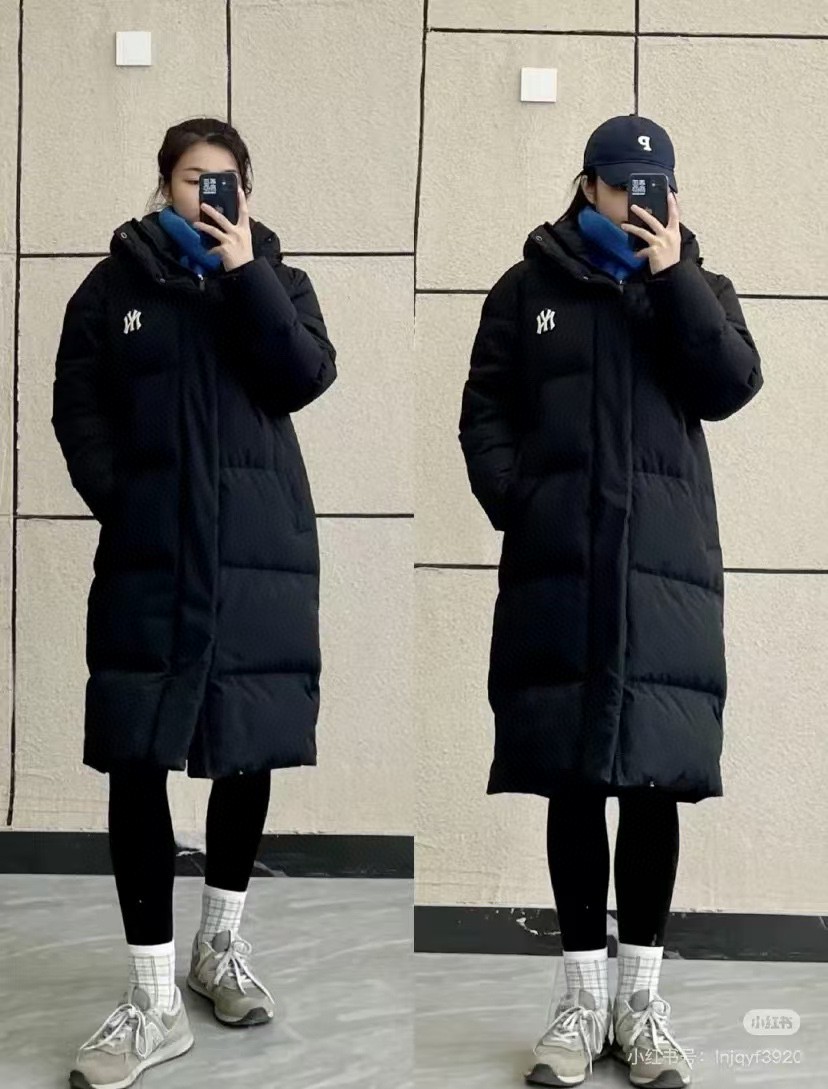 MLB纽约洋 基队24ss刺绣宽松休闲长款羽绒服连帽羽绒服男女同款 一件过冬